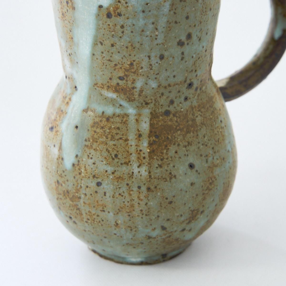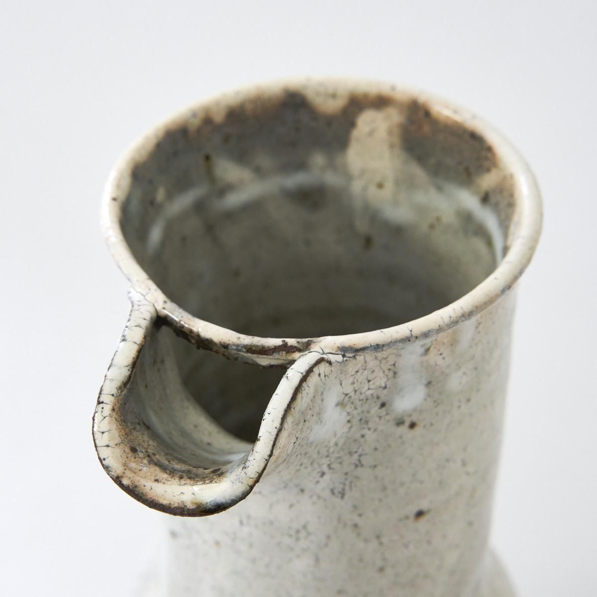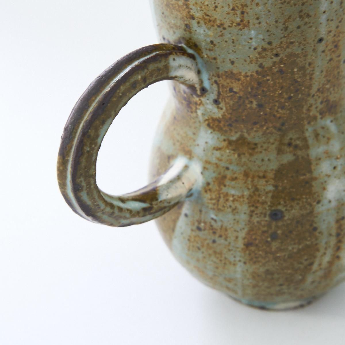 沖縄県立芸術大学で陶芸を学び、現在は制作拠点を京都に移された平瀬アスカさん。 「生きている事」を一番に感じられる食に関わる器。 生きるを感じるその瞬間に寄り添い、特別でより良いものになるために、、、 そんな器を生み出したいという思いで日々作陶活動に励まれています。 こちらは少しぽってりとした形のピッチャー。 近くの山で自ら掘った原土を軸となる粘土に半分配合、焼成方法なども独自の技法を用いて作られています。 足の力やリズムがそのまま土に伝わる蹴ロクロを使って形作られ、天然の松の灰を調整し指描きで彩られた釉薬の模様が大胆に施されています。 梅やレモンなどシロップソーダを作って冷やしておくのにはもちろん。 お花を飾ったりカトラリースタンドとして使ったりと、オブジェのようにいつも見えるところに飾ってみると暮らしの中に新しい風を吹かせてくれます。 ※こちらは3色展開となっております。 ※サイズ・カラーには個体差がございます。 size : Φ約9cm(口のみ) × W約18cm × D約9.5cm × H約20cm 取り扱い店舗・・・dieci kyutaro店 1F