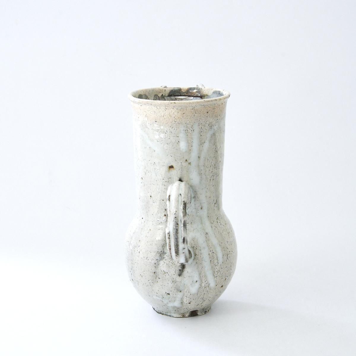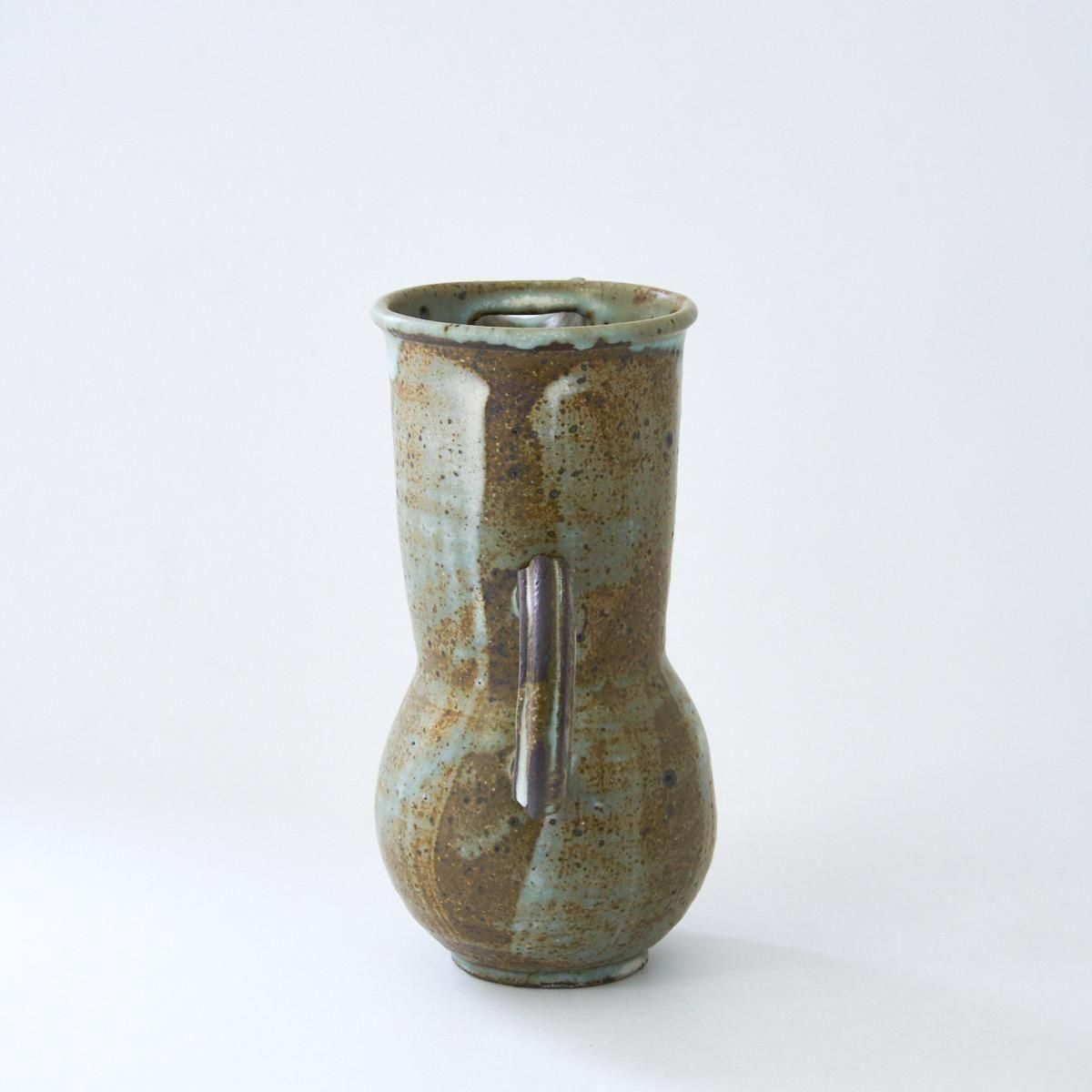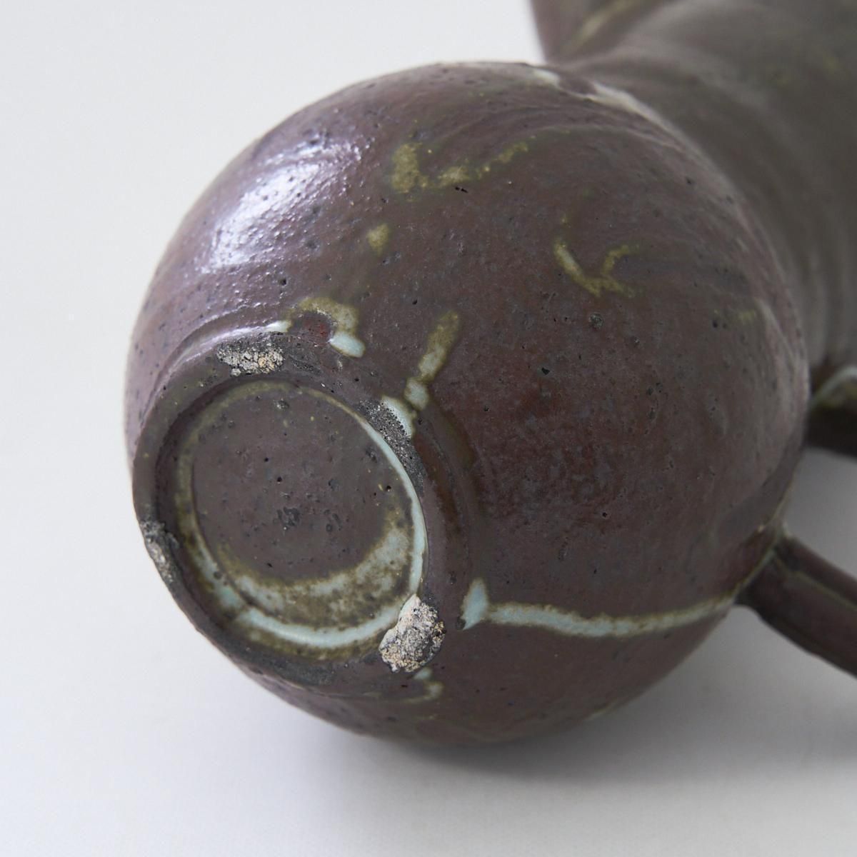 沖縄県立芸術大学で陶芸を学び、現在は制作拠点を京都に移された平瀬アスカさん。 「生きている事」を一番に感じられる食に関わる器。 生きるを感じるその瞬間に寄り添い、特別でより良いものになるために、、、 そんな器を生み出したいという思いで日々作陶活動に励まれています。 こちらは少しぽってりとした形のピッチャー。 近くの山で自ら掘った原土を軸となる粘土に半分配合、焼成方法なども独自の技法を用いて作られています。 足の力やリズムがそのまま土に伝わる蹴ロクロを使って形作られ、天然の松の灰を調整し指描きで彩られた釉薬の模様が大胆に施されています。 梅やレモンなどシロップソーダを作って冷やしておくのにはもちろん。 お花を飾ったりカトラリースタンドとして使ったりと、オブジェのようにいつも見えるところに飾ってみると暮らしの中に新しい風を吹かせてくれます。 ※こちらは3色展開となっております。 ※サイズ・カラーには個体差がございます。 size : Φ約9cm(口のみ) × W約18cm × D約9.5cm × H約20cm 取り扱い店舗・・・dieci kyutaro店 1F