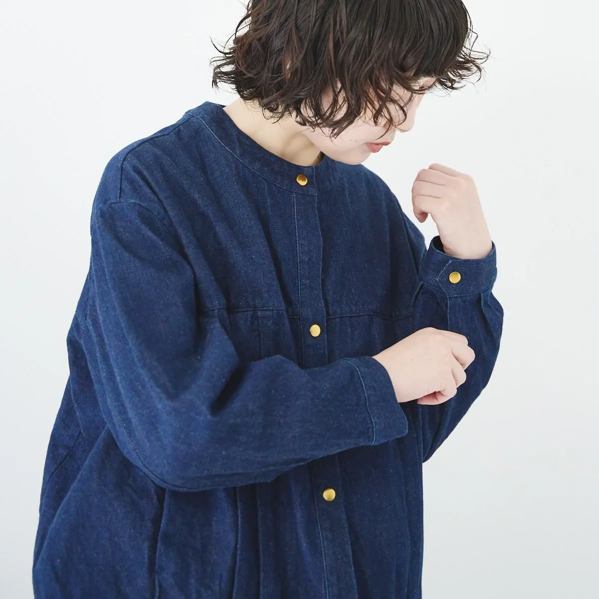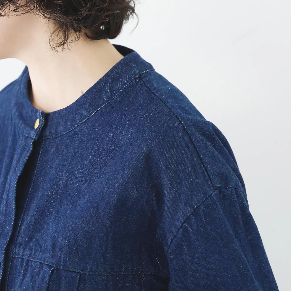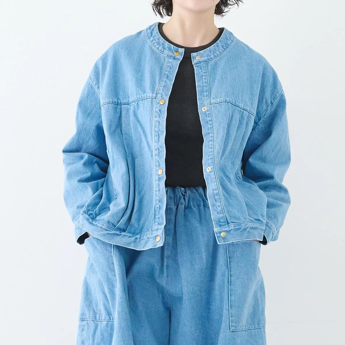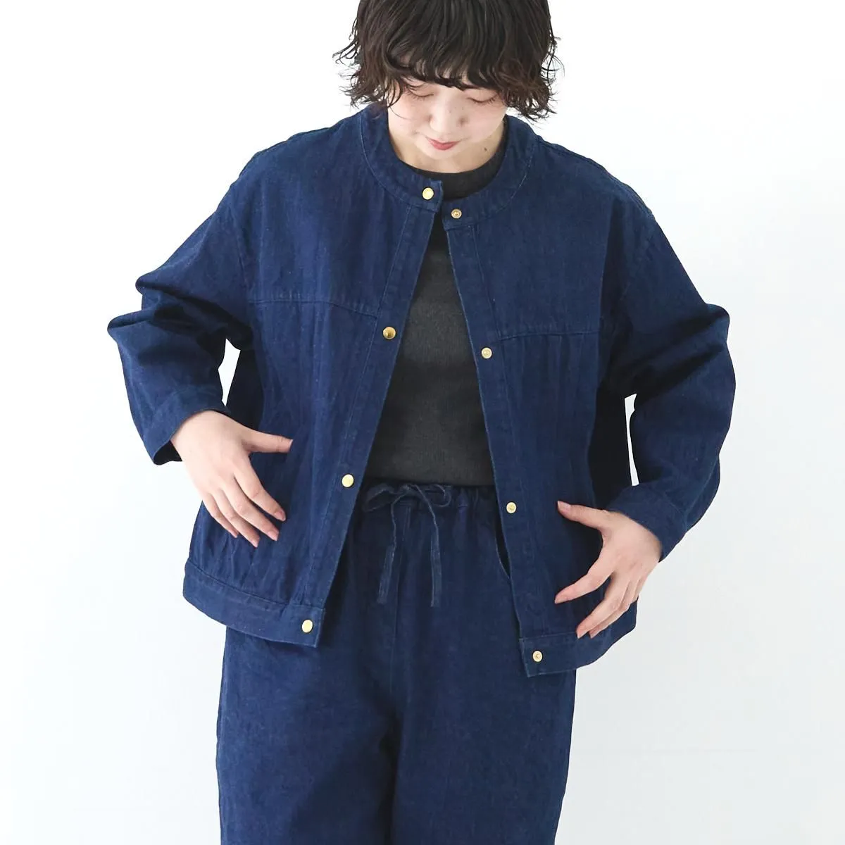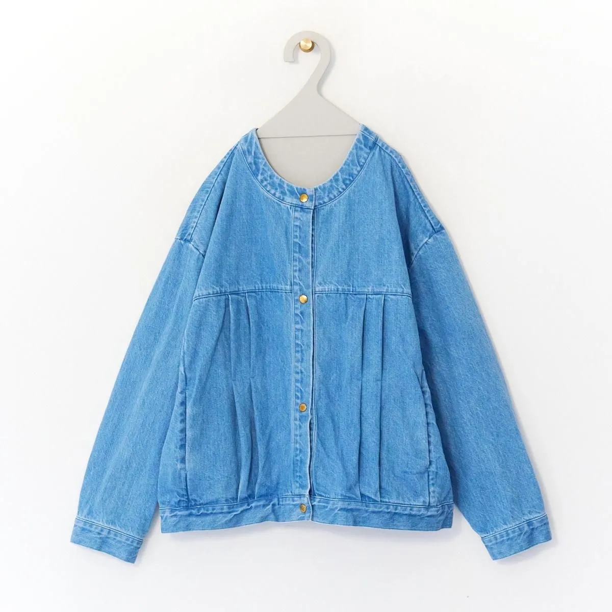 アトリエ・ダンタンのコットンデニムシリーズより、ノーカラーのジャケット「Andre /アンドレ」が登場しました。 ふっくら手触りがよく、程よい厚みを持ちながらも、きしみのない柔らかな素材感が特徴です。フロントはヴィンテージデニムのようなプリーツが施され、ゴールドのスナップボタンで上品な印象に。フェミニンなアイテムとも相性がよく幅広いスタイリングにお使いいただけます。 ドロップショルダーと広めの身幅のゆとりのある着用感で、袖を通すと丸みのあるボックスシルエットが現れます。ミドル丈なのでボトムスとのバランスもとりやすく、同素材のデニムパンツとセットアップで着用するのもおすすめです。 ブリーチ加工を施した爽やかな印象のライトインディゴと、ワンウォッシュ加工の経年変化を楽しめるダークインディゴの2色からお選びいただけます。 size:F 着丈57cm/肩幅51cm/身幅60cm/袖丈50cm color:ライトインディゴ・ダークインディゴ ※商品には若干の個体差があるため、採寸には誤差がございます。 ※水に濡れた状態などで擦れると色移りする恐れがありますので、取り扱いにご注意ください。※単独洗いをおすすめします。 material:cotton100% model:160cm お取り扱い店舗・・・dieci kyutaro店2F -------------------------------------------------------- Atelier d'antan|アトリエ ダンタン フランス語で『古き良き、往年の麻』を意味するブランドAtelier d'antan(アトリエ・ダンタン)時を経ても変わることの無い上質な素材というテーマを中心に、年齢や体型にとらわれない、どんな人も自分らしいお洒落を楽しんで欲しいという思いが込められたお洋服をつくられています。