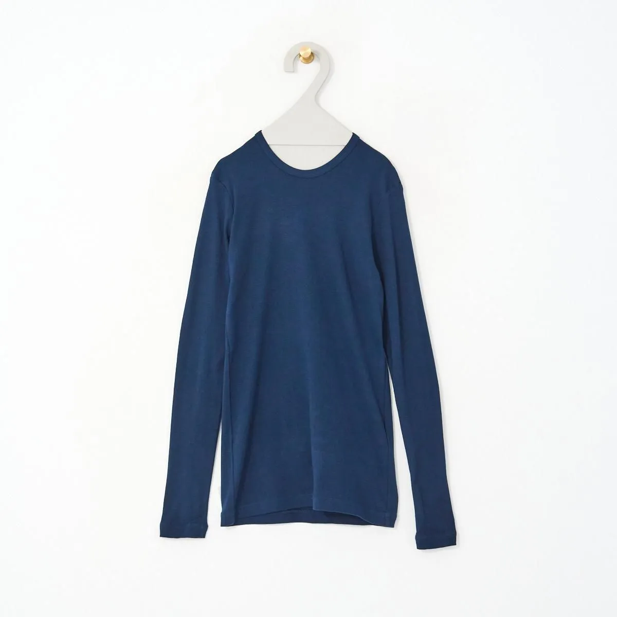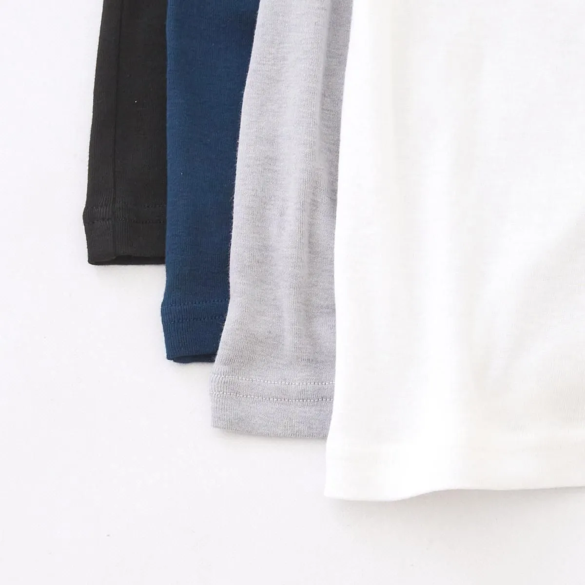こちらは毎シーズン色を変えながら定番で作っているインナーシリーズ。繊維の長い高級スーピマコットンに滑らかさのあるカシミアを混ぜた、温かく伸縮性・復元性の強い1枚。柔らかく肌にしっとり吸い付くような質感で、優しく身体にフィットします。毎日袖を通したくなるような快適な着心地を実現しています。 首元の詰まりも絶妙でベストやワンピース、ニットなどとの重ね着やインナーとしても。毎年たくさんの方にリピートいただいているロングセラーの逸品です。 size:2(one size) 肩幅30cm/袖丈60cm/身幅35cm/着丈62cm ※かなりの伸縮性がございます。 ※サイズ計測の多少の誤差はご了承下さい。 color:ネイビー/ホワイト/ライトグレー/ブラック material:コットン100% 取り扱い店舗・・・dieci kyutaro店 2F -------------------------------------------------------- ゴーシュ 普遍的な新しさをテーマに、カッティングやテキスタイルにこだわり、シンプルながらこだわりを感じることが出来る、飽きの来ない衣服を生み出すブランド。日常に寄り添う着心地の良さ、凛とした静かな美しさを追求しています。 size_chart