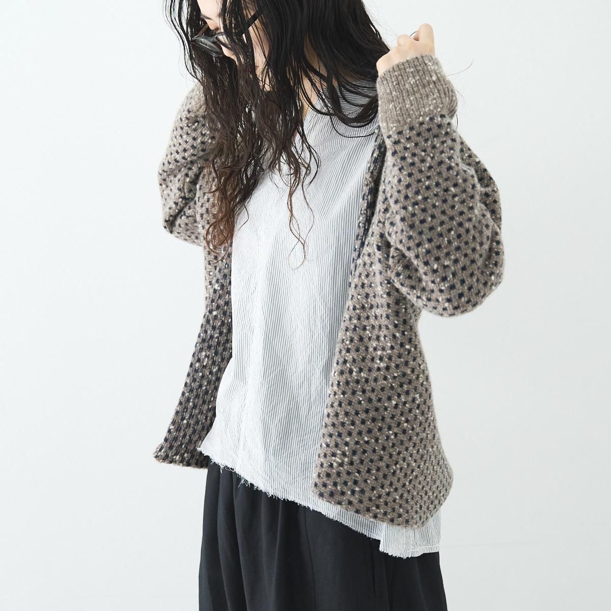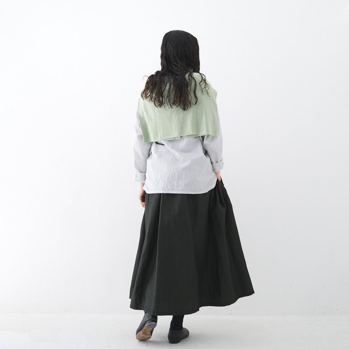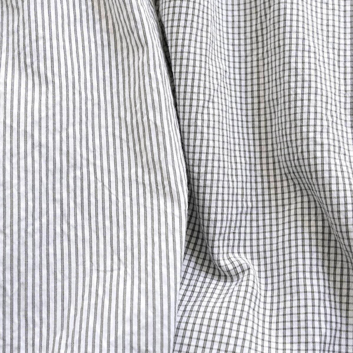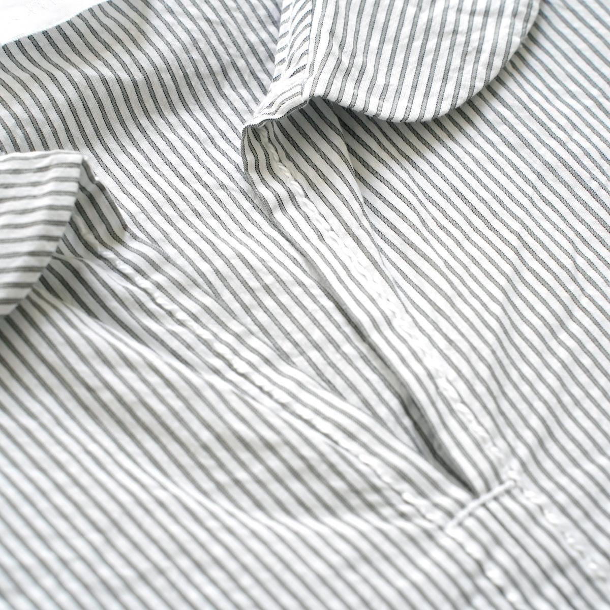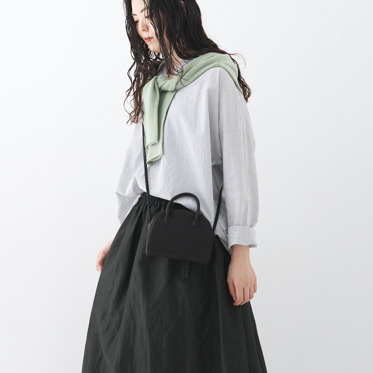 2000年に3人の女性でスタートされたhomspun(ホームスパン)「シンプルで自分たちが毎日着たいと思える服を」そんな彼女たちの思いから生まれたブランドです。 クラシカルな丸襟がポイントのプルオーバーシャツ。薄手で滑らかなハイカウントクロス素材は、独特なシワ感のある綿100%の生地です。 丸いフラットカラーの襟元からスリットが入ったプルオーバー型で、センターに太番手糸でステッチが施されています。前上がりにラウンドしている裾は、フロントのみ断ち切りのラフな仕上げに。またカフスのない袖口なのでロールアップがしやすい仕様です。ドロップショルダーから広めの身幅のゆったりとしたサイズ感なので、身体のラインを拾わずリラックスした着心地です。 涼しい季節からインナーを重ねて寒いシーズンまで、長くお楽しみください。細目のストライプ柄とチェック柄よりお選びくださいませ。 25AW size:F 着丈(前)57cm(後)76cm/身幅64cm/裄丈78cm ※サイズ計測の多少の誤差はご了承下さい。 color:ストライプ/チェック material:コットン 100% model:168cm(ストライプ着用) 取り扱い店舗・・・dieci kyuataro店2F size_chart