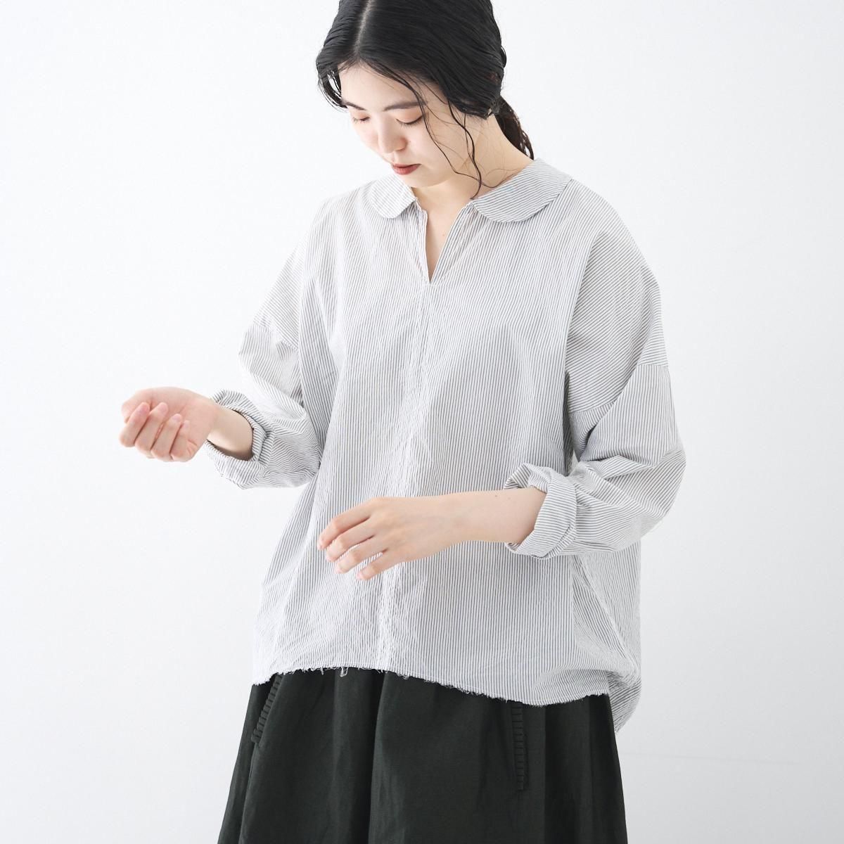 TOP > homspun > homspun(ホームスパン) / ハイカウントクロス丸襟プルオーバーブラウス