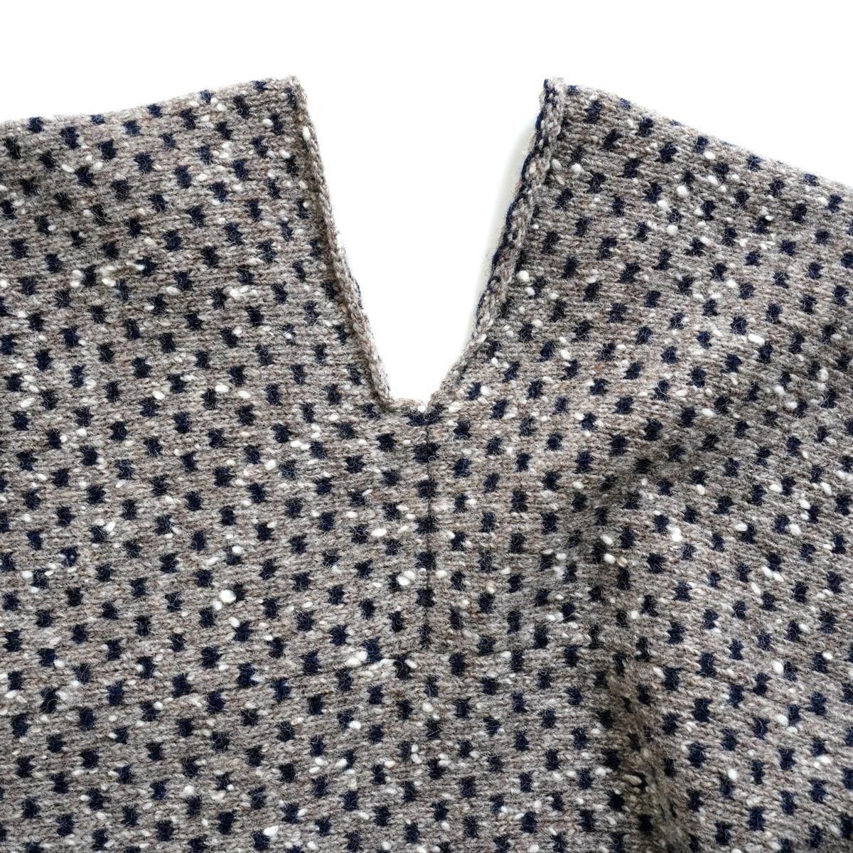 2000年にスタートしたブランド「homspun(ホームスパン)」。毎日の生活に寄り添う、シンプルで着心地の良いお洋服を毎シーズン提案しています。 ジャガード織りのニットカーディガン。 ナチュラルネップが温もりある素材感をより豊かに表現しています。どこか懐かしさを感じる、レトロな雰囲気も魅力です。 フロントはボタンレスの仕様。背面はV字にカットが施されており、肩のラインが決まっていないデザインなので、深く羽織ったり、落としてラフに着こなしてみても。秋冬のコーディネートに彩りを加えてくれる一枚です。 25AW color : ブラウン size : F 着丈60cm/身幅56cm/裄丈74cm ※サイズ計測の多少の誤差はご了承下さい。 material : wool100% model:168cm お取り扱い店舗・・・dieci kyutaro店 2F size_chart