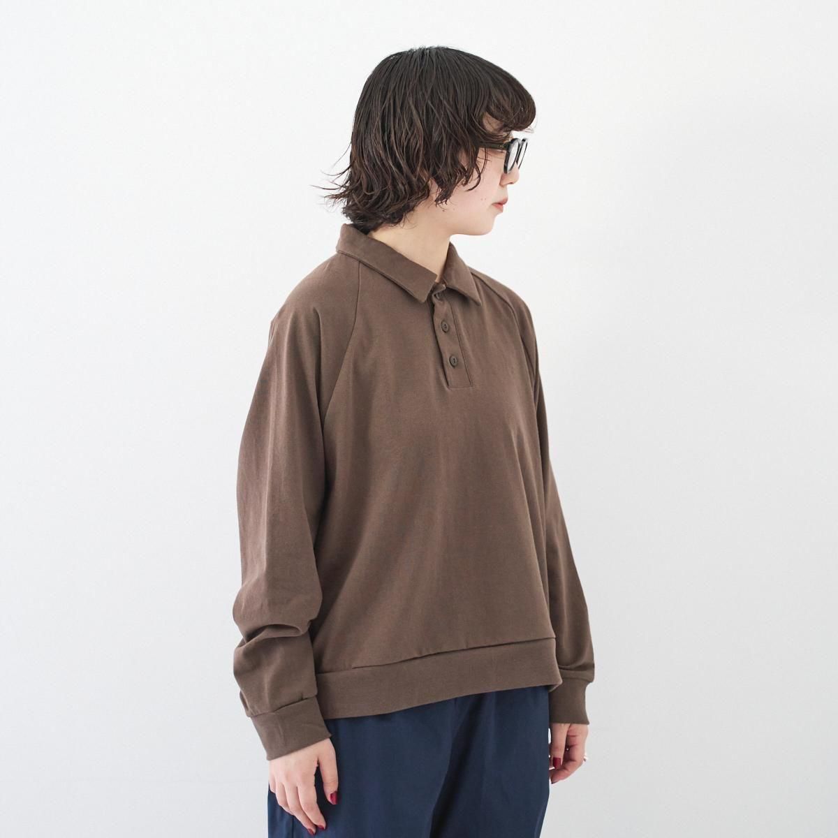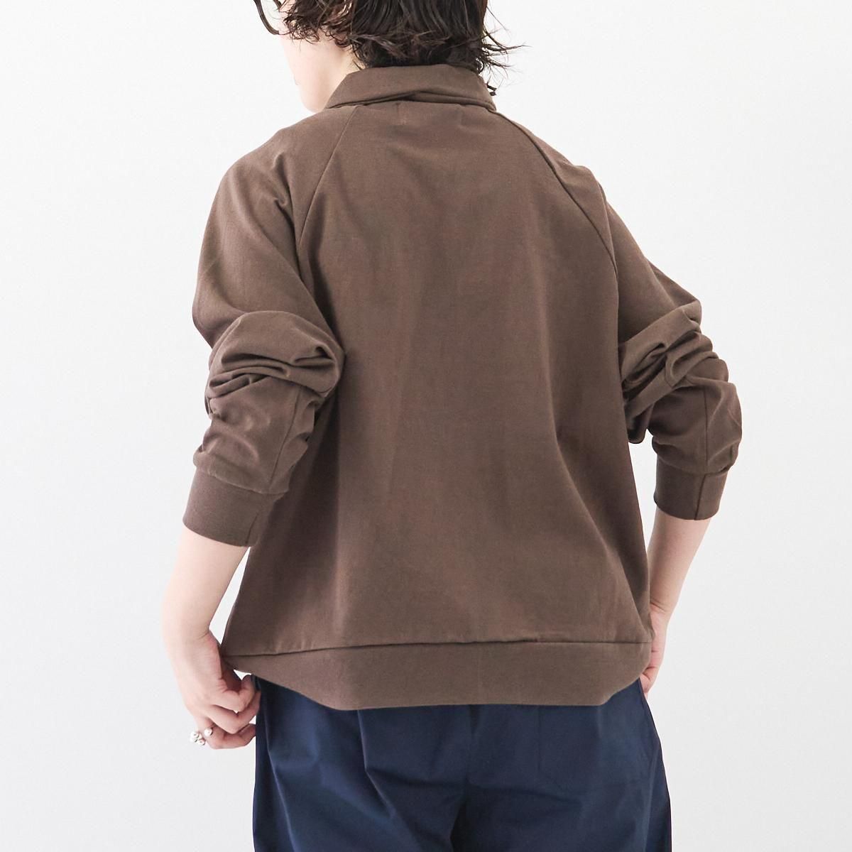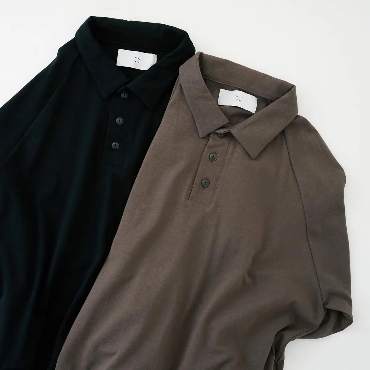 オーバーサイズのシンプルなポロ衿プルオーバー。ラグラン袖で力の抜けたゆったりサイズです。丈が程よい長さなのでだらしなくならず、ボトムスにタックアウトした際も程よい抜け感のあるバランスに仕上がります。素材はドライタッチな質感で適度なハリコシがあるコットン100%。肌馴染みの良い素材感です。2・4サイズともにユニセックスでご着用いただけるゆとりのあるサイズ展開です。 25AW size:2 2:着丈63cm/身幅60cm/裄丈83cm color:Brown/Black material:コットン100% model:168cm 取扱い店舗…dieci kyutaro店2F -------------------------------------------------------- MUYA|ムヤ 2014年、和歌山にて設立。和歌山県白浜町にアトリエ兼SHOPを持ち服作りと写真撮影、デザインを日々の活動とされています。服の制作、各種写真撮影、WEBデザイン、ロゴ制作、名刺、パンフレットなどの印刷物デザインなどジャンルにとらわれず幅広く活動されています。 size_chart