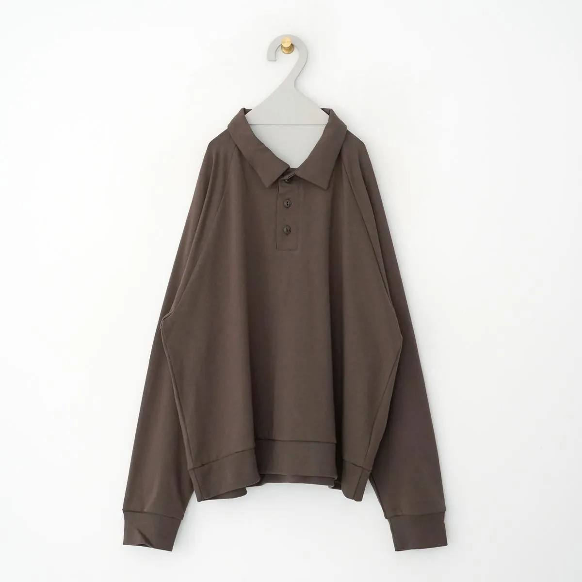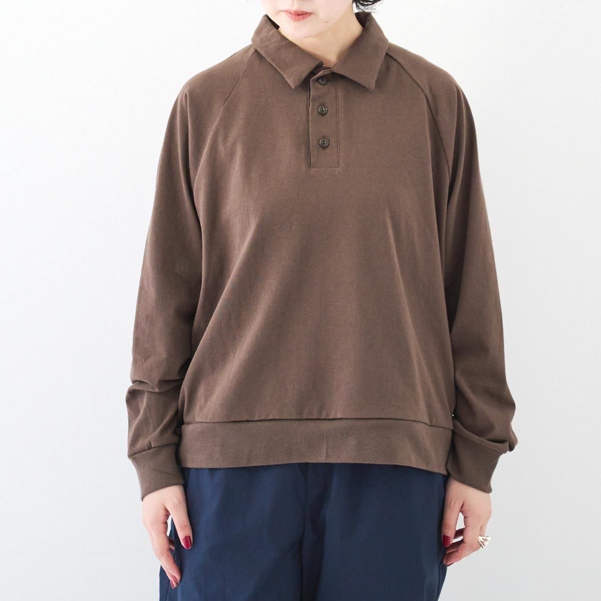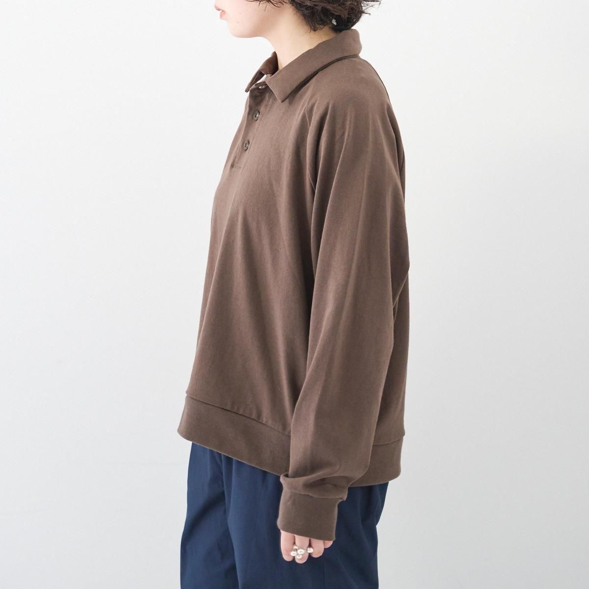 オーバーサイズのシンプルなポロ衿プルオーバー。ラグラン袖で力の抜けたゆったりサイズです。丈が程よい長さなのでだらしなくならず、ボトムスにタックアウトした際も程よい抜け感のあるバランスに仕上がります。素材はドライタッチな質感で適度なハリコシがあるコットン100%。肌馴染みの良い素材感です。2・4サイズともにユニセックスでご着用いただけるゆとりのあるサイズ展開です。 25AW size:2 2:着丈63cm/身幅60cm/裄丈83cm color:Brown/Black material:コットン100% model:168cm 取扱い店舗…dieci kyutaro店2F -------------------------------------------------------- MUYA|ムヤ 2014年、和歌山にて設立。和歌山県白浜町にアトリエ兼SHOPを持ち服作りと写真撮影、デザインを日々の活動とされています。服の制作、各種写真撮影、WEBデザイン、ロゴ制作、名刺、パンフレットなどの印刷物デザインなどジャンルにとらわれず幅広く活動されています。 size_chart