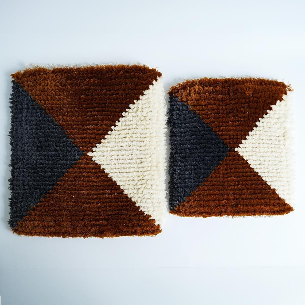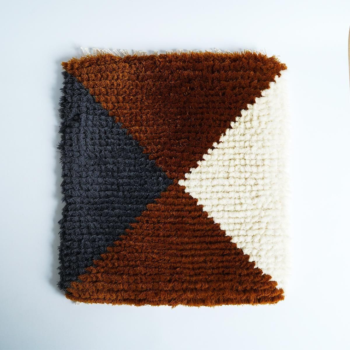 倉敷本染手織研究所さんで制作されたノッティング織の椅子敷きです。一つ一つ織られた美しい織り目と色合いがとても可愛らしく、インテリアのポイントになります。 こちらは通常サイズより一回り小さいサイズで、座面の小さな椅子やベンチにもぴったりです。 ノッティングとは外村吉之介氏が考案した縦機で織られた椅子敷です。 径に木綿糸を張り、ウールもしくは木綿の糸束を結び(ノッティング)つけて制作されたものです。 お写真最後の6枚は倉敷本染手織研究所さんの様子です。 民藝について深く学ばれ、糸を紡ぐことから完成まで丁寧に仕立てられる椅子敷きを是非永くご愛用ください。 size: 大 約40cm×40cm 33,000円(税込) 小 約30cm×30cm 22,000円(税込) material: 表地 wool 100% 裏糸 cotton 100% 経糸 cotton 100% 取扱い店舗…dieci天神橋店
