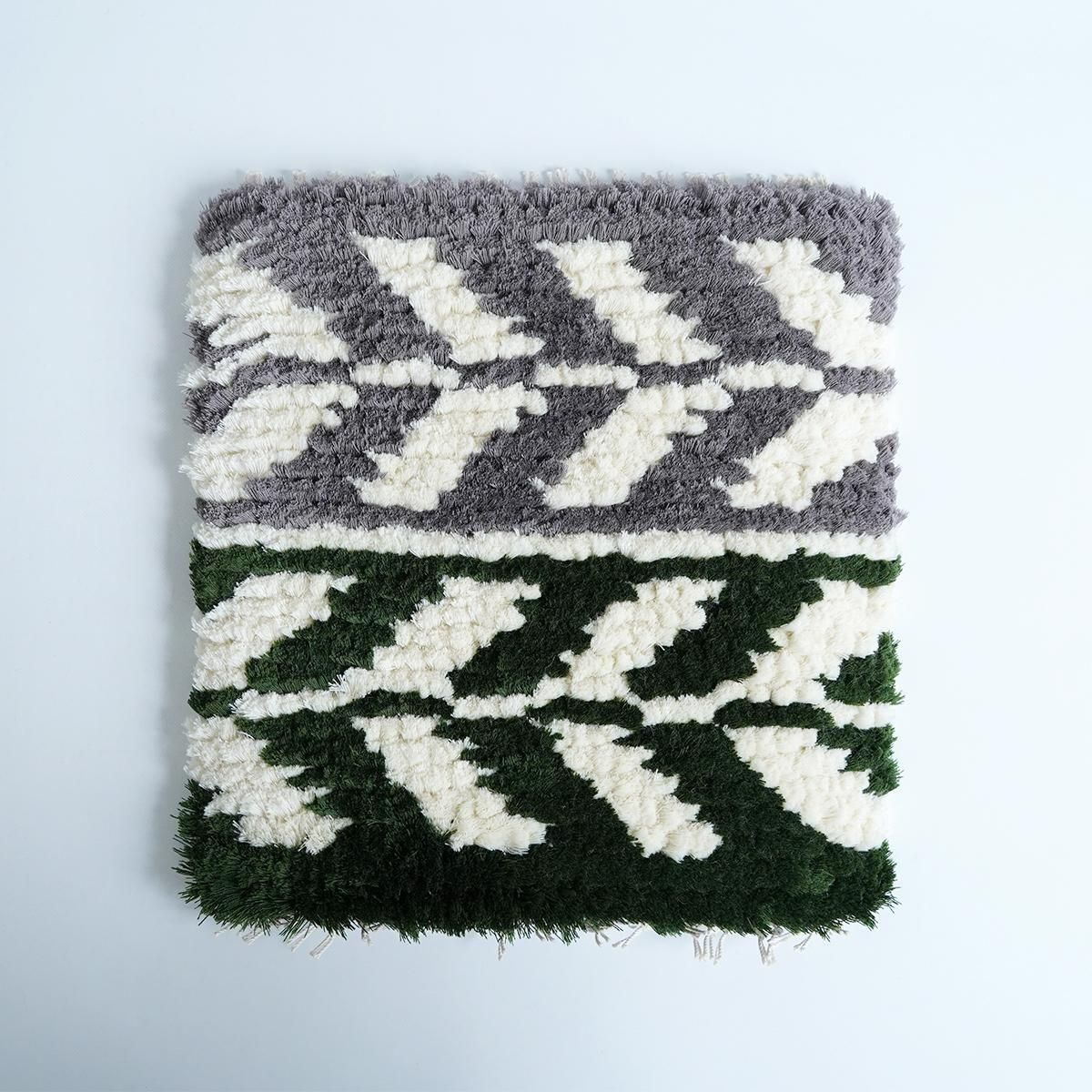 倉敷本染手織研究所さんで制作されたノッティング織の椅子敷きです。一つ一つ織られた美しい織り目と色合いがとても可愛らしく、インテリアのポイントになります。 こちらは通常サイズより一回り小さいサイズで、座面の小さな椅子やベンチにもぴったりです。 ノッティングとは外村吉之介氏が考案した縦機で織られた椅子敷です。 径に木綿糸を張り、ウールもしくは木綿の糸束を結び(ノッティング)つけて制作されたものです。 お写真最後の6枚は倉敷本染手織研究所さんの様子です。 民藝について深く学ばれ、糸を紡ぐことから完成まで丁寧に仕立てられる椅子敷きを是非永くご愛用ください。 size: 大 約40cm×40cm 33,000円(税込) 小 約30cm×30cm 22,000円(税込) material: 表地 wool 100% 裏糸 cotton 100% 経糸 cotton 100% 取扱い店舗…dieci天神橋店