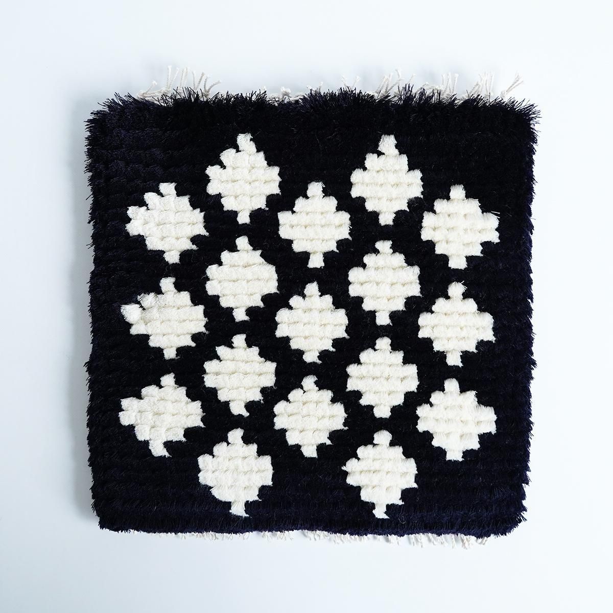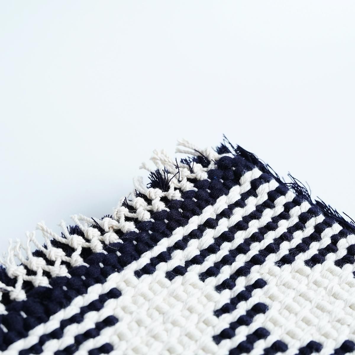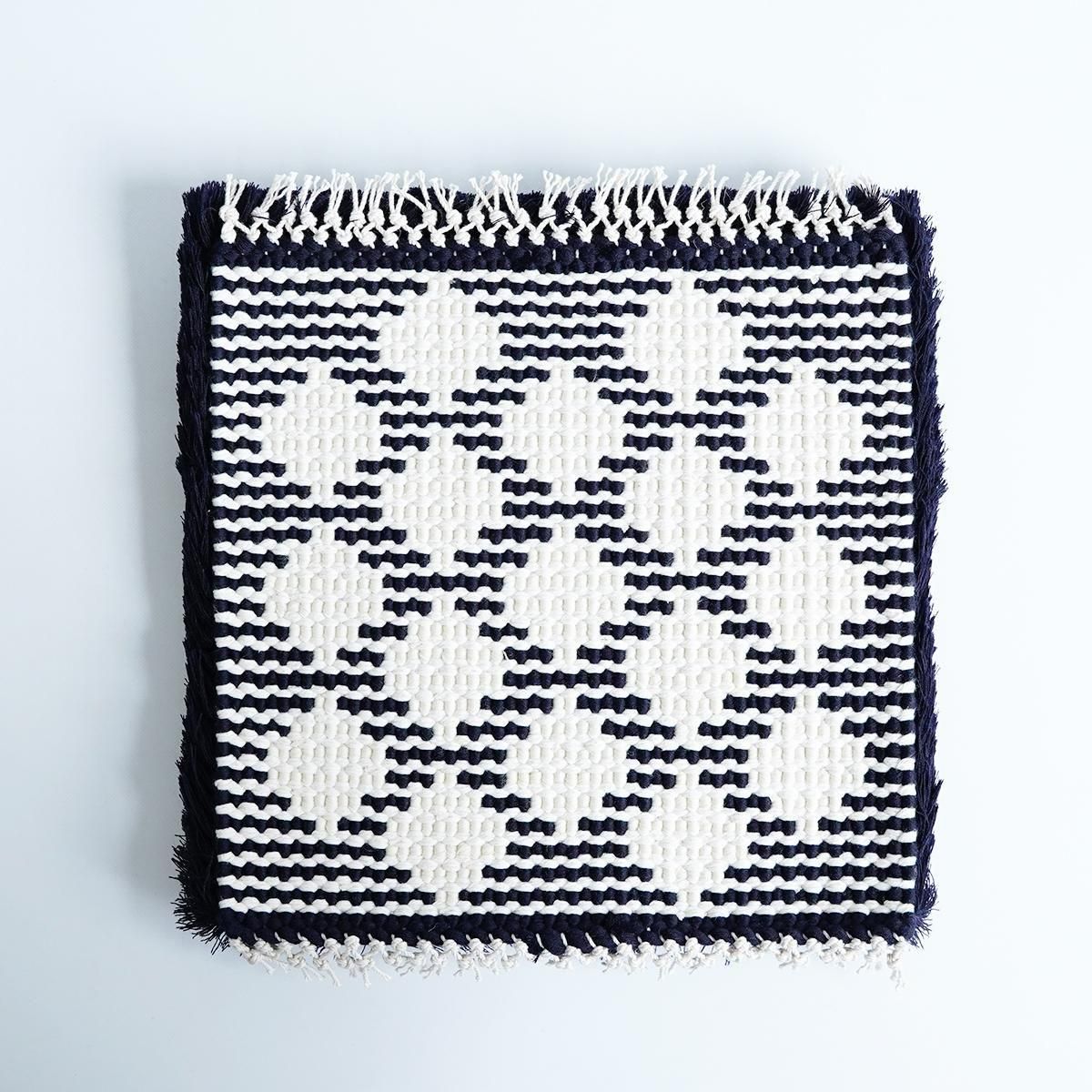 倉敷本染手織研究所さんで制作されたノッティング織の椅子敷きです。一つ一つ織られた美しい織り目と色合いがとても可愛らしく、インテリアのポイントになります。 こちらは通常サイズより一回り小さいサイズで、座面の小さな椅子やベンチにもぴったりです。 ノッティングとは外村吉之介氏が考案した縦機で織られた椅子敷です。 径に木綿糸を張り、ウールもしくは木綿の糸束を結び(ノッティング)つけて制作されたものです。 お写真最後の6枚は倉敷本染手織研究所さんの様子です。 民藝について深く学ばれ、糸を紡ぐことから完成まで丁寧に仕立てられる椅子敷きを是非永くご愛用ください。 size: 大 約40cm×40cm 33,000円(税込) 小 約30cm×30cm 22,000円(税込) material: 表地 wool 100% 裏糸 cotton 100% 経糸 cotton 100% 取扱い店舗…dieci天神橋店