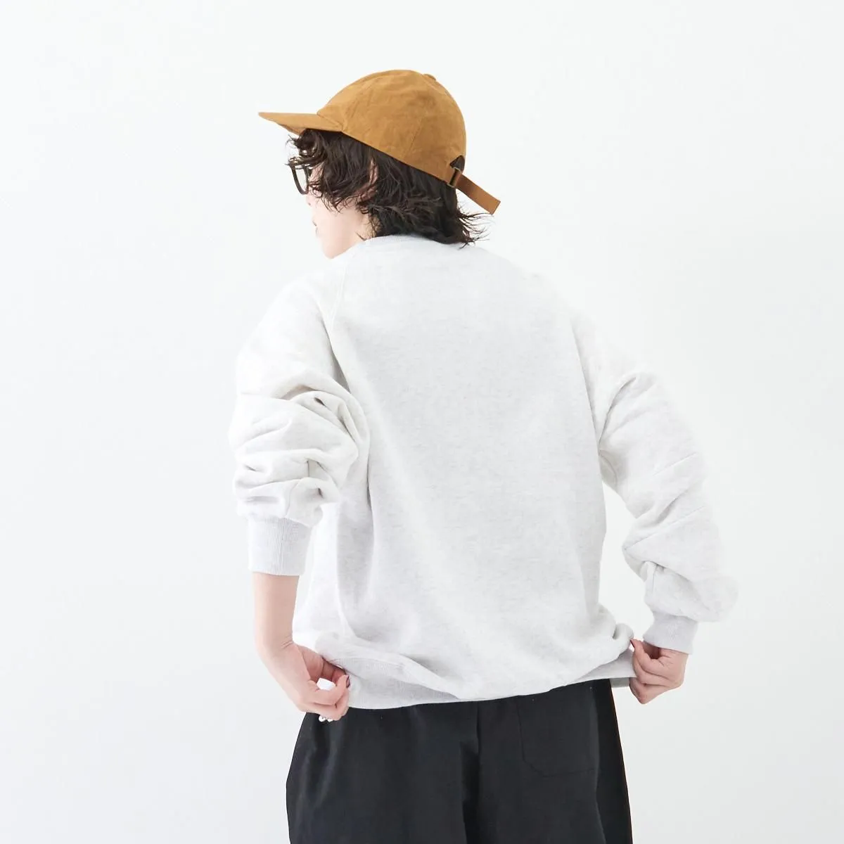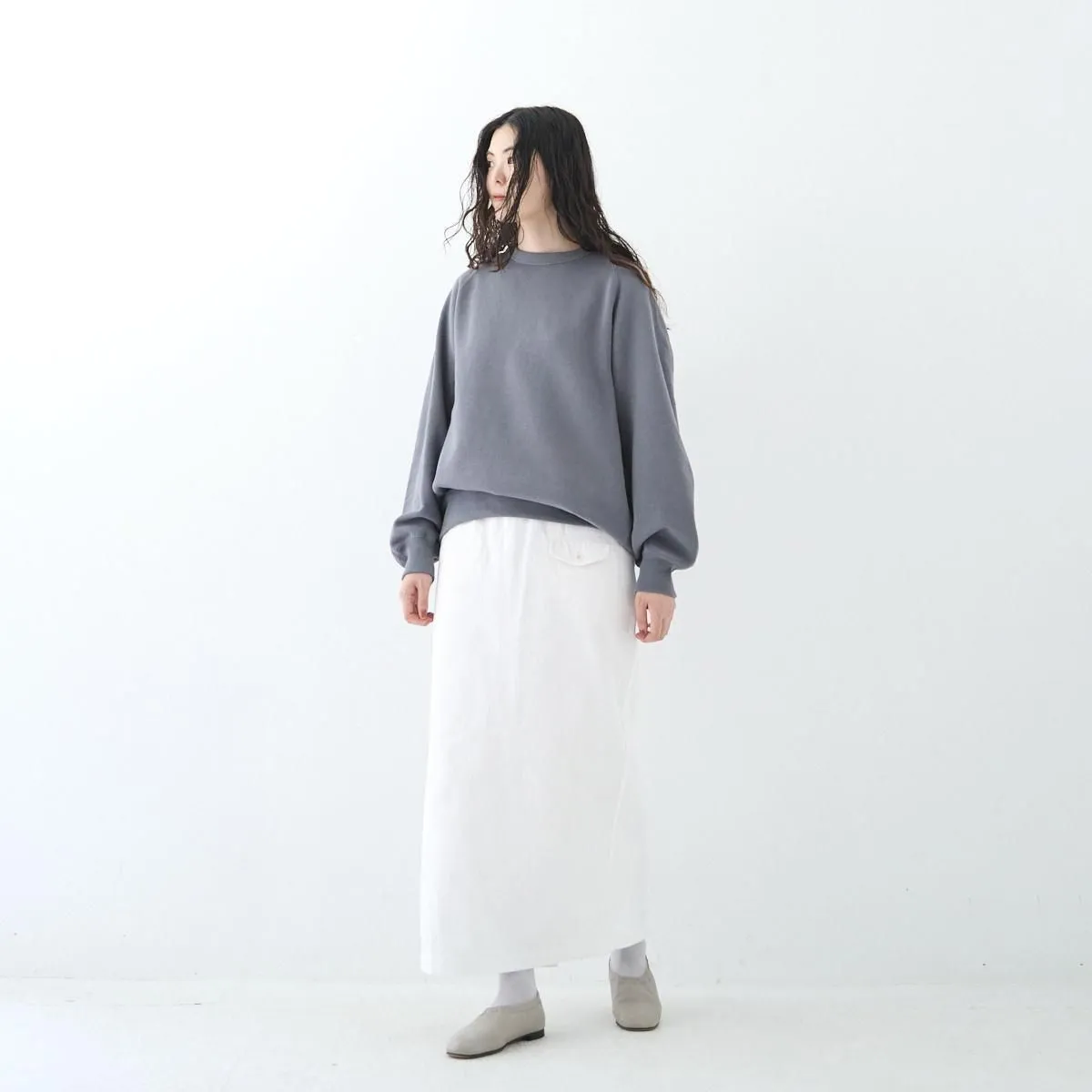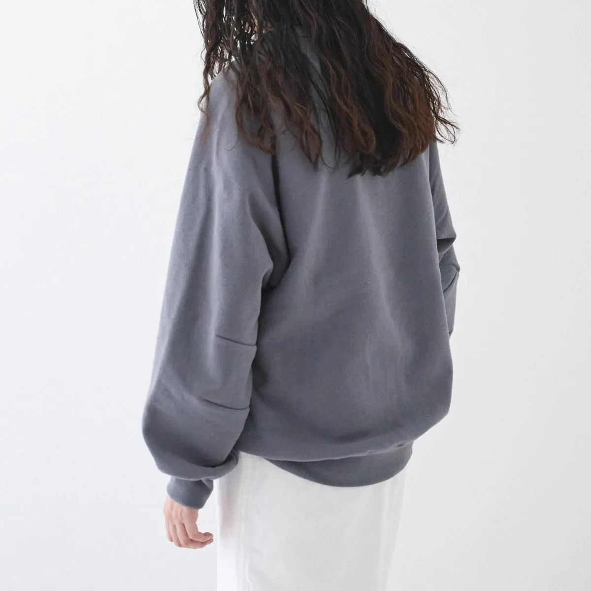 ゴーシュのバランス感覚が冴えるスウェット。着用した際のボリュームの差引が絶妙で、アームホールの深さや、袖の立体的な丸みのあるパターン、裾リブの長さなど、シルエットの美しさにこだわりが詰まっています。 ふっくらとした独特のニット生地を生み出す「吊編み機」で時間をかけて編まれた裏起毛のスウェット素材は、とにかく軽量でふんわりした手触りが特徴。裏地の起毛が少し表側に出る製法により、ほんのりとネップ感が残り、表情のある素材に仕上がっています。一枚で様になる優秀なスウェットです。 25AW size:2(one size) 着丈72cm/身幅61cm/裄丈84.5cm ※サイズ計測の多少の誤差はご了承下さい。 color:グレー/ホワイト(グレーが所々に入った杢グレーです)/ブラック material:コットン100% model:168cm(グレー) 160cm(ホワイト) 取り扱い店舗・・・dieci kyutaro店 2F -------------------------------------------------------- ゴーシュ 普遍的な新しさをテーマに、カッティングやテキスタイルにこだわり、シンプルながらこだわりを感じることが出来る、飽きの来ない衣服を生み出すブランド。日常に寄り添う着心地の良さ、凛とした静かな美しさを追求しています。 size_chart