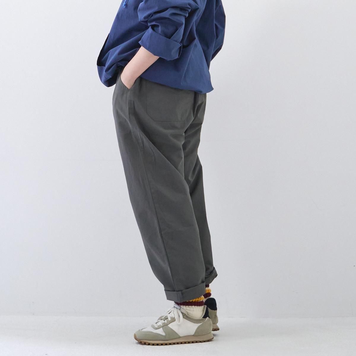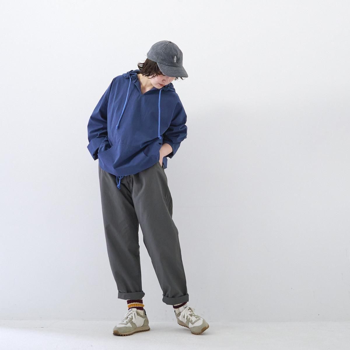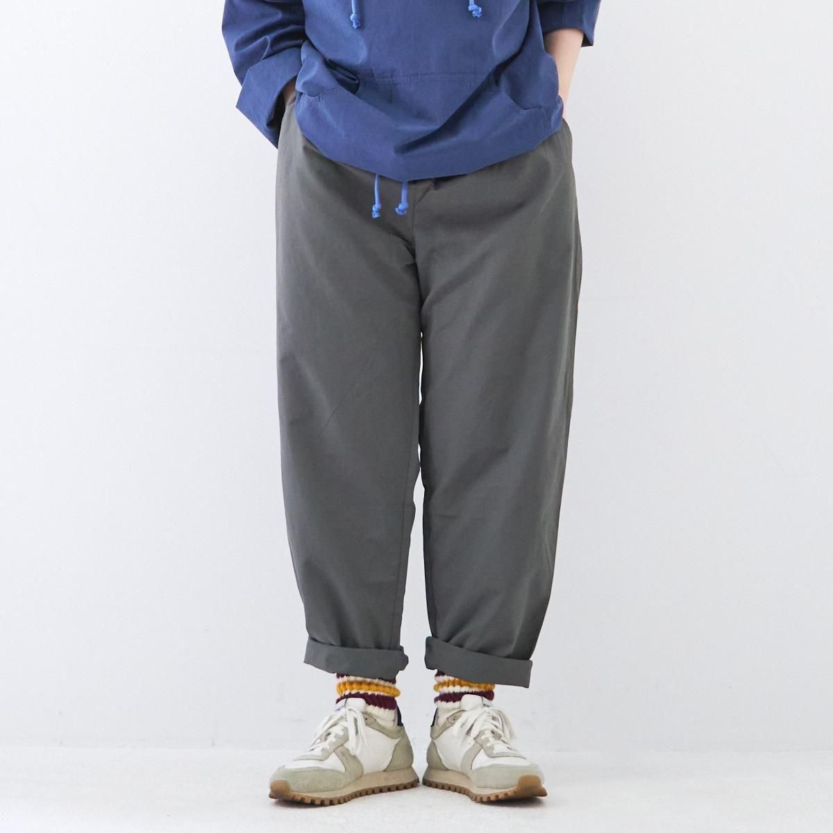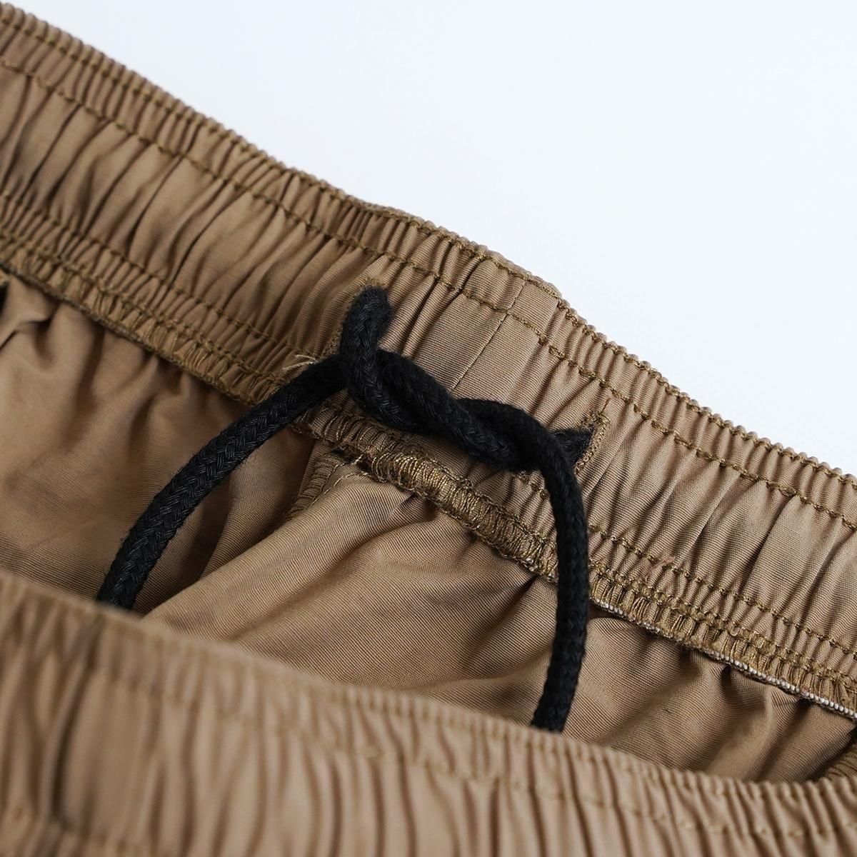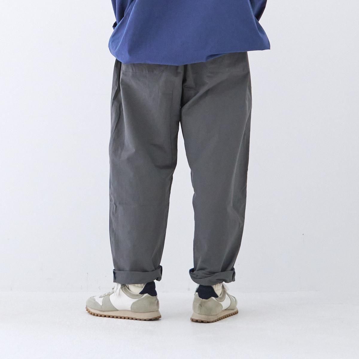 ありそうでなかったものや、ちょっと懐かしく思えるオリジナルウェアを提案するVOIRY。 こちらはコットンナイロン素材のSECOND PANTS。 両サイドの斜めポケットが特徴。 右腰キーホルダーループはもちろん付いてます。 シルエットはお尻周りはややゆったりしており、レングスもやや長め設定。 セカンドパンツというネーミングですが、密かにファンの多いパンツです。 color: BLACK/ C-GRAY/COYOTE size : one size ウエスト75cm〜(ウエストゴム入り、腰紐あり) 股上38cm 股下66cm material : COTTON64% NYLON36% model : 160cm