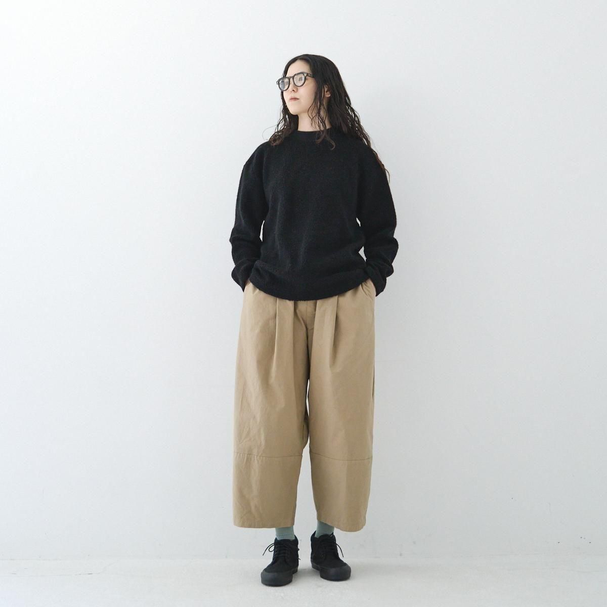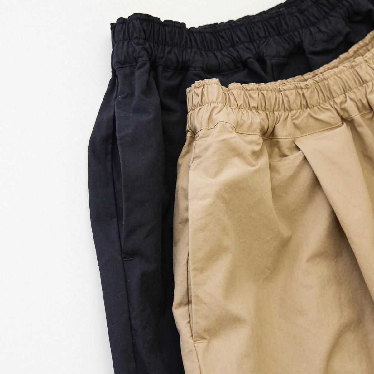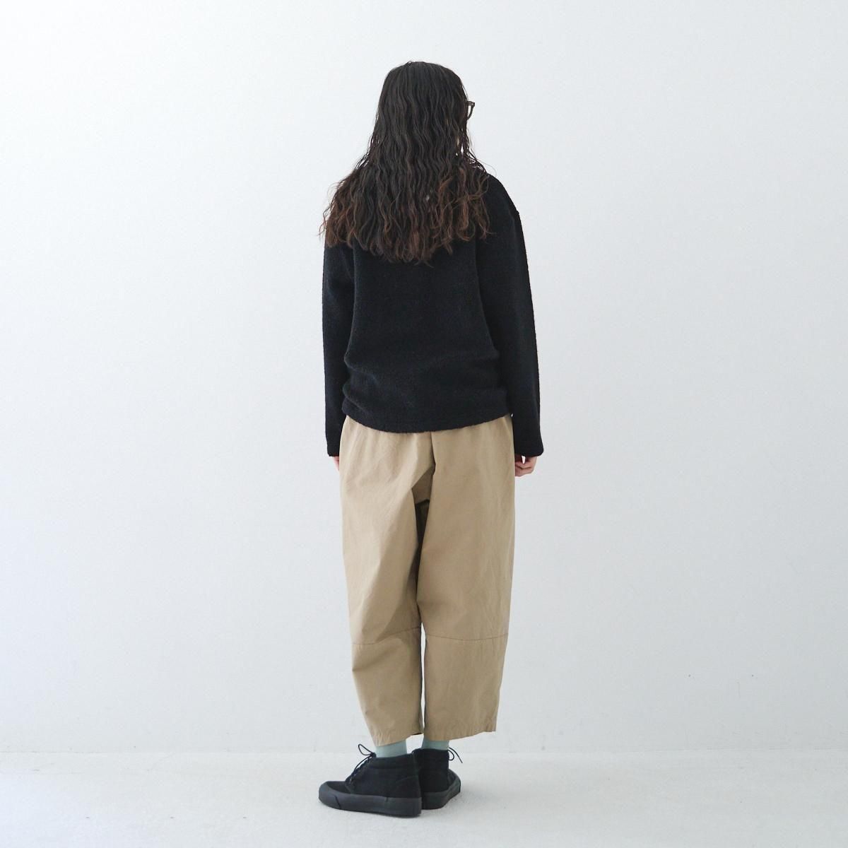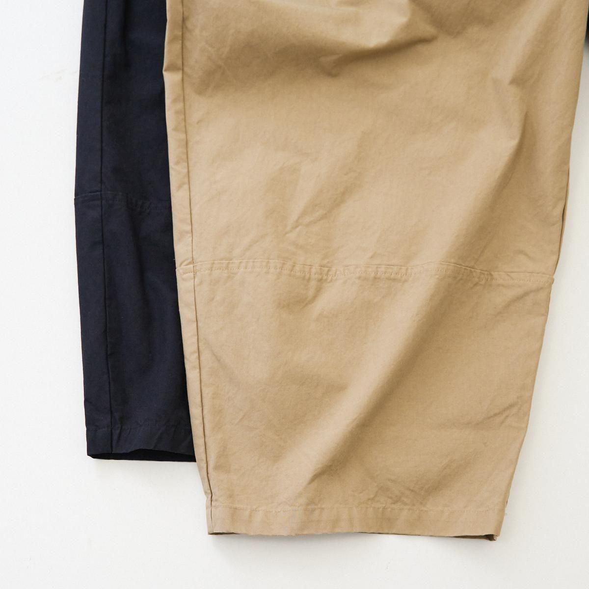 丸みのあるコクーンシルエットのパンツ。ウエストにタックを施し、腰回りにゆとりを持たせたリラックスした着心地です。裾部分に切り替えを入れることで特徴的なフォルムが生まれ、バランスよくお召しいただけます。 中肉厚のコットンウェザー素材は程よいハリがあり、よりコクーンシルエットの丸みが際立つ素材感。製品染めを施した洗いざらしの風合いが、心地よい日常を作りだすベーシックなアイテムです。 25AW size:F ウエスト35~46cm/股上40cm/股下53cm/ヒップ55cm/わたり40cm/裾幅25.5cm ※サイズ計測の多少の誤差はご了承下さい。 material:cotton100% color:Beige/Navy black model:168cm お取り扱い店舗・・・dieci kyutaro店2F -------------------------------------------------------- Veritecoeur(ヴェリテクール) 真心という意味を込めて名付けたVeritecoeur。 素材の持つ魅力を活かし、着心地を大切にした、どこか人の手の温もりを感じるモノ作り。フォーマルからデイリーまで、ブランドらしさを失わない豊富なコレクション。 着て、洗ってを繰り返し、自分らしい愛着のある1枚へと育てて欲しい作り手の想い。 それぞれの暮らしを想い描きながら届ける、心豊かになれる日常着です。 size_chart