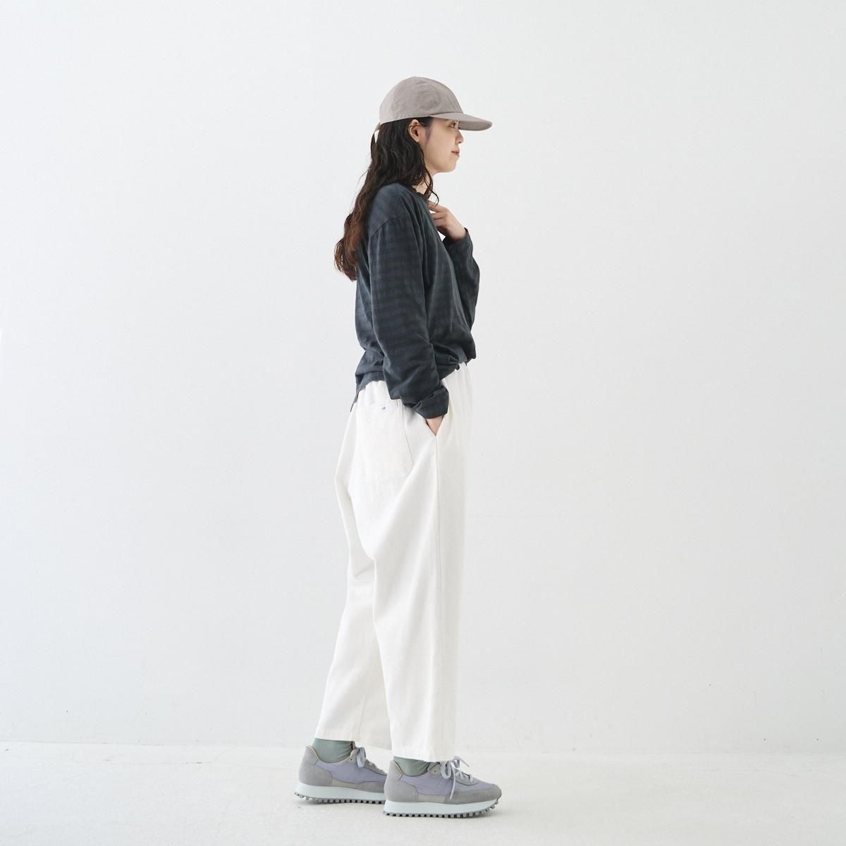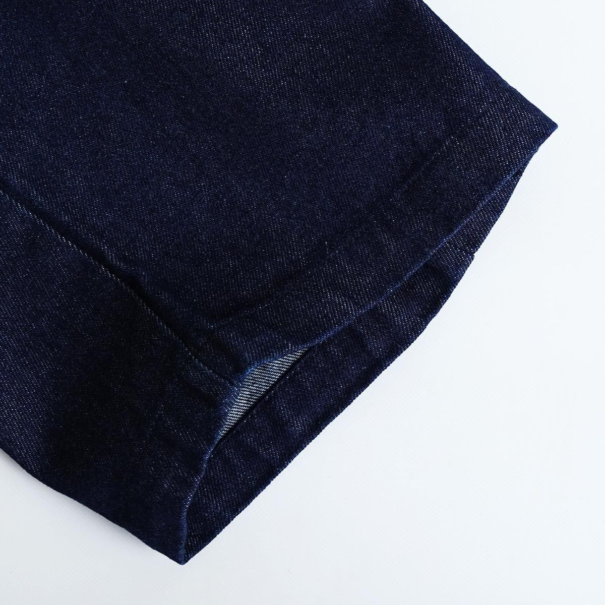 ありそうでなかったものや、ちょっと懐かしく思えるオリジナルウェアを提案するVOIRY。 こちらはデニム、コットン素材のDENIM PANTS。 ワンウォッシュのダークブルー、少し色を落としたミッドブルー、ホワイトの3色です。 color: ダークブルー、ミッドブルー、ホワイト size : one size ウエスト75cm〜、股上42cm、股下59cm ※サイズ、色によって個体差がございます。 material : COTTON100% model : 168cm