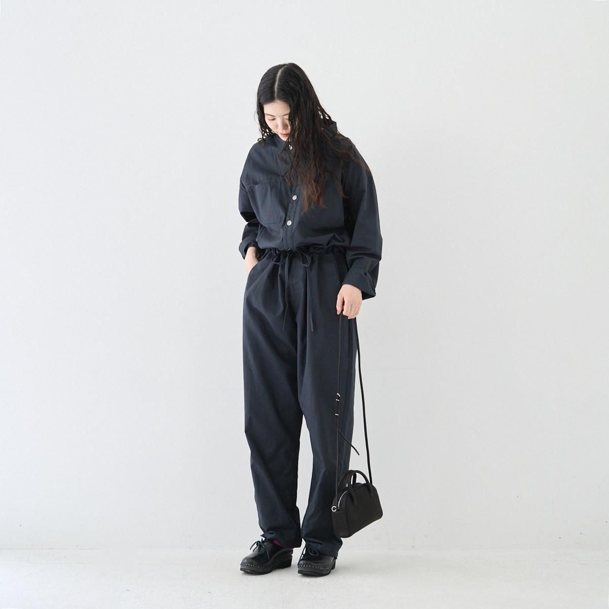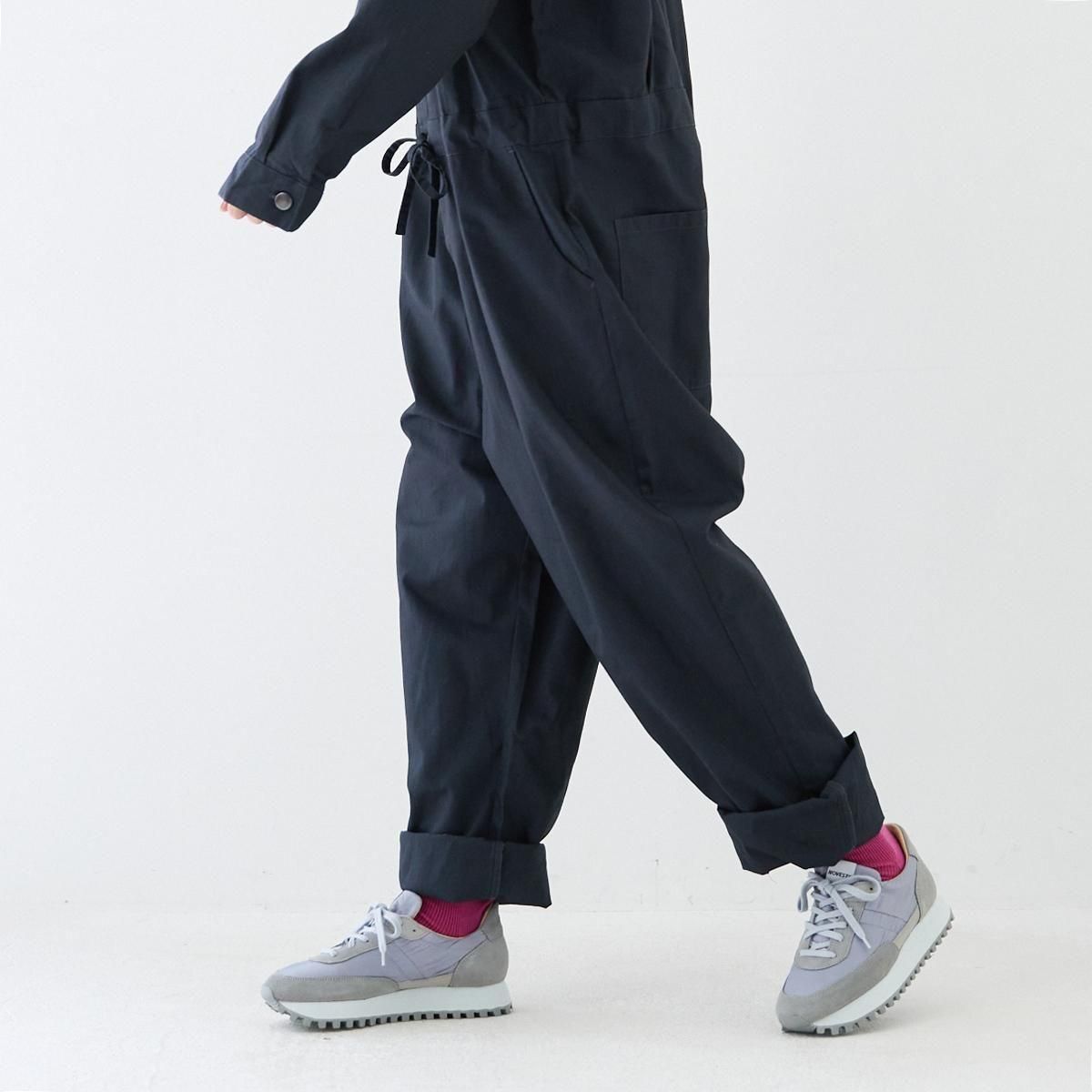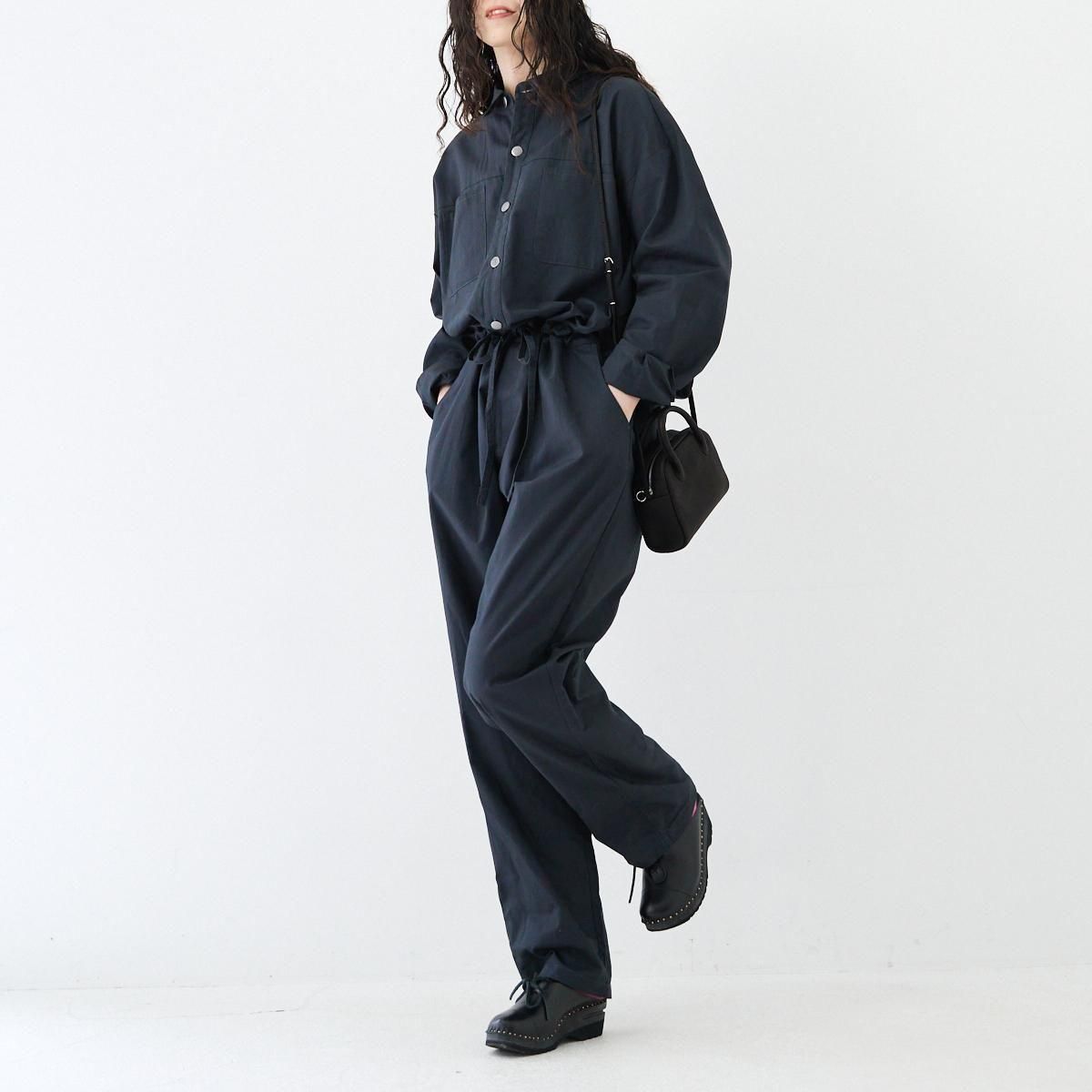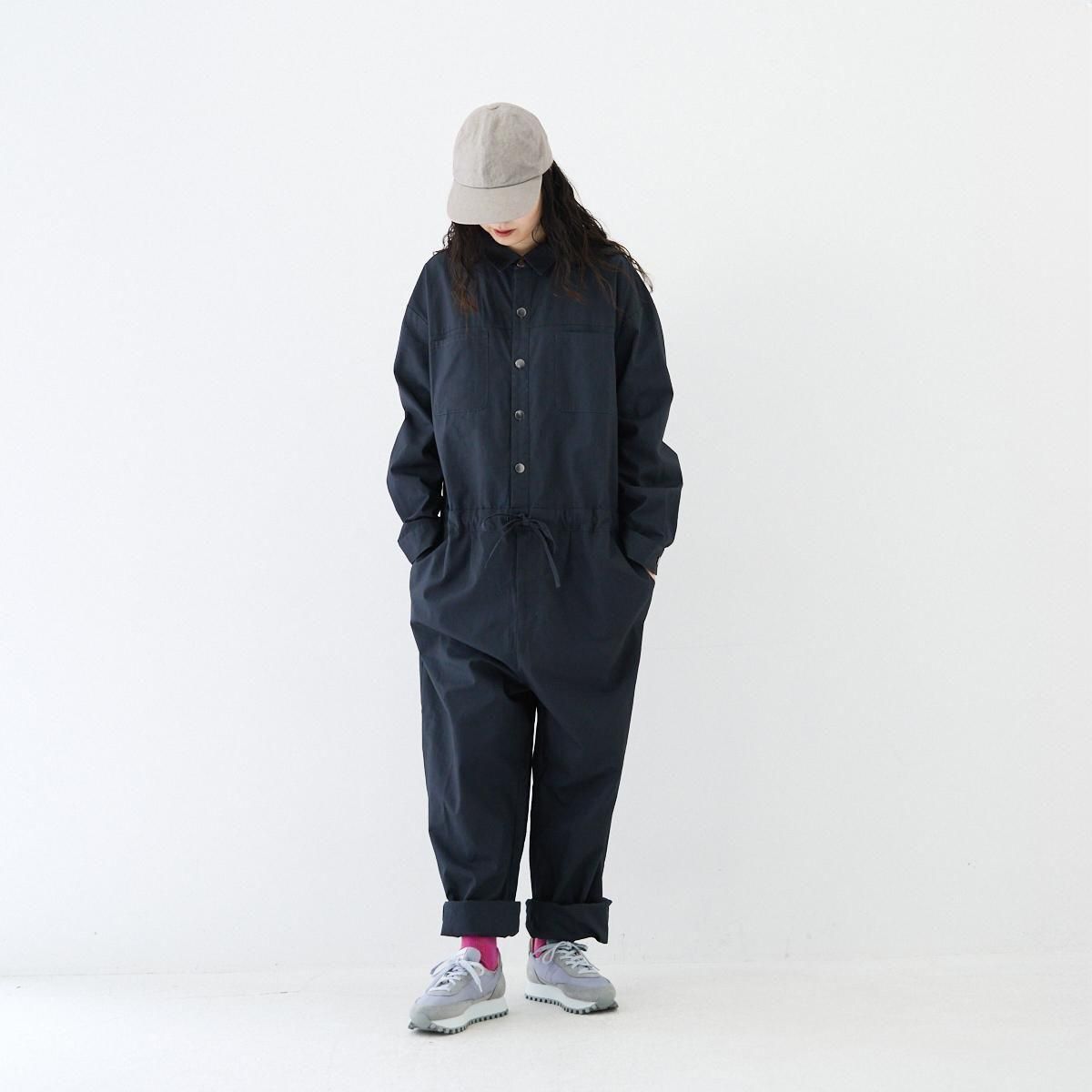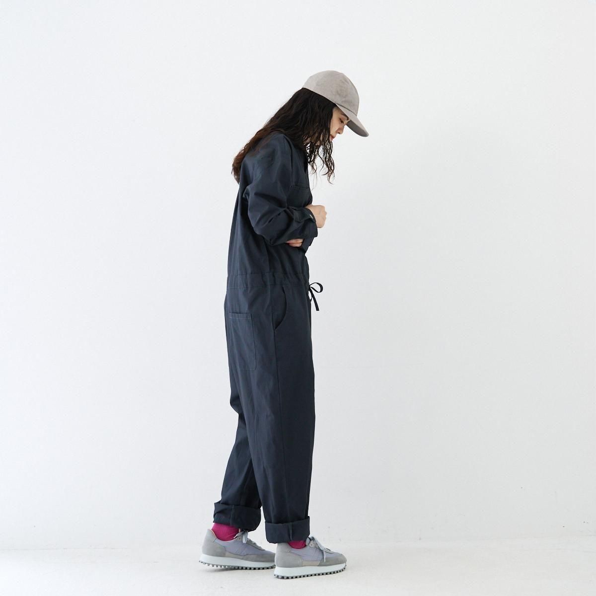 ありそうでなかったものや、ちょっと懐かしく思えるオリジナルウェアを提案するVOIRY。 "ワークウェアといえばツナギ!"ということで作られました!! ややライトなコットンリップ素材を採用し、肩幅、身幅、股下などゆったりとしたサイズで、ウエストの紐を絞ってグラウジングできます。 カラーはヴィンテージライクなチャコールグレーの1色展開です。 color: チャコールグレー size : one size 身幅68cm 総丈162cm 肩幅60cm 股下70cm 袖丈56cm material : COTTON100% model : 168cm