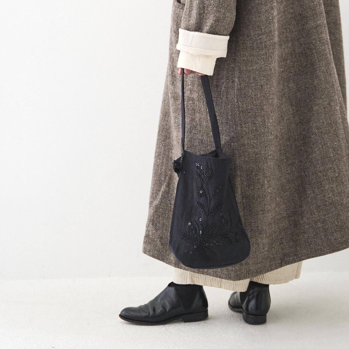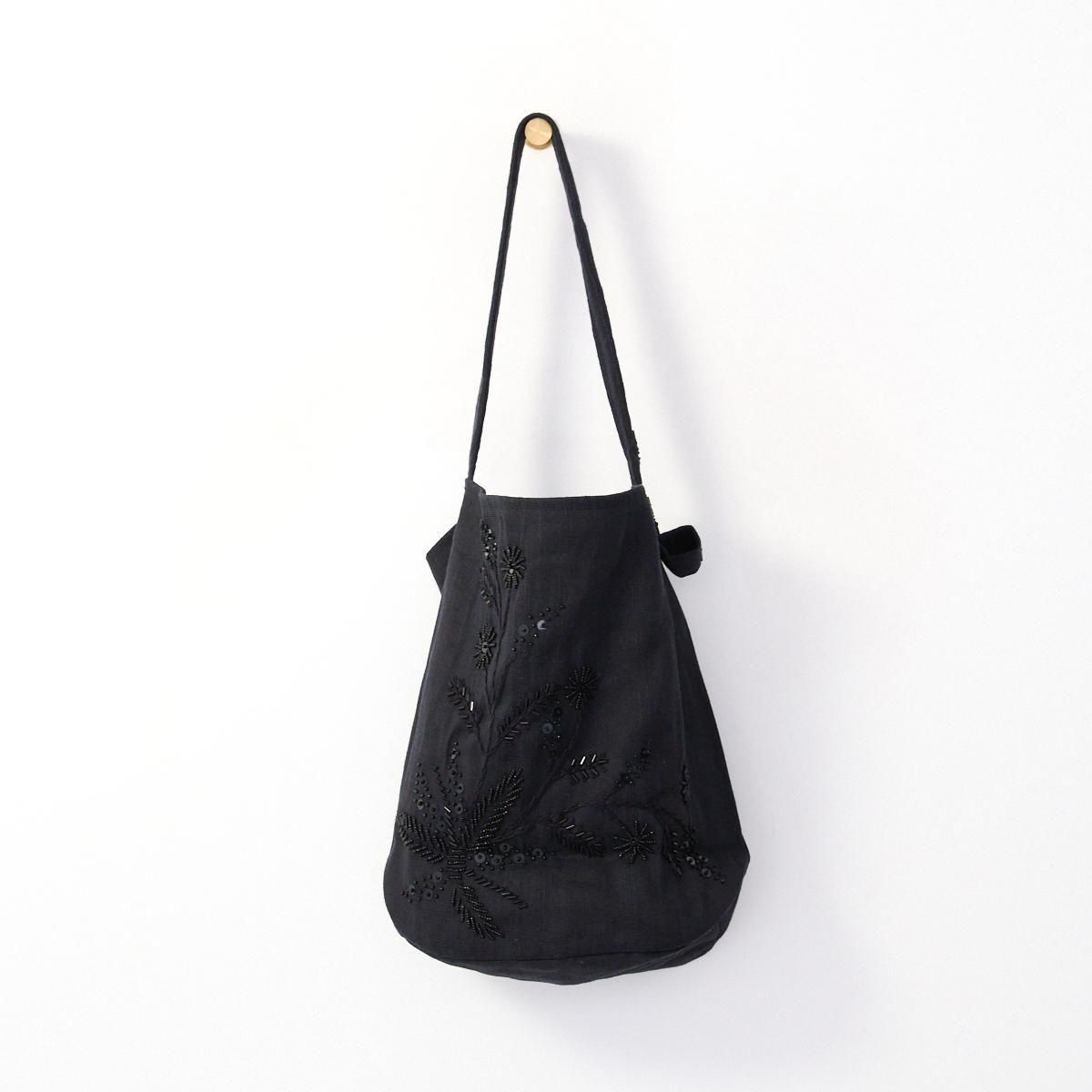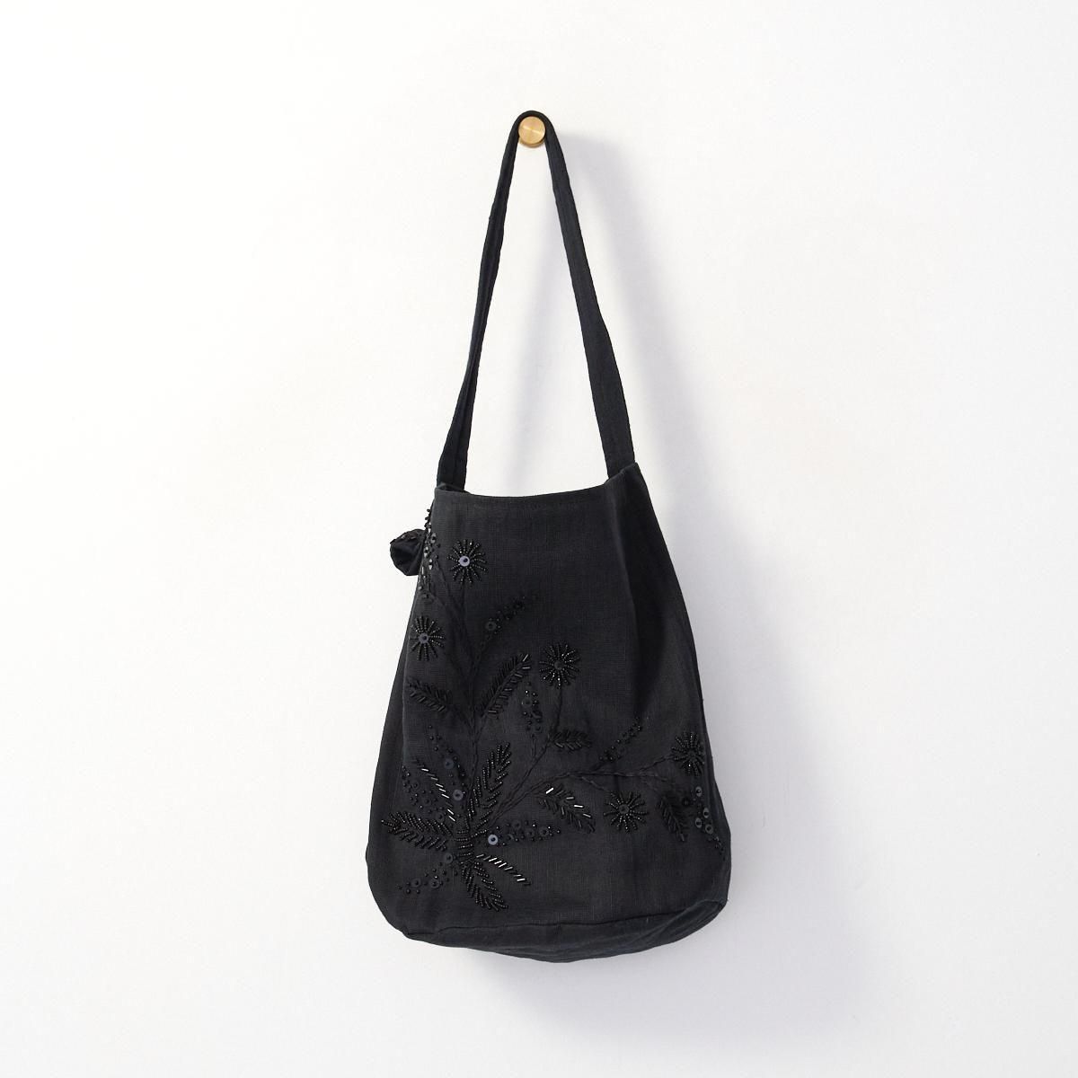 Khadi and Co(カディ アンド コー) はデザイナーのベス・ニールセンが立ち上げたフランス、パリのファブリックブランド。 インド伝統の手紡ぎによるカディを使用しているため、不均一な織りから生まれる独特の美しい風合いを持つ。ハンドメイドならではの使い込むごとにます美しさも魅力のひとつです。 ジュート生地に手仕事を感じるビーズ刺繍が施されたバッグです。 軽量でコーディネートのアクセントにもなります。 インド製 color:BLACK size: H28cm×W29.5cm/底幅H15cm×W20.5cm/持ち手49cm ※サイズ計測の多少の誤差はご了承下さい。 material: Jute100% ※手織り生地の為、ネップやほつれなどが見られる場合がございますが、手仕事の特性としてご理解くださいませ。柄の出方には個体差がございます。ご了承くださいませ。 お洗濯は、漂白剤や蛍光剤入り洗剤のご使用は避け、単独手洗いして下さい。 お取り扱い店舗・・・dieci芝川ビル店 size_chart