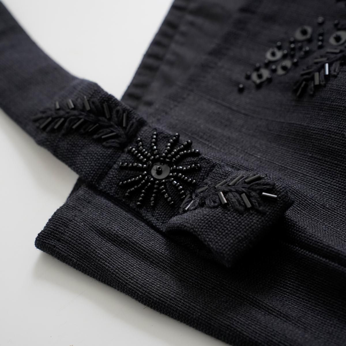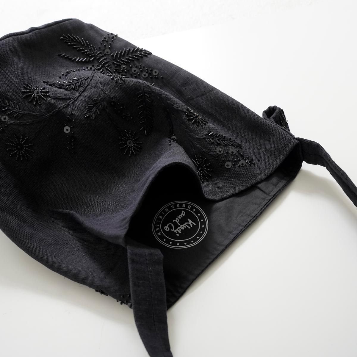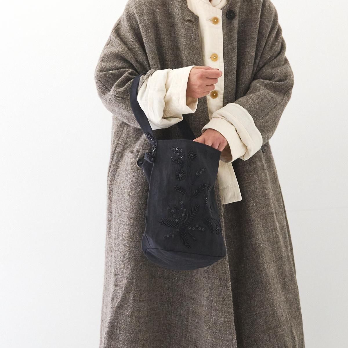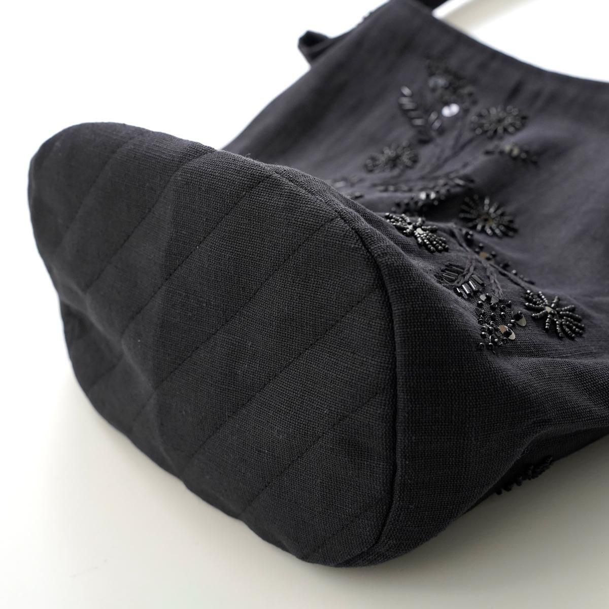 Khadi and Co(カディ アンド コー) はデザイナーのベス・ニールセンが立ち上げたフランス、パリのファブリックブランド。 インド伝統の手紡ぎによるカディを使用しているため、不均一な織りから生まれる独特の美しい風合いを持つ。ハンドメイドならではの使い込むごとにます美しさも魅力のひとつです。 ジュート生地に手仕事を感じるビーズ刺繍が施されたバッグです。 軽量でコーディネートのアクセントにもなります。 インド製 color:BLACK size: H28cm×W29.5cm/底幅H15cm×W20.5cm/持ち手49cm ※サイズ計測の多少の誤差はご了承下さい。 material: Jute100% ※手織り生地の為、ネップやほつれなどが見られる場合がございますが、手仕事の特性としてご理解くださいませ。柄の出方には個体差がございます。ご了承くださいませ。 お洗濯は、漂白剤や蛍光剤入り洗剤のご使用は避け、単独手洗いして下さい。 お取り扱い店舗・・・dieci芝川ビル店 size_chart