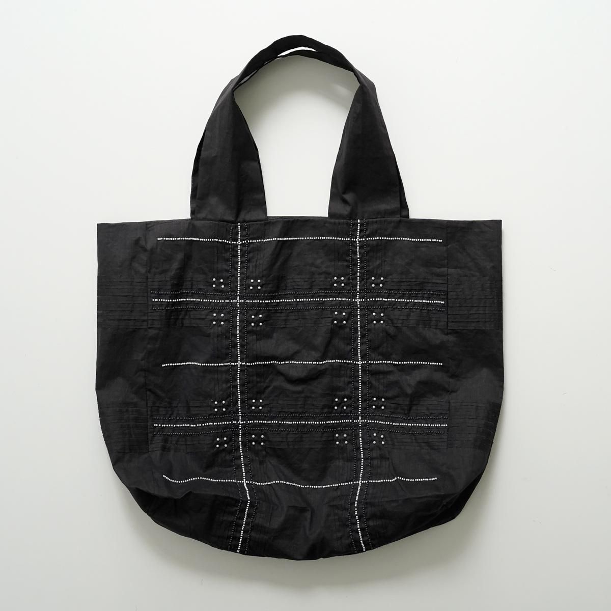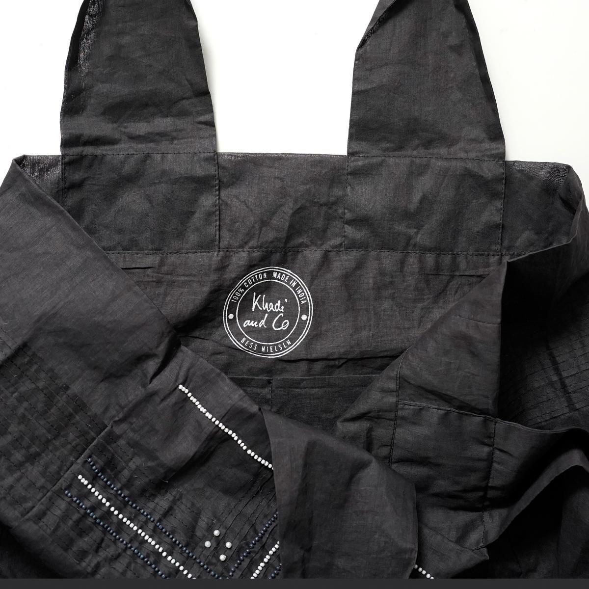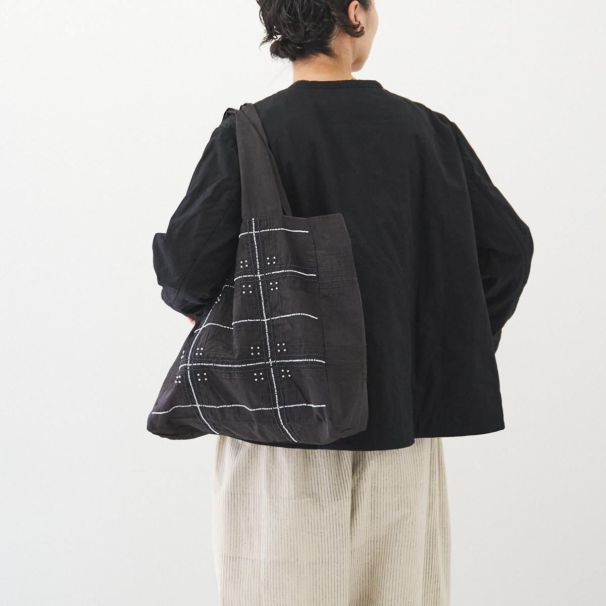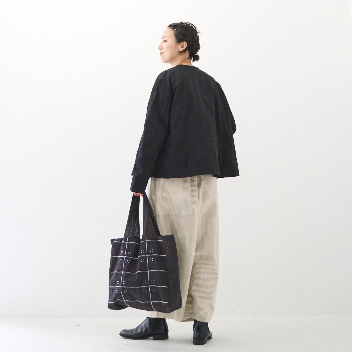Khadi and Co(カディ アンド コー) はデザイナーのベス・ニールセンが立ち上げたフランス、パリのファブリックブランド。 インド伝統の手紡ぎによるカディを使用しているため、不均一な織りから生まれる独特の美しい風合いを持つ。ハンドメイドならではの使い込むごとにます美しさも魅力のひとつです。 ジュート生地に手仕事を感じるビーズ刺繍が施され、 軽量ながらたっぷりとした容量が嬉しいバッグです。 コーディネートのアクセントにもなります。 インド製 color:BLACK size: W35cm/H34cm/D13cm/持ち手50cm ※サイズ計測の多少の誤差はご了承下さい。 material: Jute100% ※手織り生地の為、ネップやほつれなどが見られる場合がございますが、手仕事の特性としてご理解くださいませ。柄の出方には個体差がございます。ご了承くださいませ。 お洗濯は、漂白剤や蛍光剤入り洗剤のご使用は避け、単独手洗いして下さい。 お取り扱い店舗・・・dieci芝川ビル店 size_chart