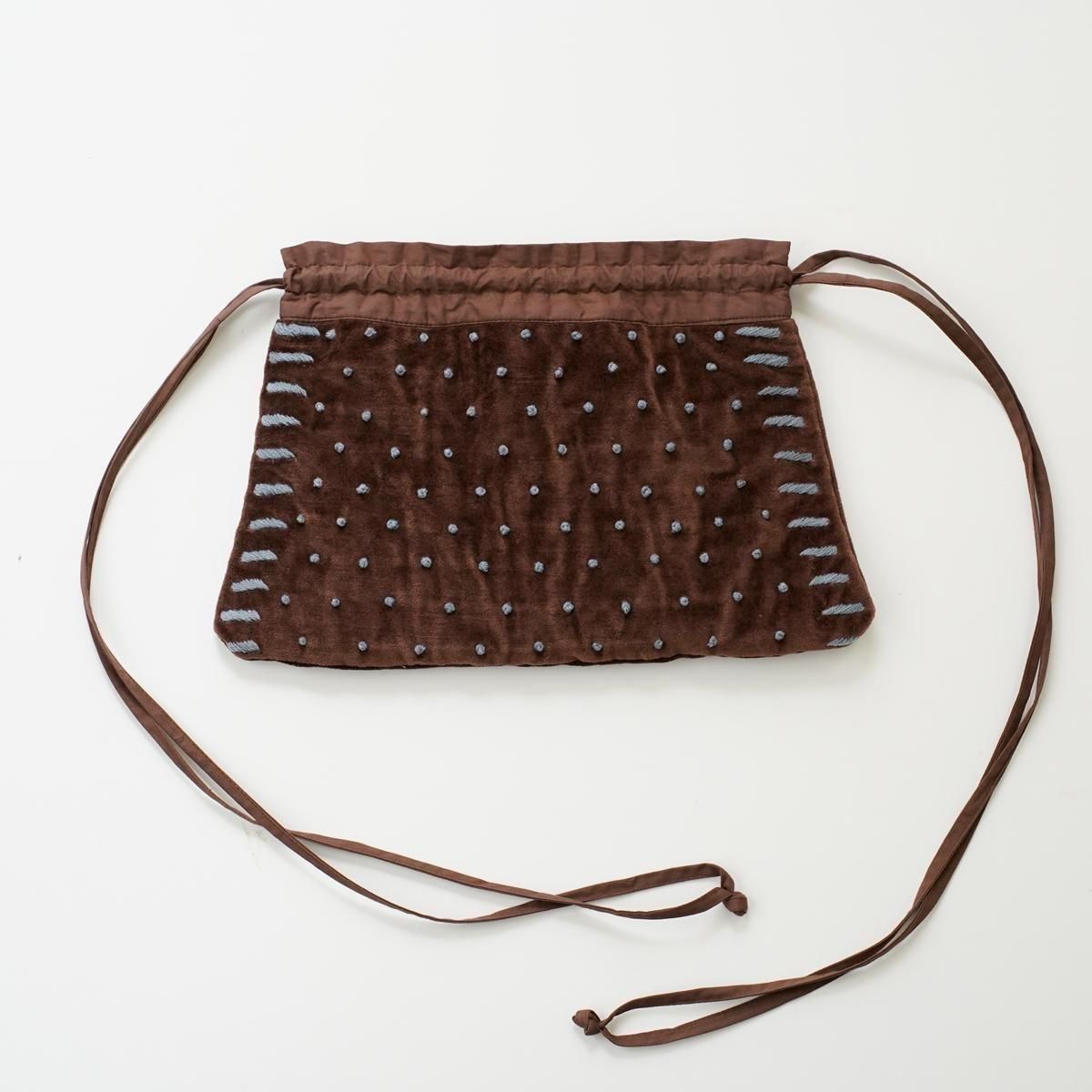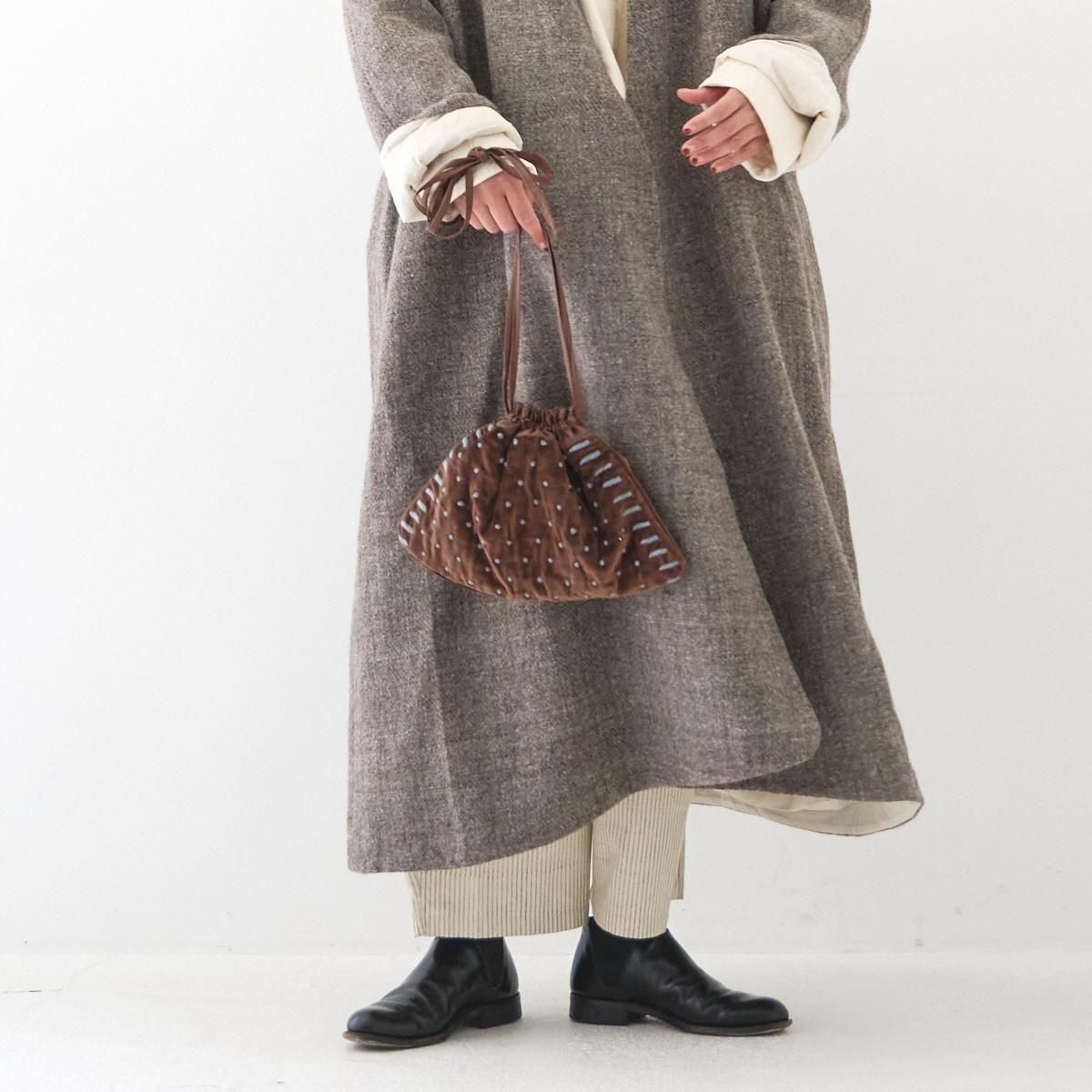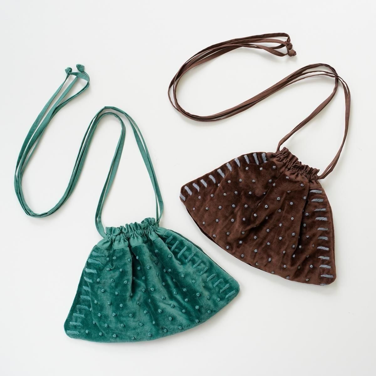 Khadi and Co(カディ アンド コー) はデザイナーのベス・ニールセンが立ち上げたフランス、パリのファブリックブランド。 コットンベルベット生地に手刺繍した人気のベルベットバッグに新作が登場しました。 花びらのような形の「PETAL」 巾着型で持ち手が長く、結んだり肩にかけたりとお好みの長さに調整いただけます。 コットンの裏地付きで、内側にポケットが1つございます。 インド製 size: ONE W33cm(最大幅)×H22cm ※サイズ計測の多少の誤差はご了承下さい。 color: GREEN,BROWN material: Cotton 100% ※ネップやほつれなどが見られる場合がございますが、手仕事の特性としてご理解くださいませ。 ※着用の際、摩擦や汗により他のものに移染する場合があります。 お洗濯は、漂白剤や蛍光剤入り洗剤のご使用は避け、単独水洗いして下さい。 天然染めの為、光により変色しますので、長時間の直射日光はお避け下さい。 お取り扱い店舗・・・dieci芝川ビル店 size_chart