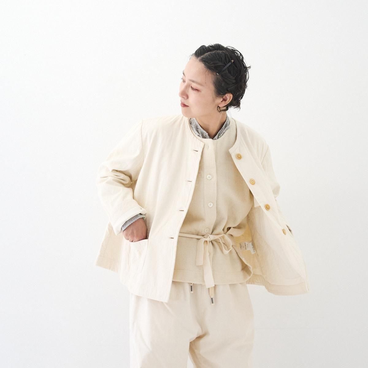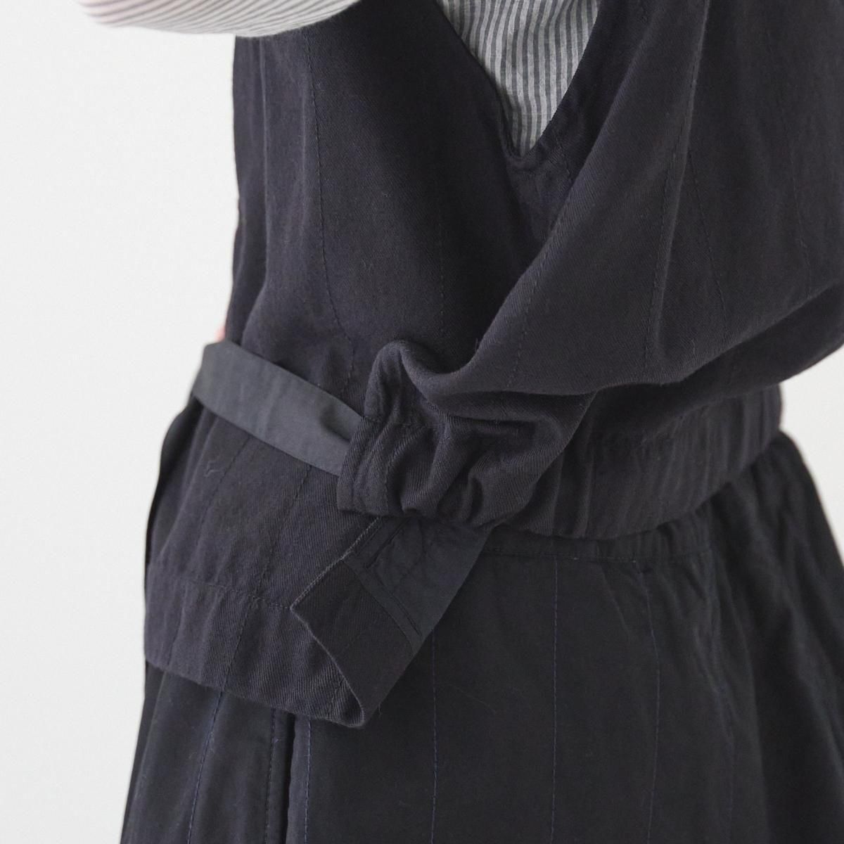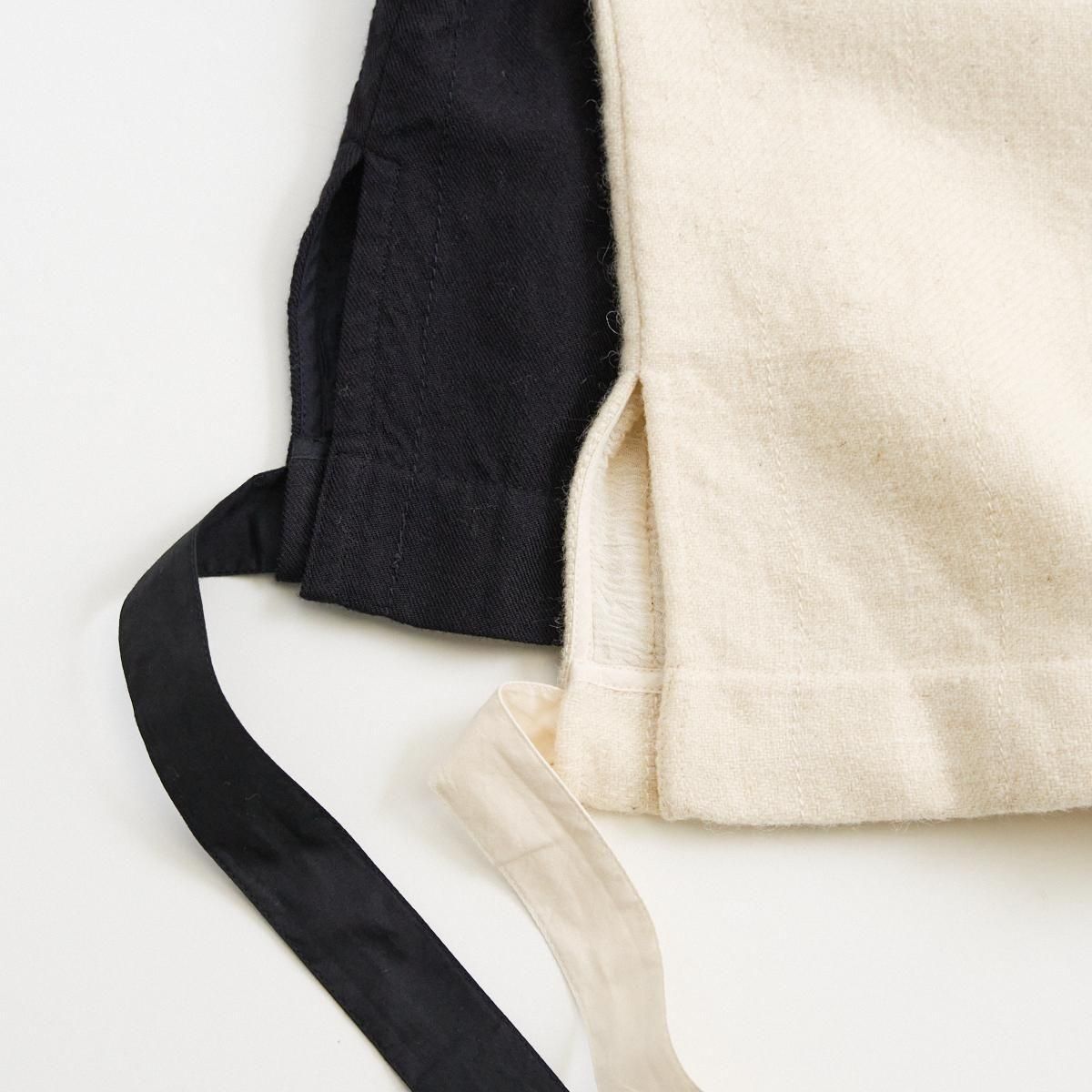 Khadi and Co(カディ アンド コー) はデザイナーのベス・ニールセンが立ち上げたフランス、パリのファブリックブランド。 インド伝統の手紡ぎによるカディを使用しているため、不均一な織りから生まれる独特の美しい風合いを持つ。ハンドメイドならではの使い込むごとにます美しさも魅力のひとつです。 こちらはコットンリボンが特徴的なウールベストのAVA。 軽い着心地でゆったりとしたアームホール、インナーを選ばず様々な着こなしを楽しむことができます。 後身頃に通されたリボンを絞ることでギャザーを作り、シルエットの変化が付けられます。 カディコットンの裏地付き。 Khadi and Co 25AW Gauze Wool Vest size: M 着丈56cm/身幅63cm/肩幅44cm color:NATURAL:Himarayan Wool / BLACK : Twill Wool material: WOOL 100% 裏地 COTTON 100% ※手織りのカディコットンのためネップやほつれなどが見られる場合がございますが、手仕事の特性としてご理解くださいませ。 ※着用の際、摩擦や汗により他のものに移染する場合があります。 お洗濯は、漂白剤や蛍光剤入り洗剤のご使用は避け、単独水洗いして下さい。 天然染めの為、光により変色しますので、長時間の直射日光はお避け下さい。 お取り扱い店舗・・・dicei芝川ビル店