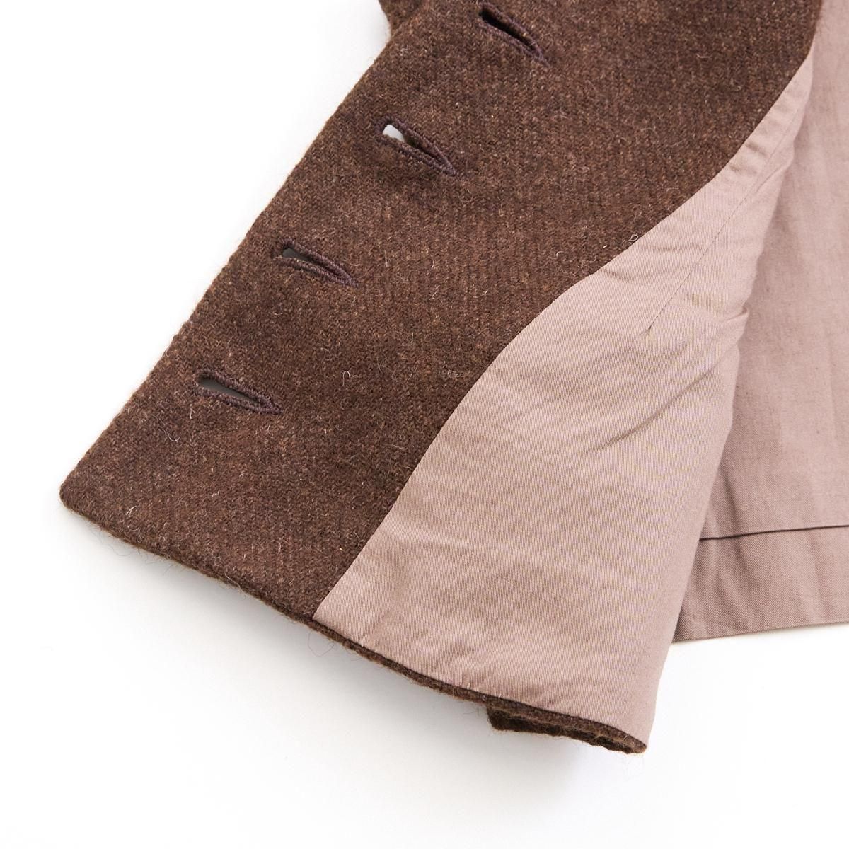 Khadi and Co(カディ アンド コー) はデザイナーのベス・ニールセンが立ち上げたフランス、パリのファブリックブランド。 インド伝統の手紡ぎによるカディを使用しているため、不均一な織りから生まれる独特の美しい風合いを持つ。ハンドメイドならではの使い込むごとにます美しさも魅力のひとつです。 Himalayan Wool で仕立てられた定番のOKLA 。コンパクトな襟やすっきりしたシルエットなどまとまりの良いデザイン。少しだけ後ろの着丈が短めにしているので、ボリュームのあるワンピースやブラウスとも相性がよく、様々な着こなしを楽しむことができます。 Khadi and Co 25AW size: M 着丈(前)55cm(後)44cm/身幅45cm/肩幅36cm/襟高4.5cm ※サイズ計測の多少の誤差はご了承下さい。 color:D.BROWN,GRAY material: Himalayan W00l 100% 裏地 Cotton 100% ※手織りのカディコットンのためネップやほつれなどが見られる場合がございますが、手仕事の特性としてご理解くださいませ。 ※着用の際、摩擦や汗により他のものに移染する場合があります。 お洗濯は、漂白剤や蛍光剤入り洗剤のご使用は避け、単独水洗いして下さい。 天然染めの為、光により変色しますので、長時間の直射日光はお避け下さい。 model:163cm お取り扱い店舗・・・dicei芝川ビル店 size_chart