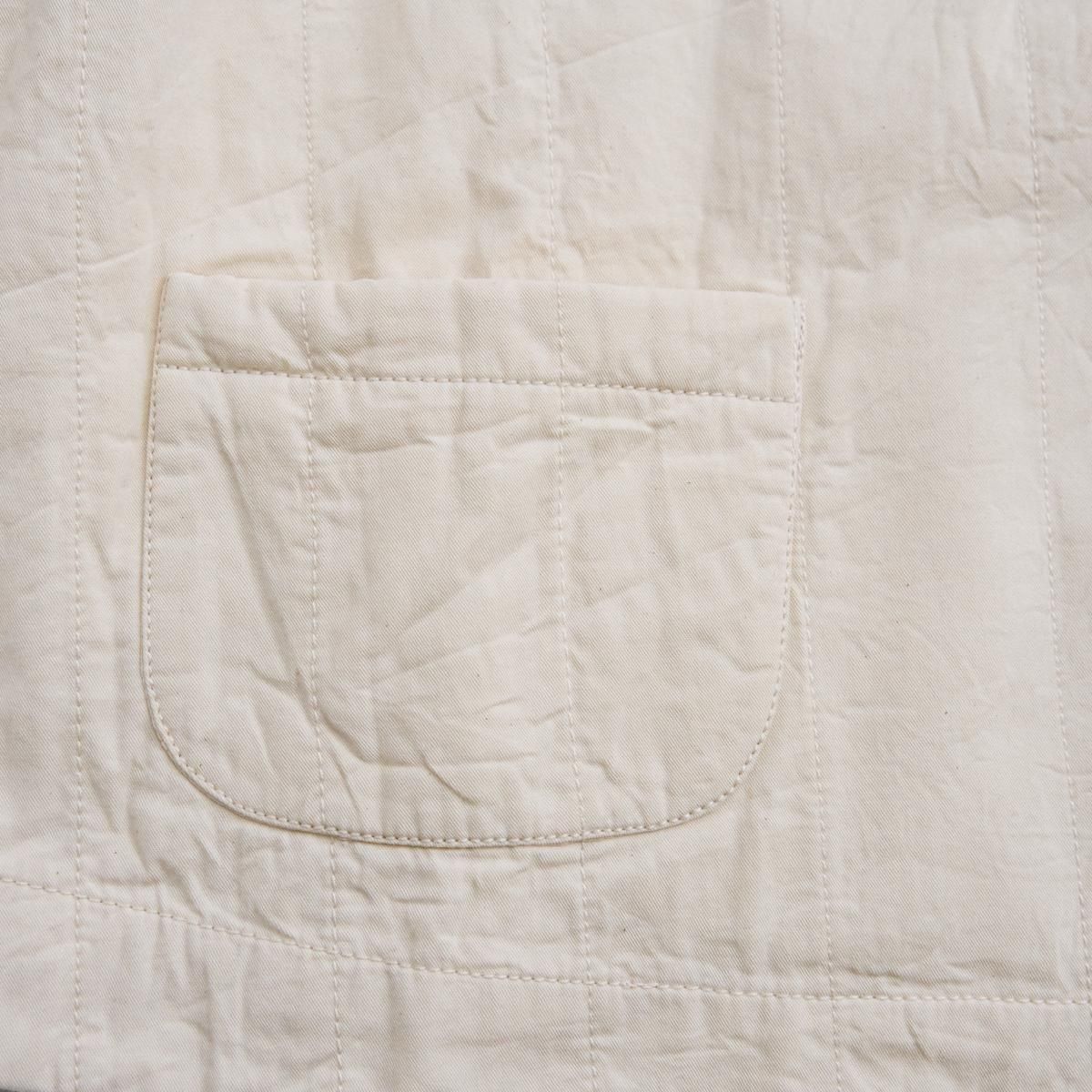 Khadi and Co(カディ アンド コー) はデザイナーのベス・ニールセンが立ち上げたフランス、パリのファブリックブランド。 インドの職人によるハンドメイド。使い込むごとにます美しさも魅力のひとつです。 こちらは新作のキルティングジャケットです。 生地全体にキルティングが施されていて裾に広がるデザイン、ややショート丈の ジャケットでレースやフリルなどのお洋服とのバランスがとても良いです。 khadi and coならではのデザインと手仕事を感じるジャケットで 洗練された程よい抜け感もあります。 color:WHITE,BLACK size:M 着丈61cm/肩幅44cm/袖丈59cm/身幅64cm ※サイズ計測の多少の誤差はご了承下さい。 material:cotton 100% 裏地 Cotton 100% model:163cm お取り扱い店舗・・・dicei芝川ビル店 size_chart