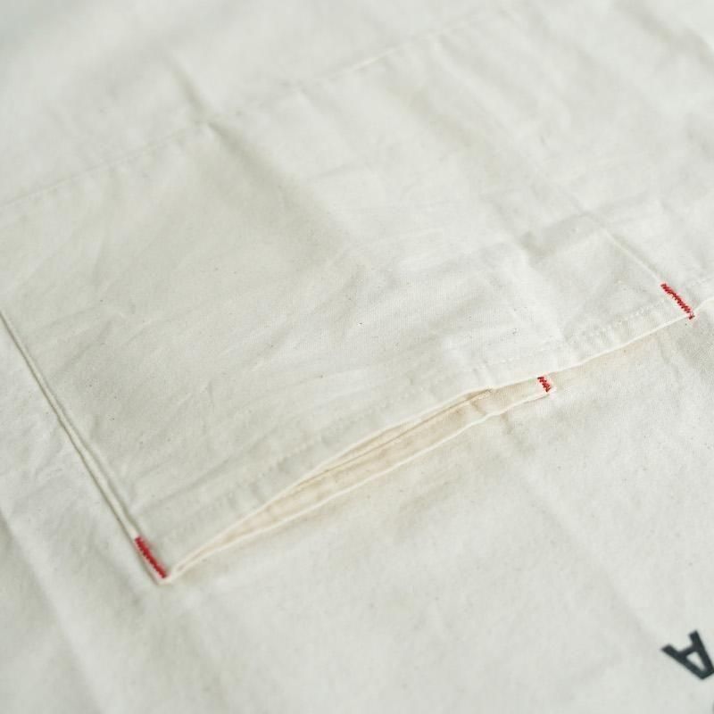 ありそうでなかったものや、ちょっと懐かしく思えるオリジナルウェアを提案するVOIRY。 WORK APRON-E NEWSTAND ライトオンスのコットンキャンバスが採用され、首紐、腰紐は柔らかいヘリンボーンテープを使用したワークエプロン。製品洗いを施されているので、生地の起毛、シワ感、プリントの掠れなど着古した感じが出ています。金具類は一切使用しておりませんので着用時に金具のあたる違和感がなく、また洗濯機へのダメージも心配ありませんのでガンガン汚して、ガンガン洗っていただけます。腰紐も長くなっておりますので腰前で結んでいただく事も可能です。前面仕切り付きポケットがあり、左側中に隠しポケットもあります。 size : 約H85cm×W66cm、首ひも長さ50cm、腰紐長さ80cm×2 material : cotton 100% ※製品洗いのため、個体差がございますのでご了承ください。 取り扱い店舗…dieci天神橋店 エプロン1枚のみはレターパックプラスの配送をご利用いただけます。2枚以上はゆうパックをご利用ください。