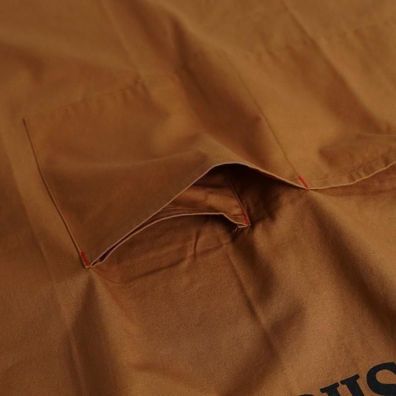 ありそうでなかったものや、ちょっと懐かしく思えるオリジナルウェアを提案するVOIRY。 WORK APRON-G N&K ライトオンスのコットンキャンバスが採用され、首紐、腰紐は柔らかいヘリンボーンテープを使用したワークエプロン。製品洗いを施されているので、生地の起毛、シワ感、プリントの掠れなど着古した感じが出ています。金具類は一切使用しておりませんので着用時に金具のあたる違和感がなく、また洗濯機へのダメージも心配ありませんのでガンガン汚して、ガンガン洗っていただけます。腰紐も長くなっておりますので腰前で結んでいただく事も可能です。前面仕切り付きポケットがあり、左側中に隠しポケットもあります。 size : 約H85cm×W66cm、首ひも長さ50cm、腰紐長さ80cm×2 material : cotton 100% ※製品洗いのため、個体差がございますのでご了承ください。 取り扱い店舗…dieci天神橋店 エプロン1枚のみはレターパックプラスの配送をご利用いただけます。2枚以上はゆうパックをご利用ください。