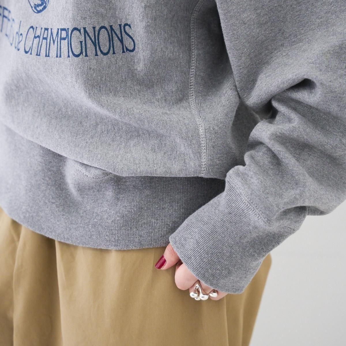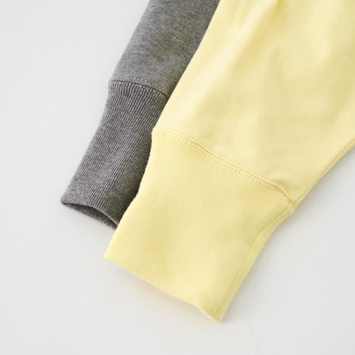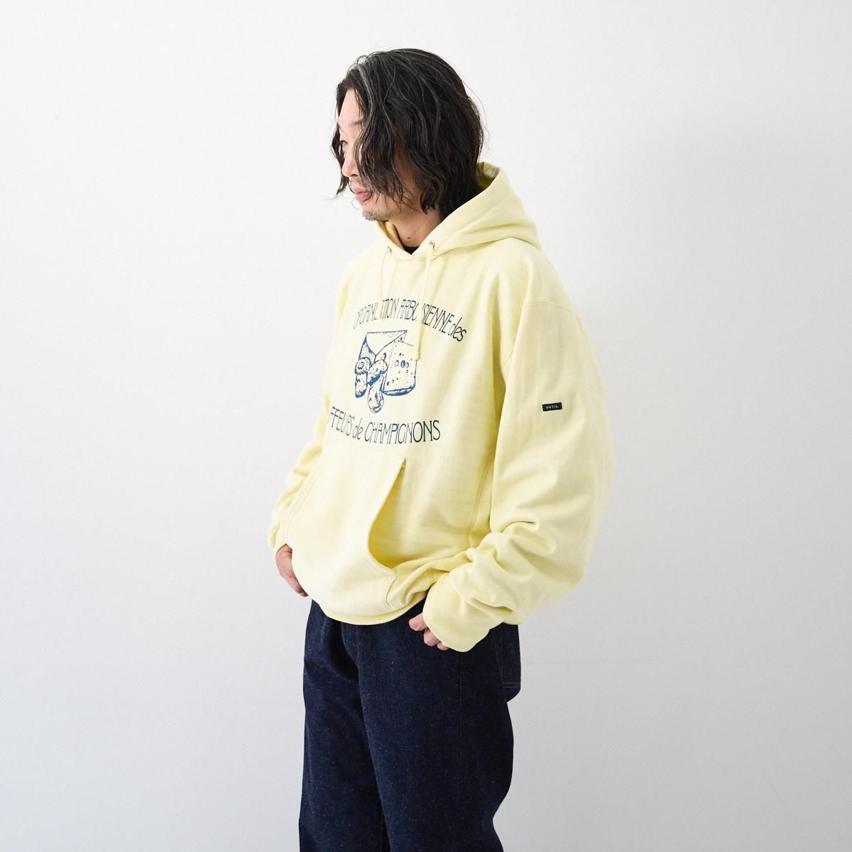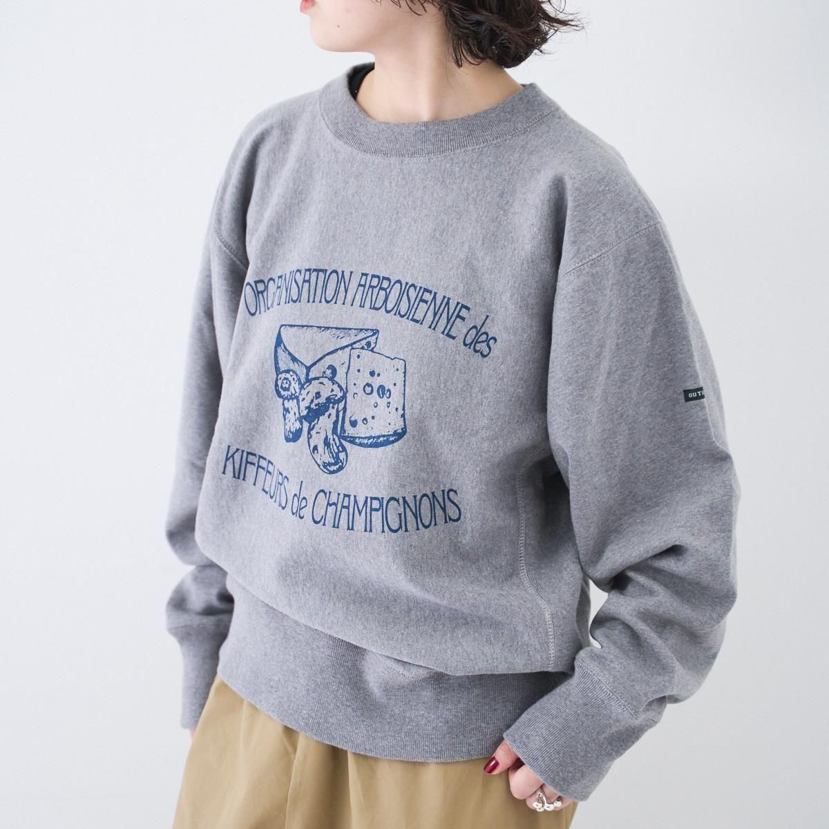 フランスであのスウェットシャツを作ったら…というアイデアで作成したMAILLE APT。 デザイナーが毎年フランスで旅する中で、印象に残った友人の言葉と、楽しい体験をプリントにしました。今回はjura(ジュラ地方)とauvergne(オーヴェルニュ地方)をテーマに、インディゴプリントで2パターン。 インディゴプリントならではの、染み込みプリントのような経年変化をお楽しみください。 厚みがありながら柔らかな生地感で、内側を起毛させており保温性の高い素材。フランスバスク地方で糸の染色から編みたて、カット縫製まで全ての工程を同じ工場で一貫して行っています。※洗濯後に数センチ縮みます。 25AW size:0 着丈59cm/身幅56.5cm/肩幅49.5cm/袖丈64cm ※サイズ計測の多少の誤差はご了承下さい。 color : TENDER YELLOW/HEATHER GRAY material : COTTON 100% MADE IN FRANCE model :160cm お取り扱い店舗・・・dieci kyutaro店2F -------------------------------------------------------- outil (ウティ) "Outil" とは、フランス語で〈道具〉〈ツール〉の意味。人と人を繋ぐため、生きるための衣服を提案しています。フランスと日本を中心に生産を行い、古くからのフランスのワークウェアから多くの手がかりを得て、素材、縫製、シルエットに「用の美」を追求しています。 size_chart