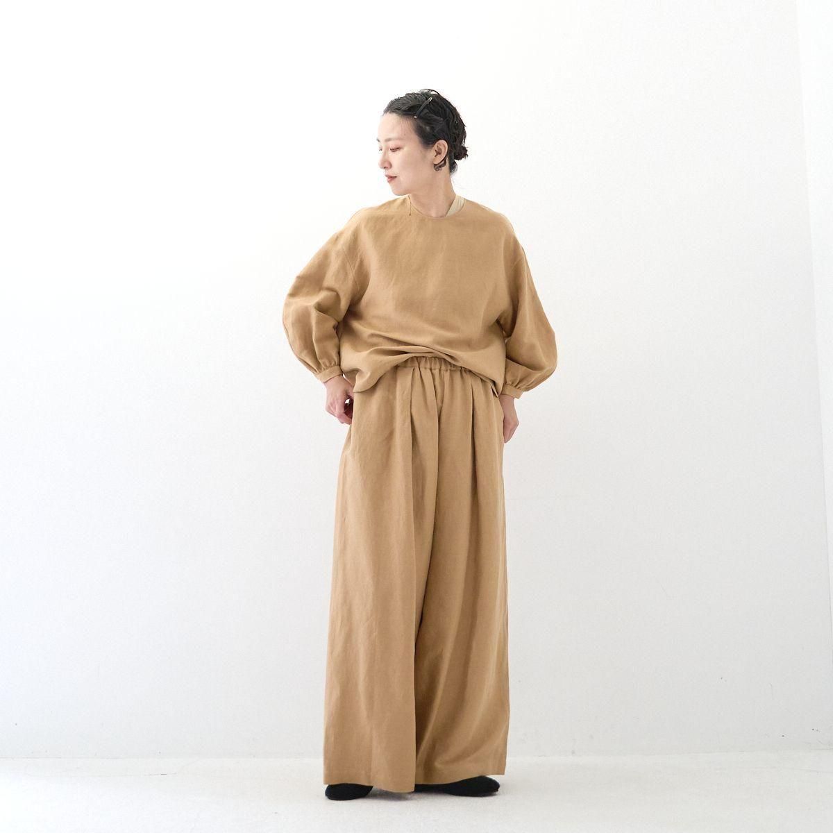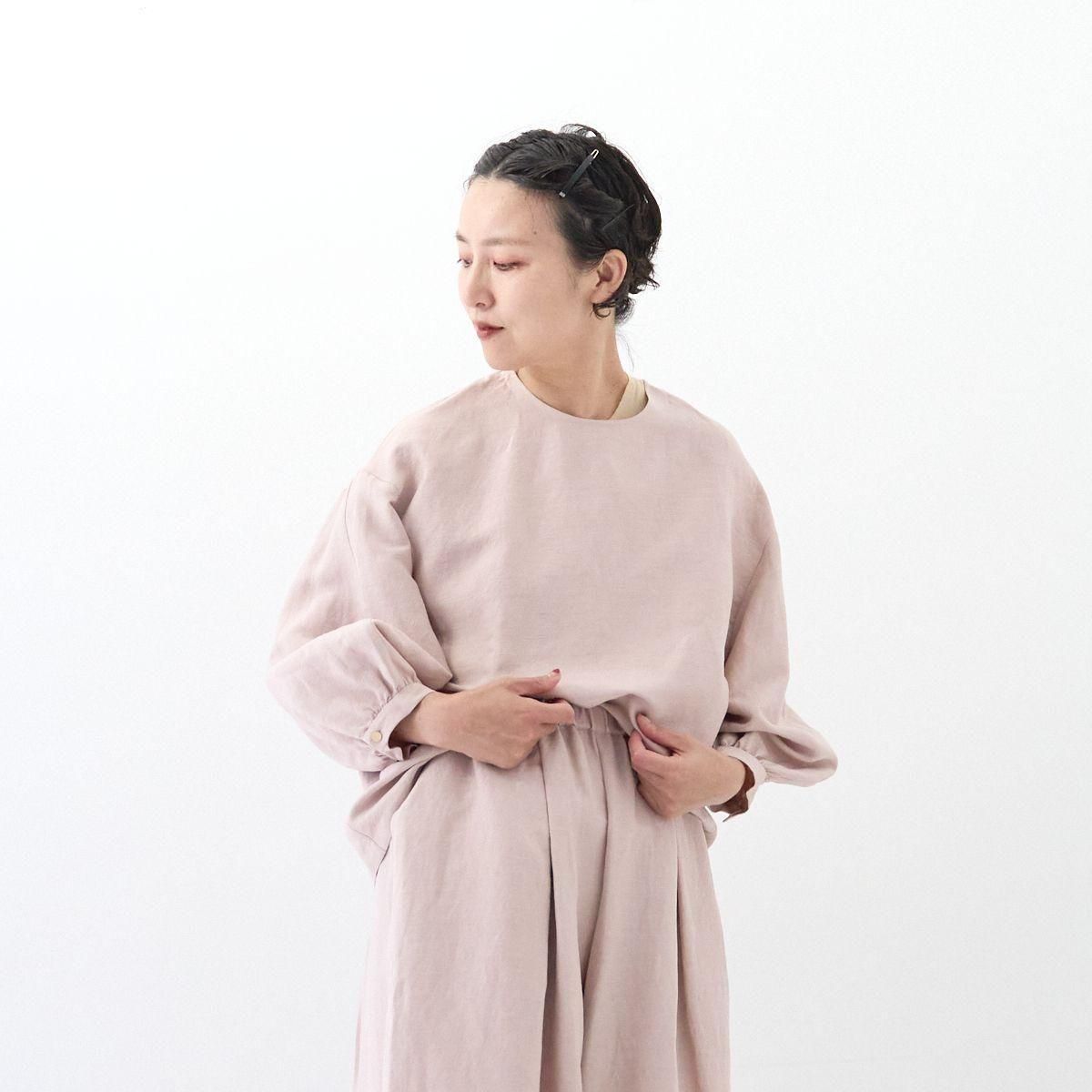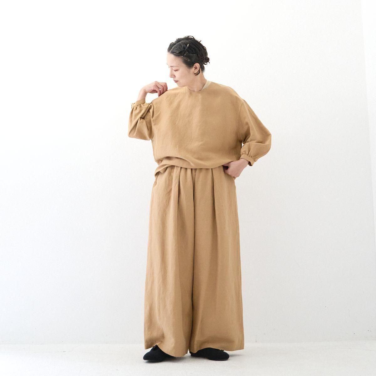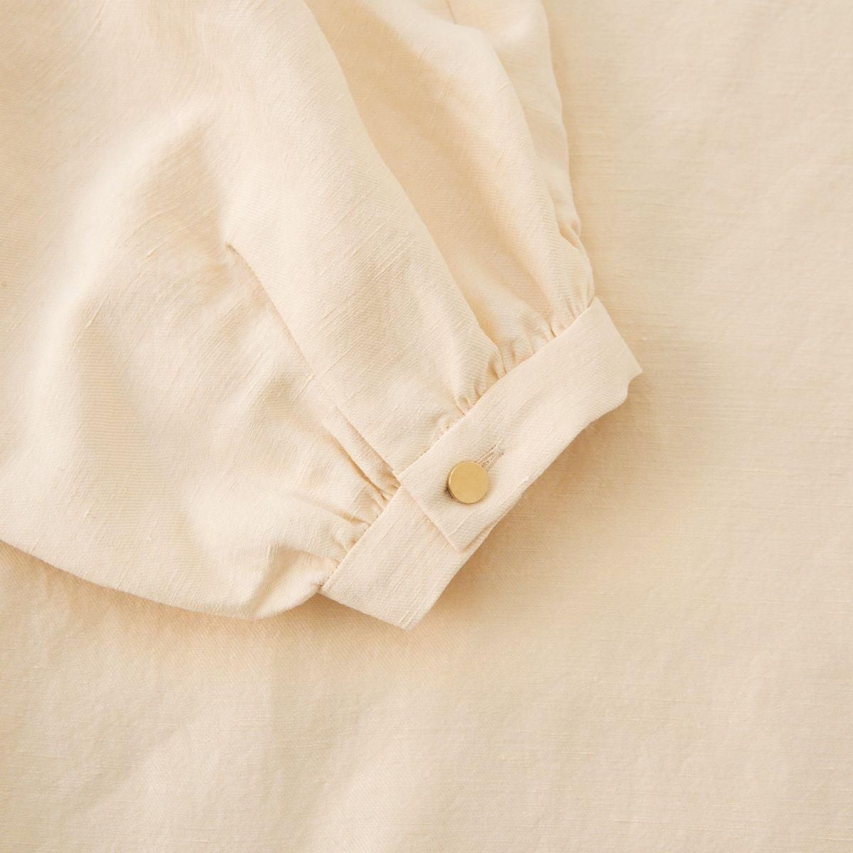 humoresque(ユーモレスク)は、デザイナー 渡辺由夏さんの「ちょうど良い糸を、ちょうど良い形で編んでみたい。」との想いから2012年の秋冬シーズンにニットを中心とした衣服ブランドをスタートし、シルクなど布帛アイテムの展開にも力を入れています。 humoresqueらしい上品さを併せ持ったパフスリーブのプルオーバー。 柔らかいリネンシルク生地で着用期間も長くお楽しみいただけ、こっくりとしたニュアンスのある柔らかいカラー展開です。 25AW size: F 着丈57.5cm 身幅58cm 裄丈68cm color:pink beige / ivory / camel material: リネン54% シルク46% パイピング キュプラ100% 手洗可 ※天然素材を使用しておりますため、織ムラやかすれ、フシやヨレによる不均一さ、 小さなほつれなどがある場合や、画像の色味や風合いと異なる場合もございます。 デリケートな素材もございますので、引っ掛けやひきつれにはご注意ください。 素材によって仕上がりに個体差が出ること、サイズ感、色、風合いについての特徴を、 天然素材ならではの良さとしてご理解の上、ご購入くださいますようお願いします。 シルクは直射日光により黄変しやすいため、陰干ししてください。 シルク糸が痩せてくるため、優しく手洗い、またはドライクリーニングをおすすめします。 model: 163cm(brick,shade着用) お取り扱い店舗・・・dieci芝川ビル店 size_chart