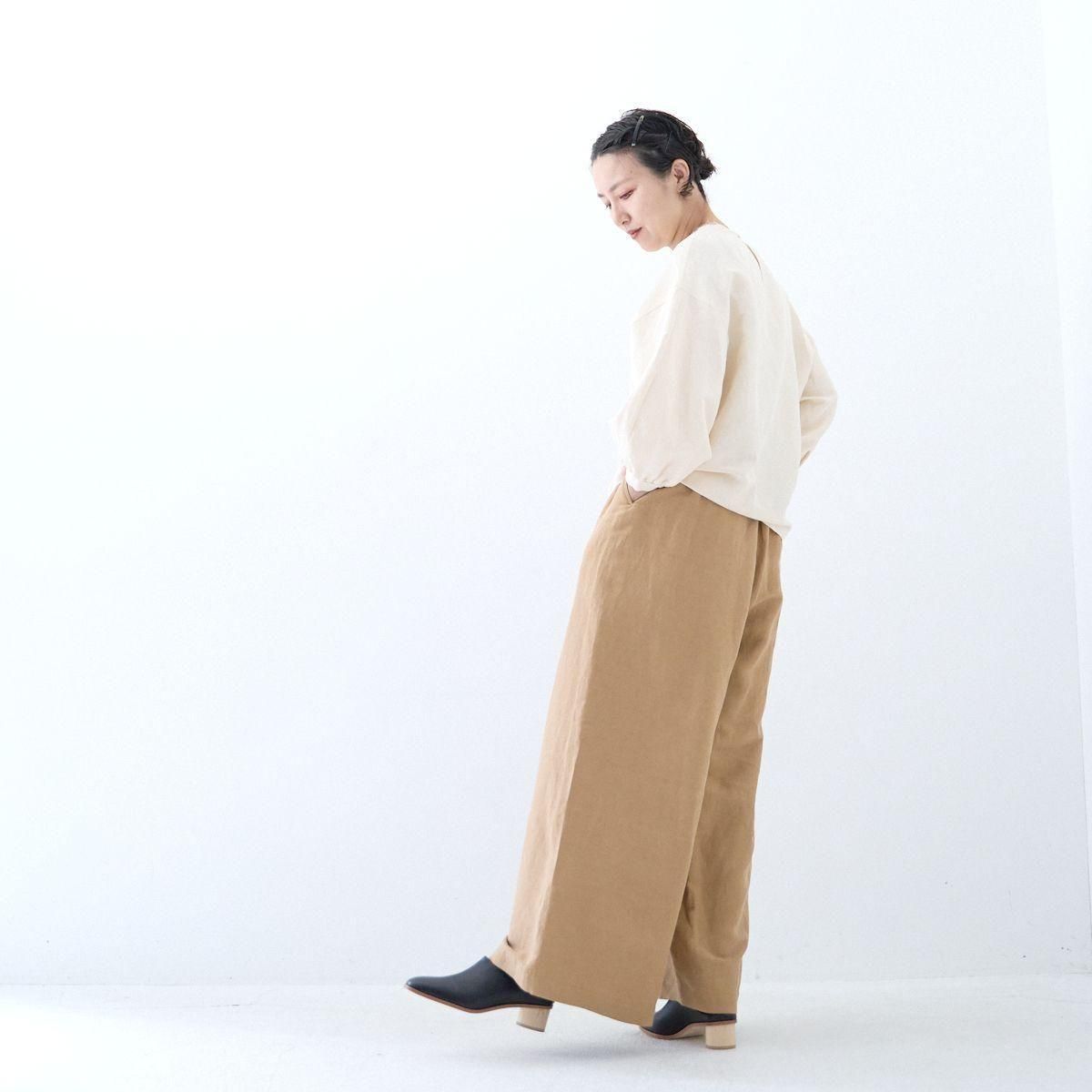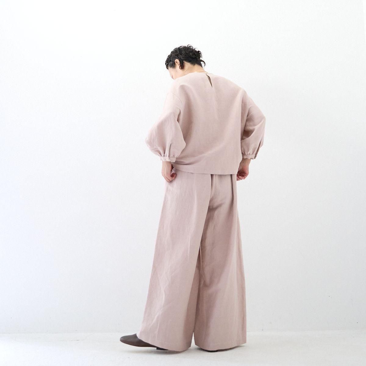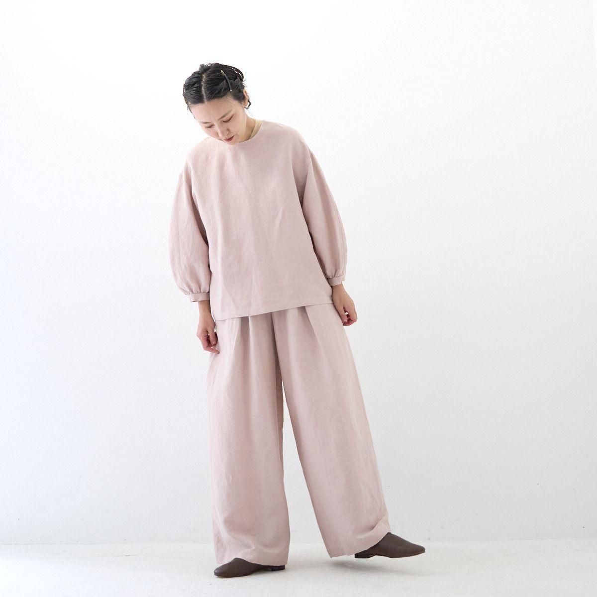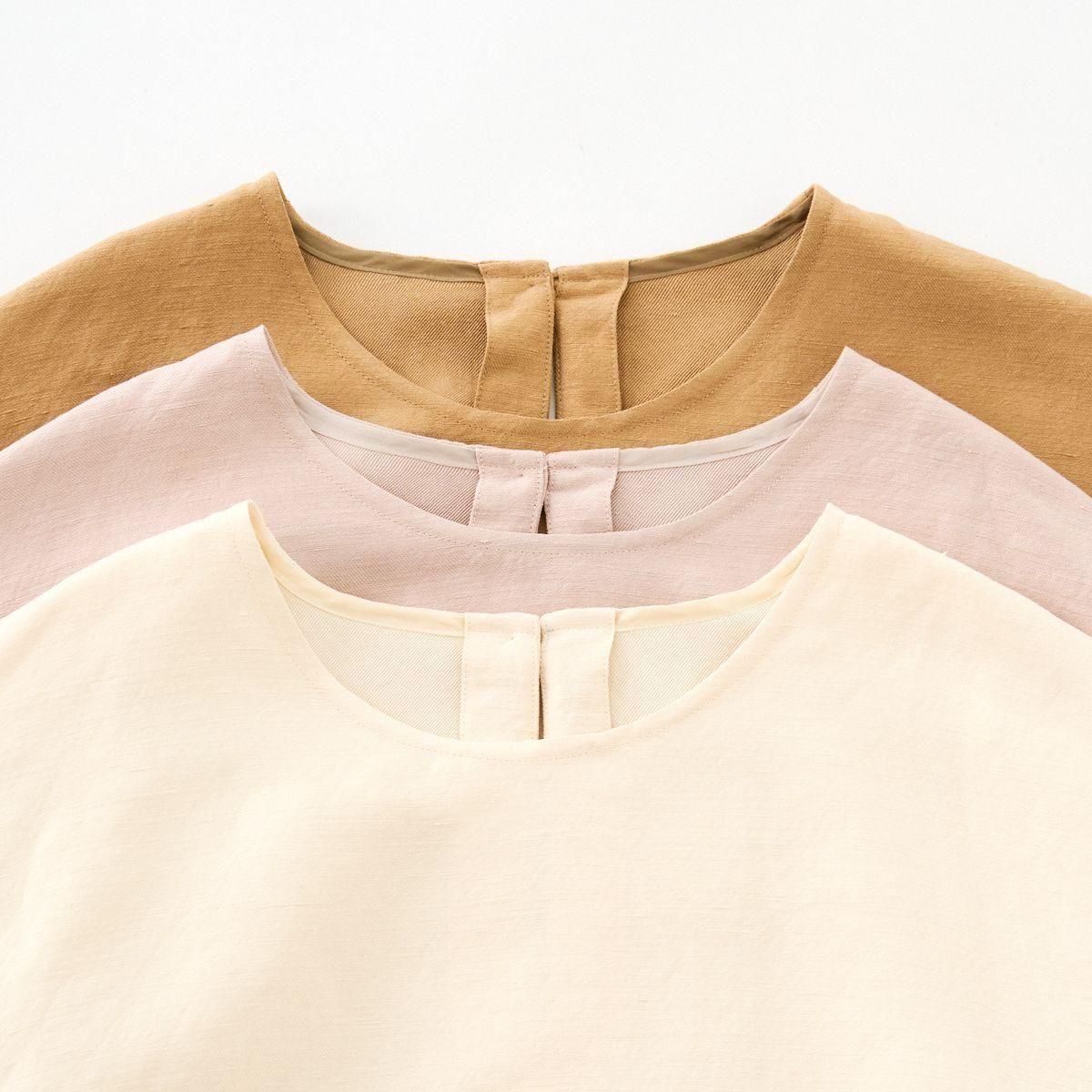 humoresque(ユーモレスク)は、デザイナー 渡辺由夏さんの「ちょうど良い糸を、ちょうど良い形で編んでみたい。」との想いから2012年の秋冬シーズンにニットを中心とした衣服ブランドをスタートし、シルクなど布帛アイテムの展開にも力を入れています。 humoresqueらしい上品さを併せ持ったパフスリーブのプルオーバー。 柔らかいリネンシルク生地で着用期間も長くお楽しみいただけ、こっくりとしたニュアンスのある柔らかいカラー展開です。 25AW size: F 着丈57.5cm 身幅58cm 裄丈68cm color:pink beige / ivory / camel material: リネン54% シルク46% パイピング キュプラ100% 手洗可 ※天然素材を使用しておりますため、織ムラやかすれ、フシやヨレによる不均一さ、 小さなほつれなどがある場合や、画像の色味や風合いと異なる場合もございます。 デリケートな素材もございますので、引っ掛けやひきつれにはご注意ください。 素材によって仕上がりに個体差が出ること、サイズ感、色、風合いについての特徴を、 天然素材ならではの良さとしてご理解の上、ご購入くださいますようお願いします。 シルクは直射日光により黄変しやすいため、陰干ししてください。 シルク糸が痩せてくるため、優しく手洗い、またはドライクリーニングをおすすめします。 model: 163cm(brick,shade着用) お取り扱い店舗・・・dieci芝川ビル店 size_chart