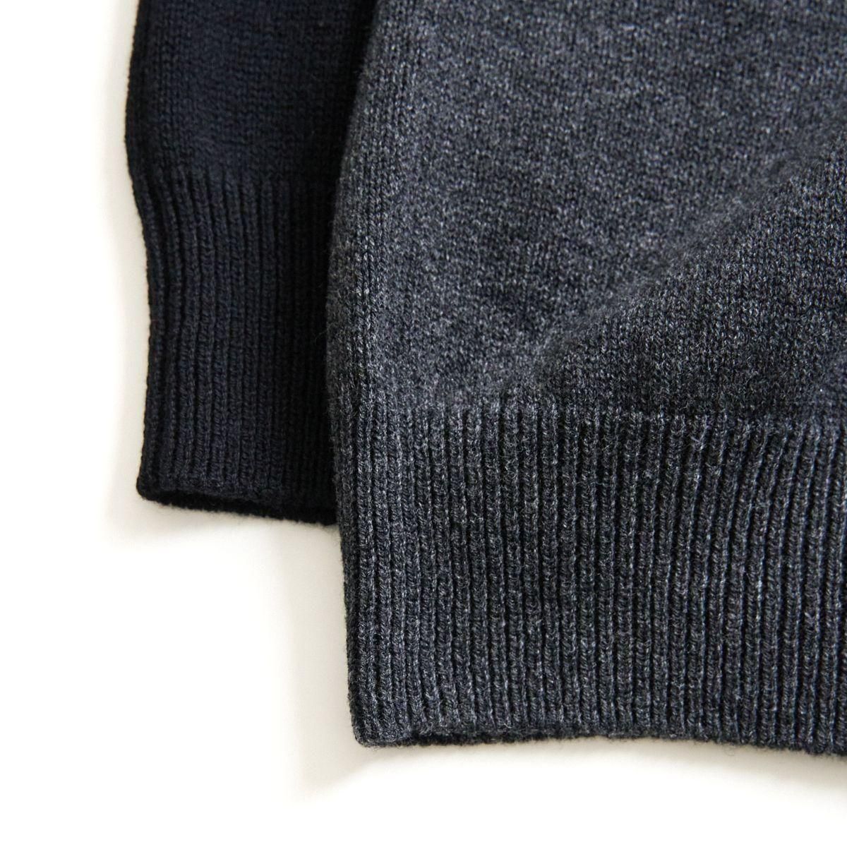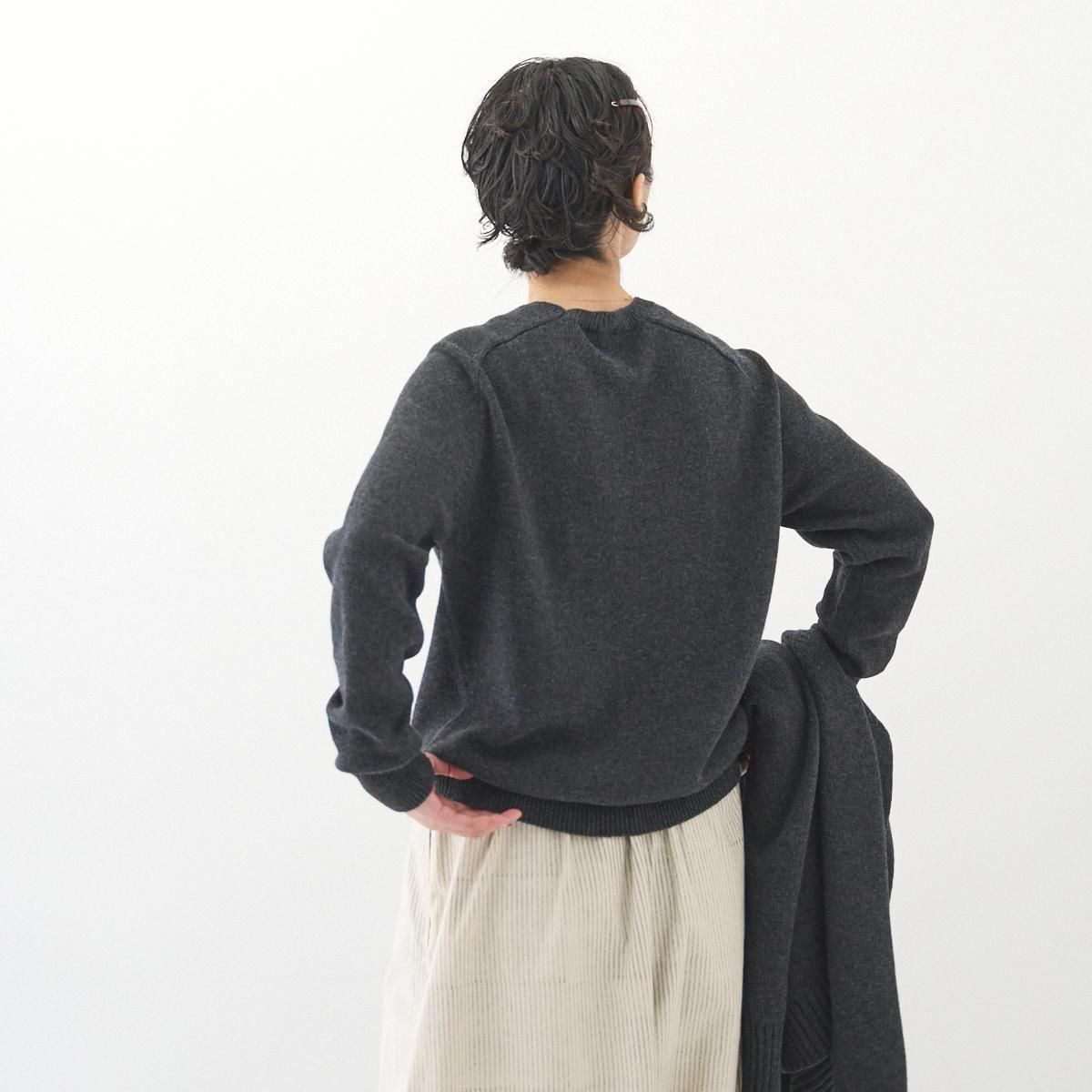 TORICI(トリチ)は手触りの良さ、軽さ、強さ、そして色彩の美しさ 全てを満たす高品質な糸を世界中から厳選し日本の職人の手仕事で一着一着丁寧に編み上げる高いクオリティとシンプルなデザインで長く使える時代に左右されない「定番」としてのニットウェアブランドです。 『ヴィラン』=悪役と、名付けられたこのニット。 撚りの強さにこだわった日本の糸を使い、日本の職人が編み上げたクルーネックセーターです。ハリ感と毛羽が少ないドライタッチが特徴。 徐々に柔らかく風合いがでてきて経年変化も楽しめるセーターです。 シンプルなシルエットはコーディネートの甘さも抑えてくれます。袖口は長めに取られたリブ、裾のリブはブラウジンクしやすくなっています。 ユニセックス TORICI 自動機 7G 日本糸使用 size: 3 裄丈85cm 身幅54cm 着丈66cm (ニットの為、多少の差異がございます。) color: ダークグレー,ブラック material:wool100% model:163cm 取扱い店舗…dieci芝川ビル店 size_chart