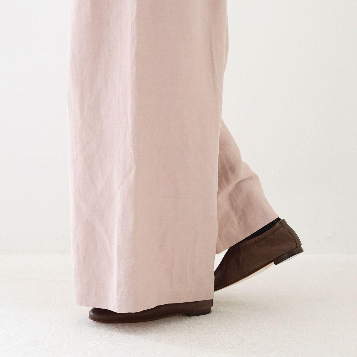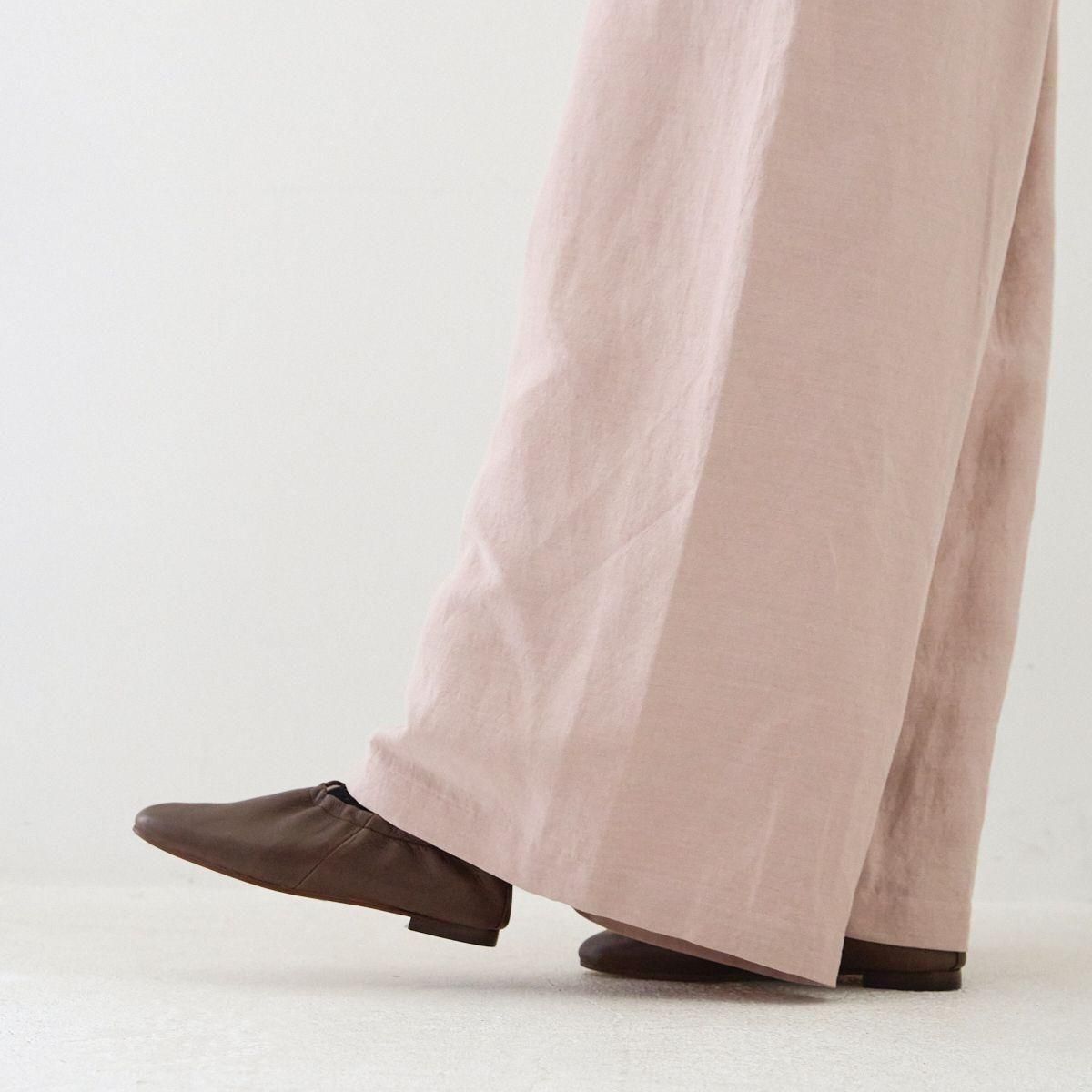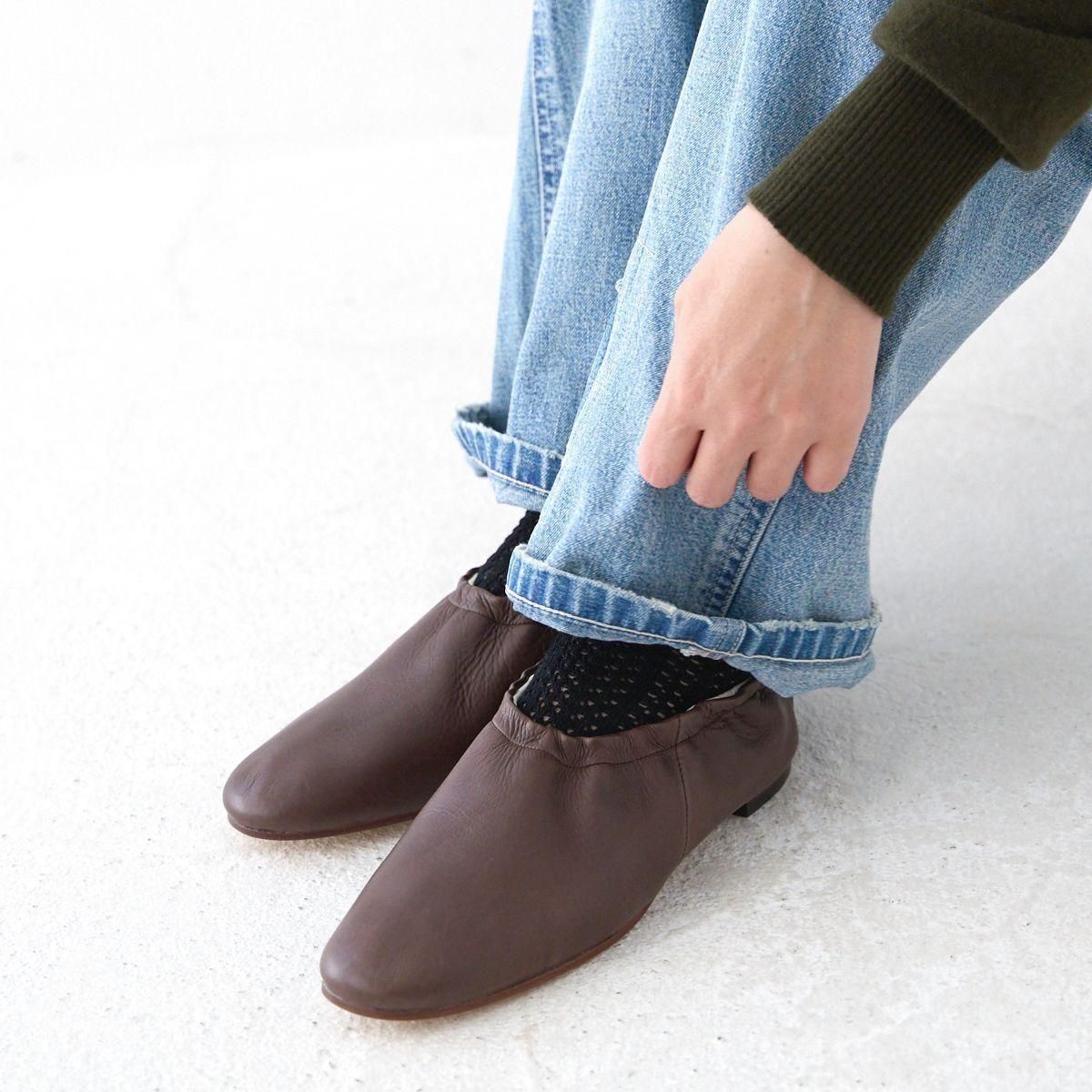 竹ヶ原敏之介氏がデザインする靴のブランド「BEAUTIFUL SHOES」(ビューティフル シューズ)。 バレエシューズをモチーフに口周りがゴムのスリッポン仕様にアレンジされたBEAUTIFUL SHOESの代表的なデザインの「BALLET SHOES」。 丸みのないすっきりとしたトゥで全体的に女性らしいフォルム。 しなやかなイタリアンレザーをソールに使用し反りがよく、低反発クッションをインソールに使用しているので快適な履き心地です。 どんなコーディネートにもしっくり馴染むシンプルなデザインです。 color: BROWN material:CALF size:23cm/23.5cm/24cm/24.5cm (ヒール:約1cm) model:23.5cm着用 (参考:163cm/ 足のサイズ 23.5cm/MIDDLECUT SIDEGORE・・・23.5着用) 取扱い店舗・・・dieci芝川ビル店 ※実店舗と在庫共有しております為、試着の際の履きじわ、アウトソールの擦れや若干の汚れがある場合がございます。ご理解いただきましてのご注文をお願いいたします。