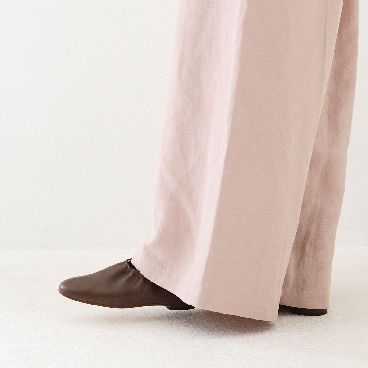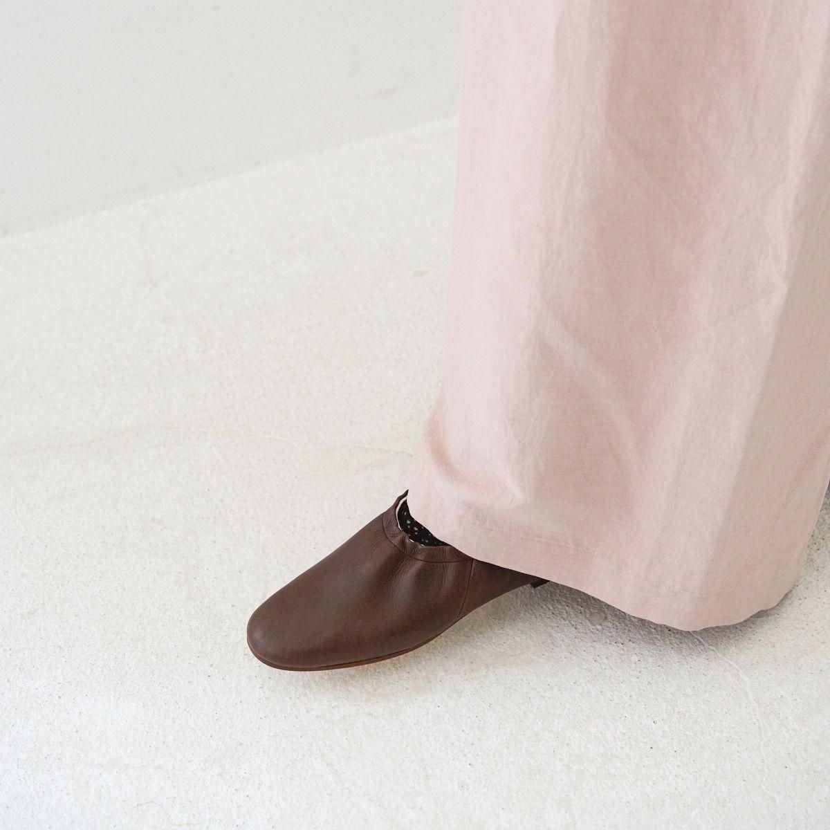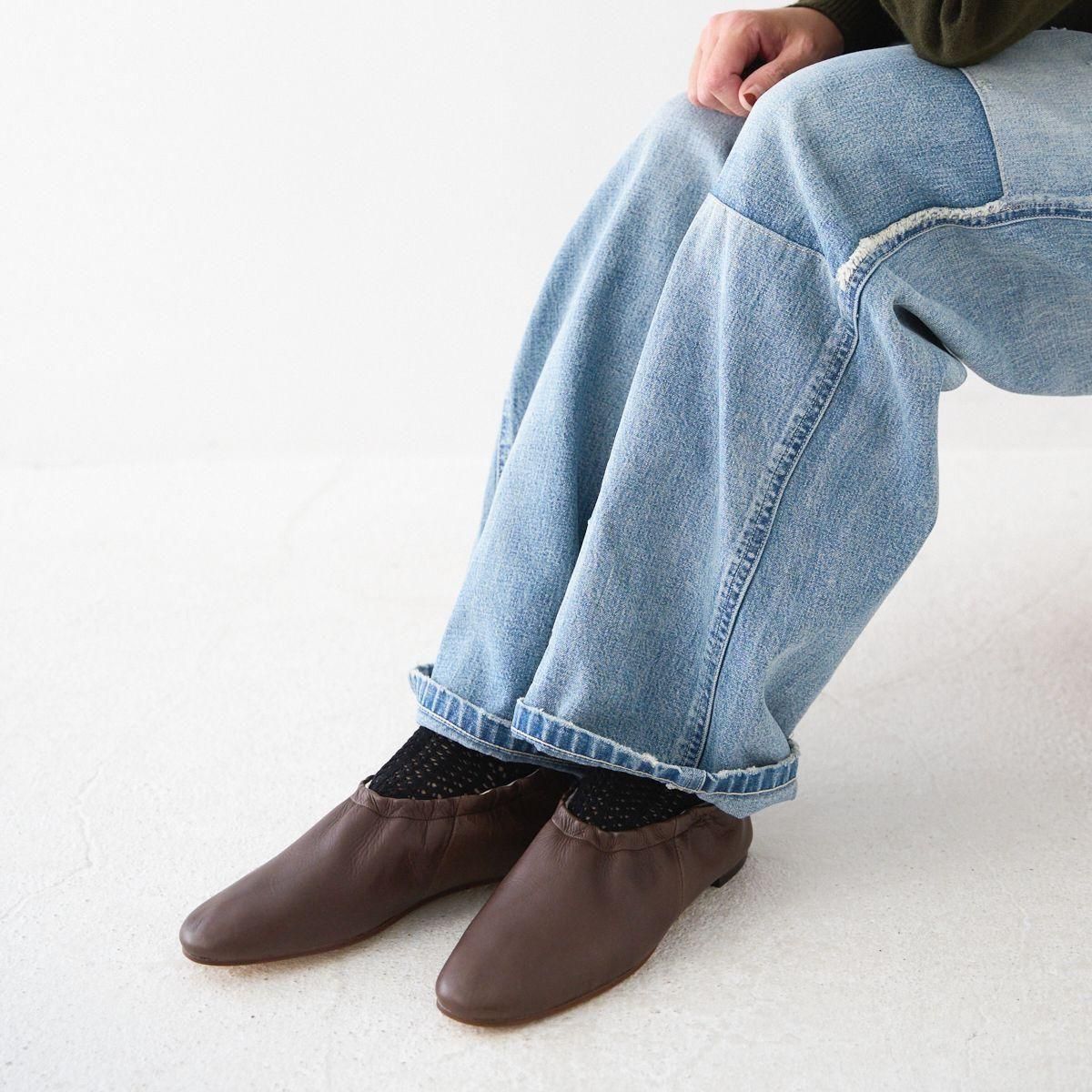 竹ヶ原敏之介氏がデザインする靴のブランド「BEAUTIFUL SHOES」(ビューティフル シューズ)。 バレエシューズをモチーフに口周りがゴムのスリッポン仕様にアレンジされたBEAUTIFUL SHOESの代表的なデザインの「BALLET SHOES」。 丸みのないすっきりとしたトゥで全体的に女性らしいフォルム。 しなやかなイタリアンレザーをソールに使用し反りがよく、低反発クッションをインソールに使用しているので快適な履き心地です。 どんなコーディネートにもしっくり馴染むシンプルなデザインです。 color: BROWN material:CALF size:23cm/23.5cm/24cm/24.5cm (ヒール:約1cm) model:23.5cm着用 (参考:163cm/ 足のサイズ 23.5cm/MIDDLECUT SIDEGORE・・・23.5着用) 取扱い店舗・・・dieci芝川ビル店 ※実店舗と在庫共有しております為、試着の際の履きじわ、アウトソールの擦れや若干の汚れがある場合がございます。ご理解いただきましてのご注文をお願いいたします。
