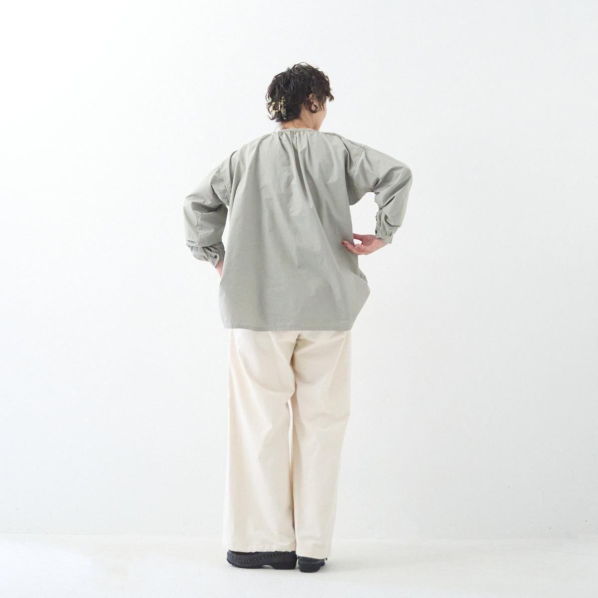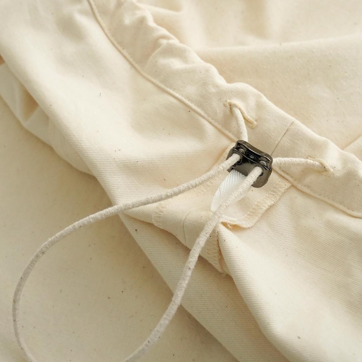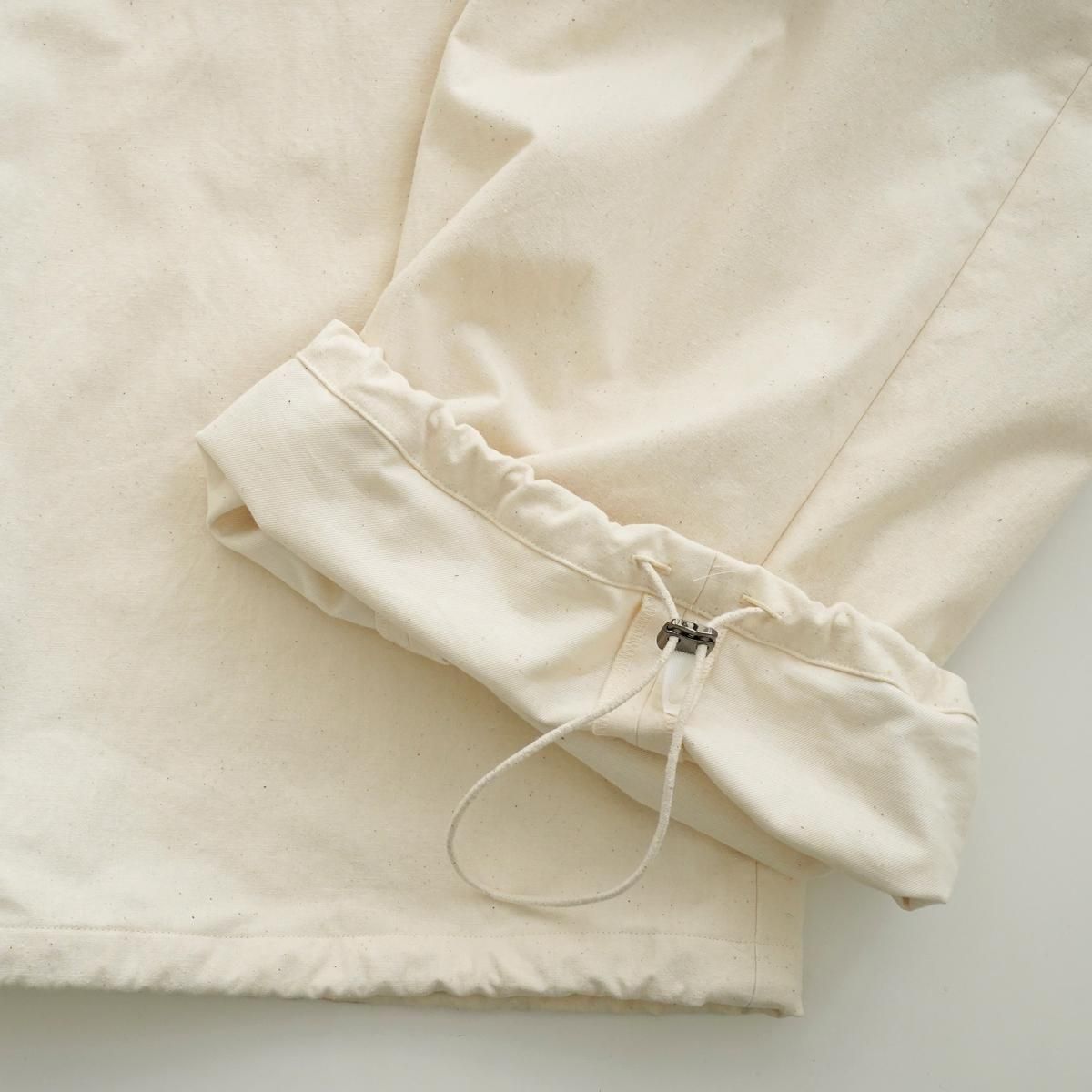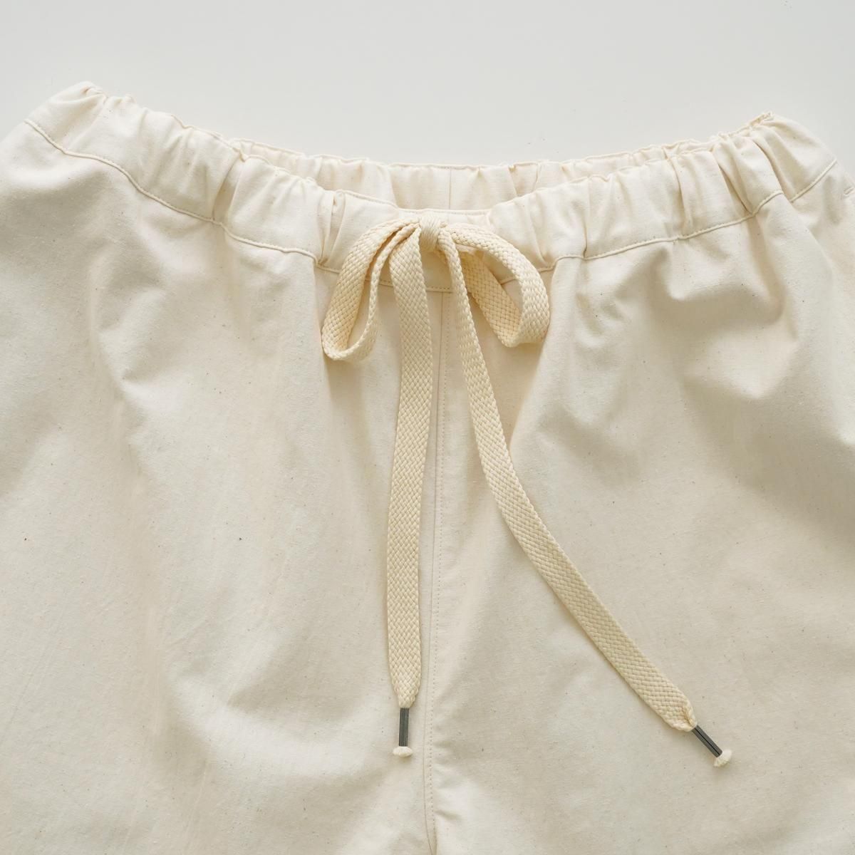 POLYPLOID定番のOVER PANTS A。 イギリス産のネップ感のあるナチュラルコットンを使用しています。 ドイツで生地の状態で水洗いをし、洗いざらしのシワをつけ、生地に動きをつけています。カジュアルにもモードにもスタイリングできるベーシックな1着。裾を絞って着用することも可能で、アクティブウェアのようなシルエットにパリッとした生地が掛け合わさったユニークなパンツです。 キャンバスのようなしっかりしたコットン地ですが、1枚仕立てですので冬場は是非ソックスやタイツなどと組み合わせてご着用ください。 日本製 25AW size : 1,2,3 1:ウエスト〜38cm 股上30cm 股下66.5cm わたり38.5cm 2:ウエスト〜41cm 股上31cm 股下68.5cm わたり40.5cm 3:ウエスト〜45cm 股上31.5cm 股下70.5cm わたり41.5cm color : OFF WHITE Material : COTTON 100% model:163cm(#2着用) 173cm(#3着用) 取り扱い店舗・・・dieci kyutaro店2F ------------------------------------------------------- ポリプロイド(POLYPLOID)は、2017年にドイツ・ベルリンにてイゾルデ・オーギュスト・リッチリー(Isolde Auguste Richly)により設立。2018-19年秋冬コレクションにてデビュー。ブランド名のポリプロイドは化学用語で、「多倍数体」を意味する。3種類の異なる素材と色で展開することで、プロダクトに奥行きや広がりをもたらす実験的アプローチを試みている。生産はドイツおよび日本で行っている。ヨーロッパのマテリアルはドイツで縫製され、日本のマテリアルは日本で作られる。