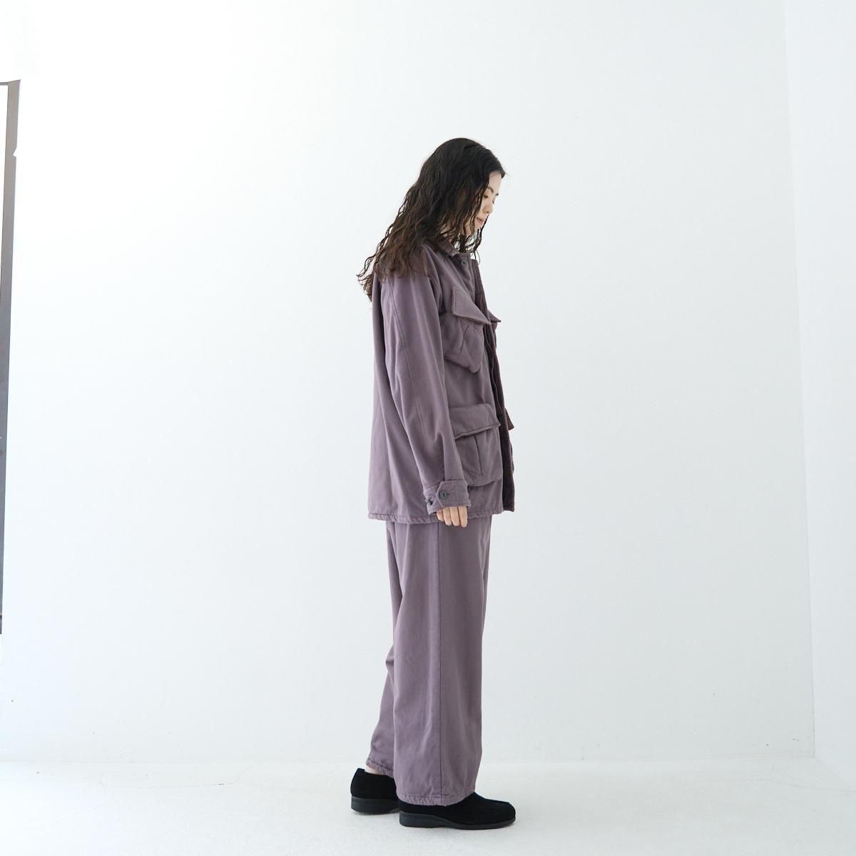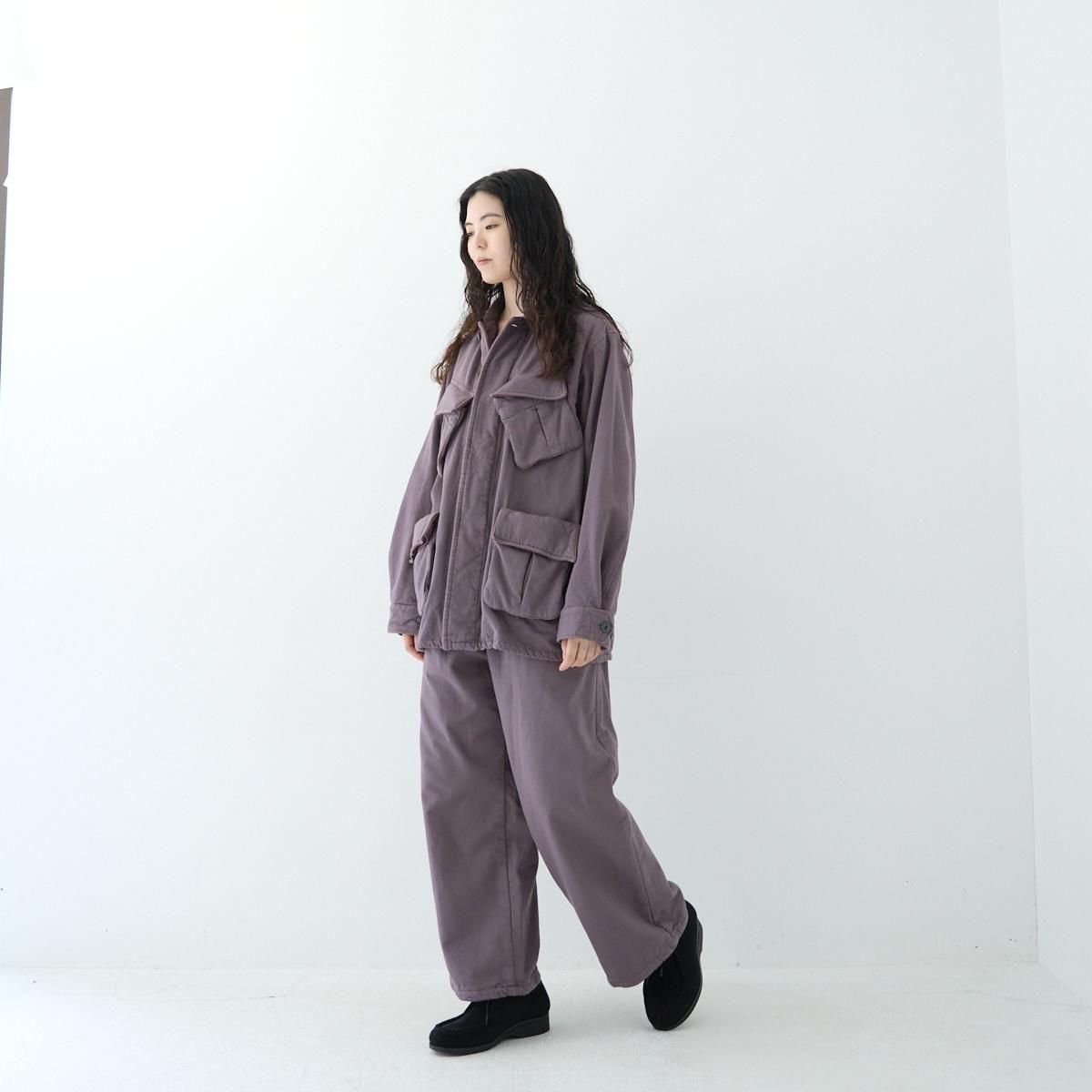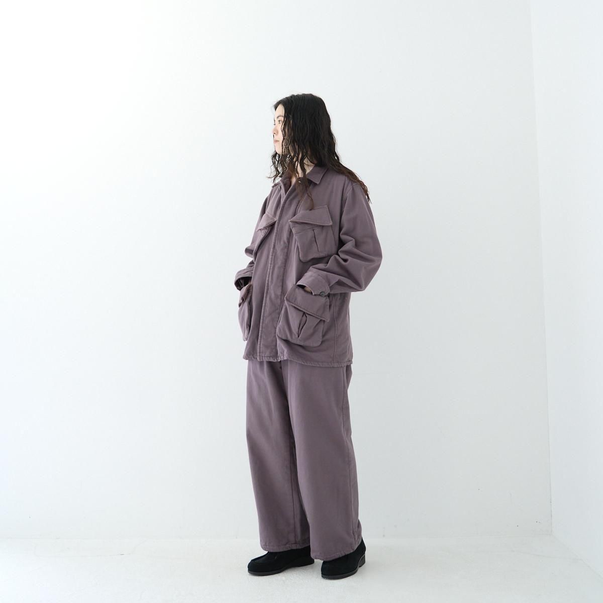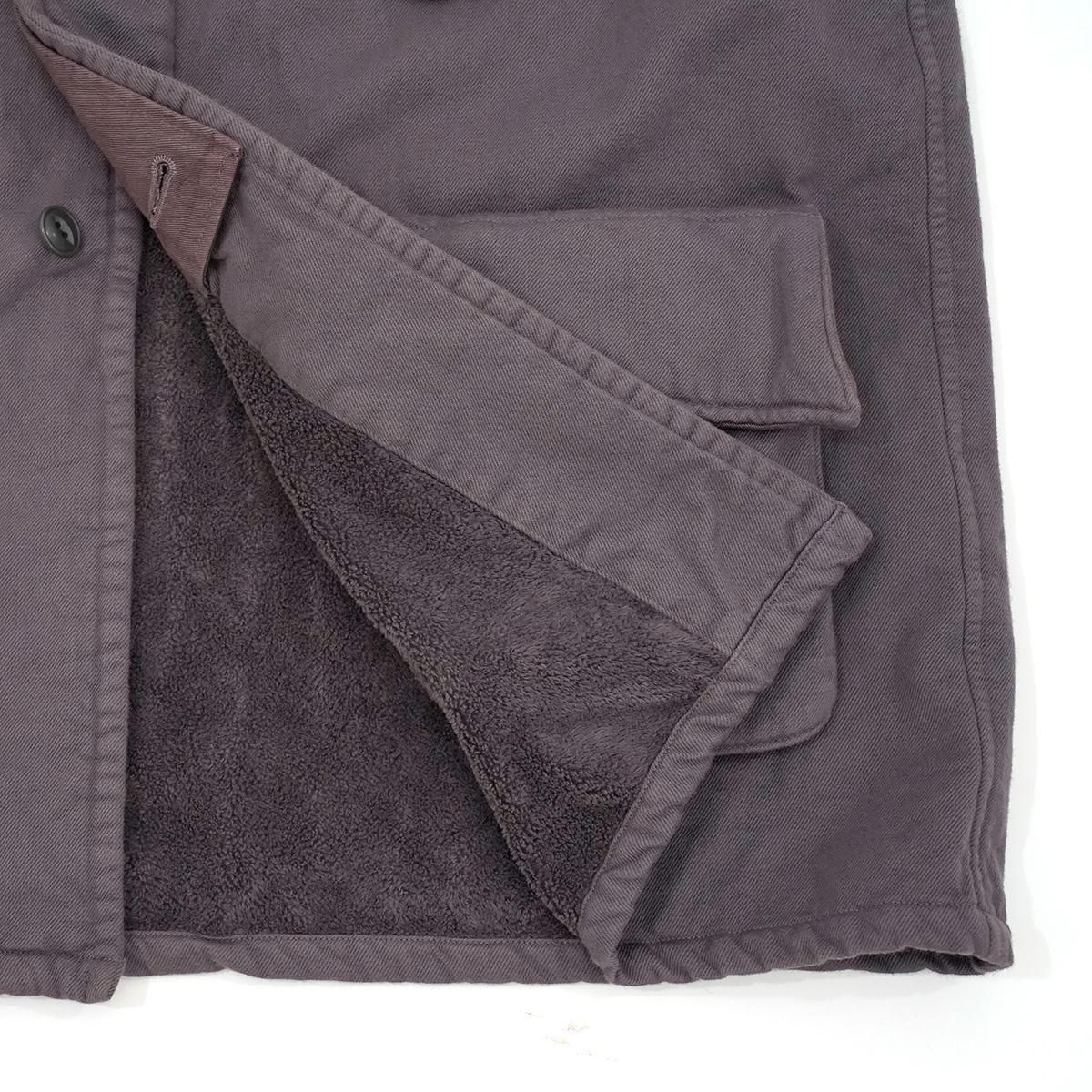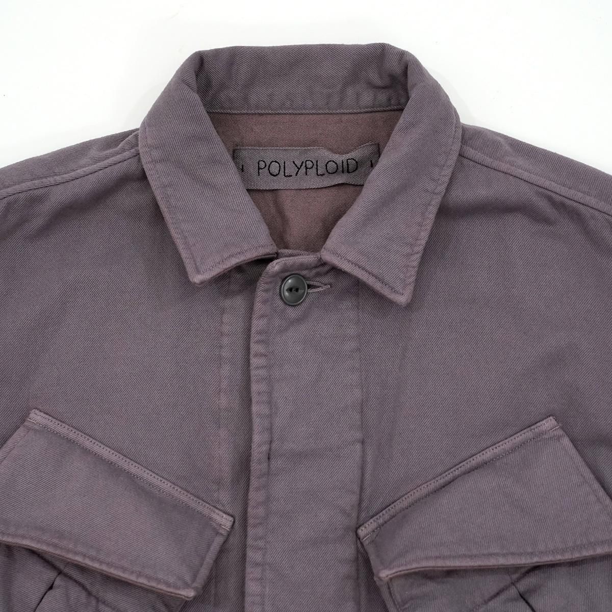 表はツイル織り、裏はボア調の起毛素材を組み合わせたダブルフェイス生地を使用したユーティリティジャケット。 ワークウェアやミリタリーウェアをルーツに持つユーティリティジャケットらしく、多機能ポケットや耐久性、防風性など実用性の高さが魅力です。 製品染めによる味わい深い風合いと、程よくゆとりを持たせたシルエットで、ラフさと品の良さを兼ね備えた一着に仕上がっています。 日本製 25AW size:3 着丈80cm, 身幅65cm, 肩幅51cm, 袖丈64.5cm color:BERRY STONE material:COTTON100% model: 173cm/168cm 取り扱い店舗・・・dieci kyutaro店2F ------------------------------------------------------- ポリプロイド(POLYPLOID)は、2017年にドイツ・ベルリンにてイゾルデ・オーギュスト・リッチリー(Isolde Auguste Richly)により設立。2018-19年秋冬コレクションにてデビュー。ブランド名のポリプロイドは化学用語で、「多倍数体」を意味する。3種類の異なる素材と色で展開することで、プロダクトに奥行きや広がりをもたらす実験的アプローチを試みている。生産はドイツおよび日本で行っている。ヨーロッパのマテリアルはドイツで縫製され、日本のマテリアルは日本で作られる。