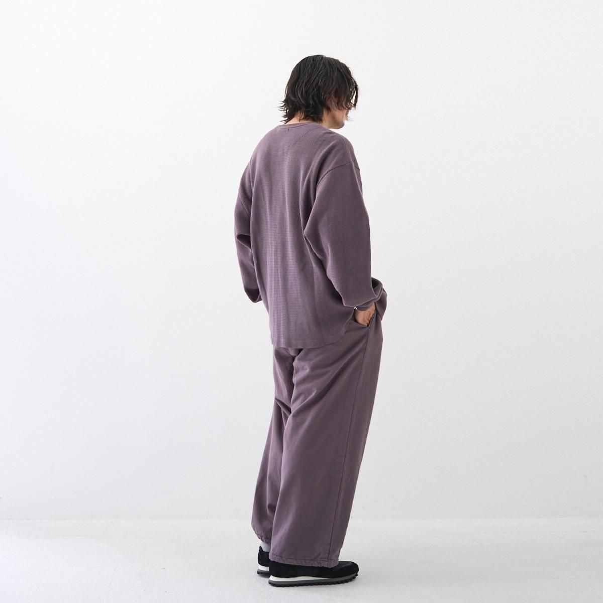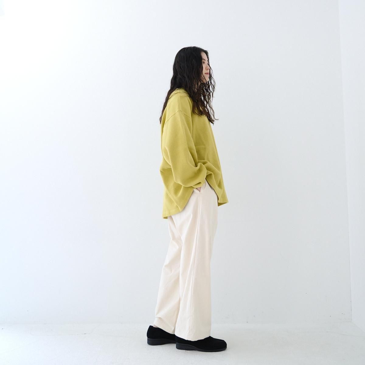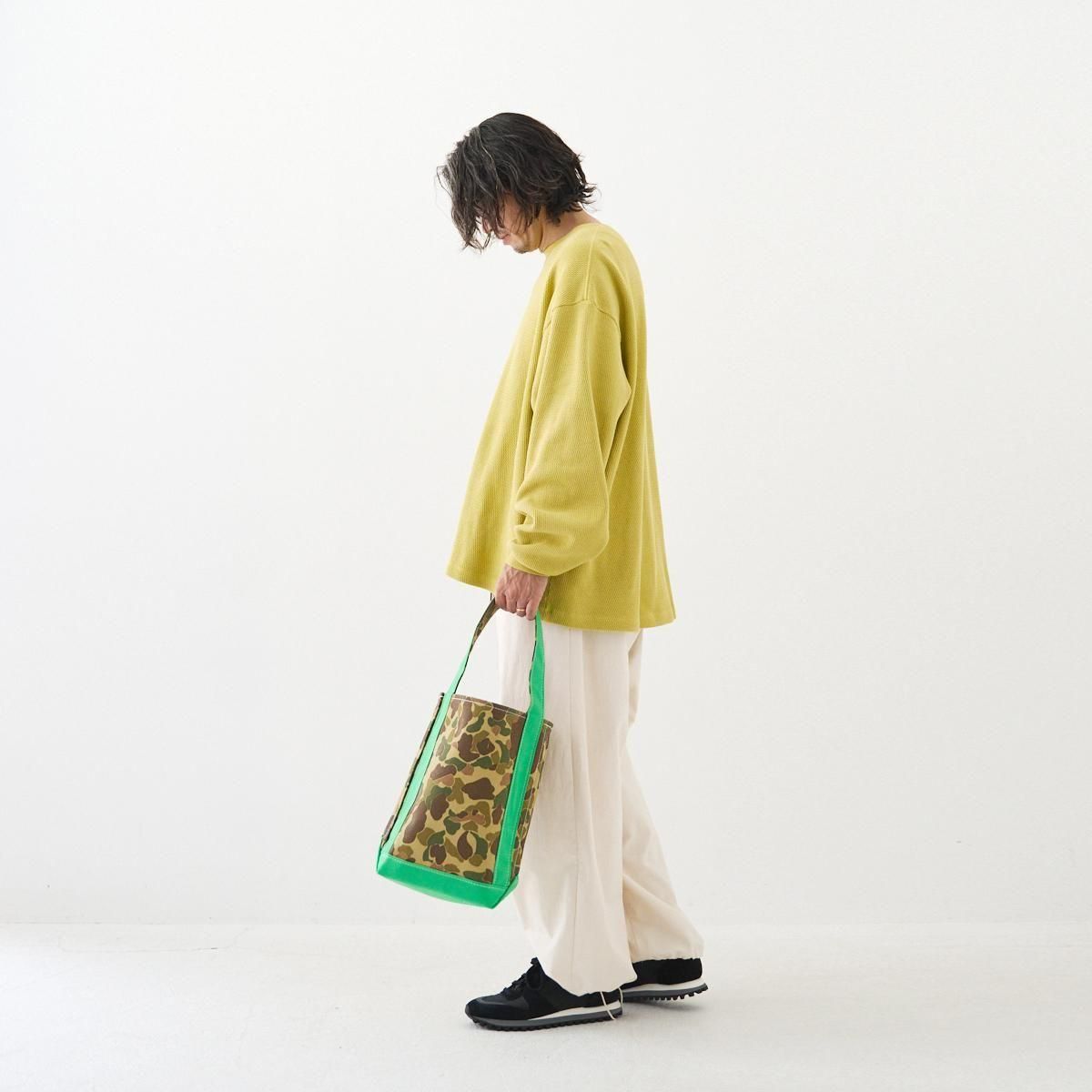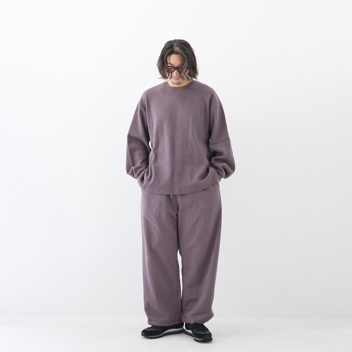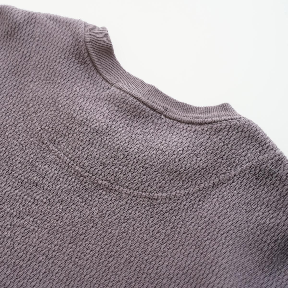 ヘビーウエイトのダブルフェイスサーマル生地を使用したロングスリーブTシャツです。 凹凸のある生地に程よい厚みがあるのでスウエット感覚で楽しんでいただけます。 全体的にゆったりとしたパターンですが、袖口はキュッと絞られ、裾も前後差があるので華奢な方や小柄な方でも着用しやすく、着る方の体格を選ばないカットソーです。 新色としてDUSK YELLOWとBERRY STONEが登場いたしました。 日本製 25AW size:1,3 size1: 着丈69cm,身幅64cm,肩幅54cm, 袖丈55.5cm size3: 着丈75cm,身幅70cm,肩幅58cm, 袖丈58.5cm color: DUSK YELLOW,BERRY STONE material:COTTON 100% model:168cm(size3着用) 173cm(size3着用) 取り扱い店舗・・・dieci kyutaro店2F ------------------------------------------------------- ポリプロイド(POLYPLOID)は、2017年にドイツ・ベルリンにてイゾルデ・オーギュスト・リッチリー(Isolde Auguste Richly)により設立。2018-19年秋冬コレクションにてデビュー。ブランド名のポリプロイドは化学用語で、「多倍数体」を意味する。3種類の異なる素材と色で展開することで、プロダクトに奥行きや広がりをもたらす実験的アプローチを試みている。生産はドイツおよび日本で行っている。ヨーロッパのマテリアルはドイツで縫製され、日本のマテリアルは日本で作られる。