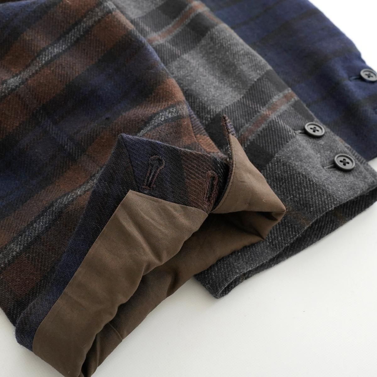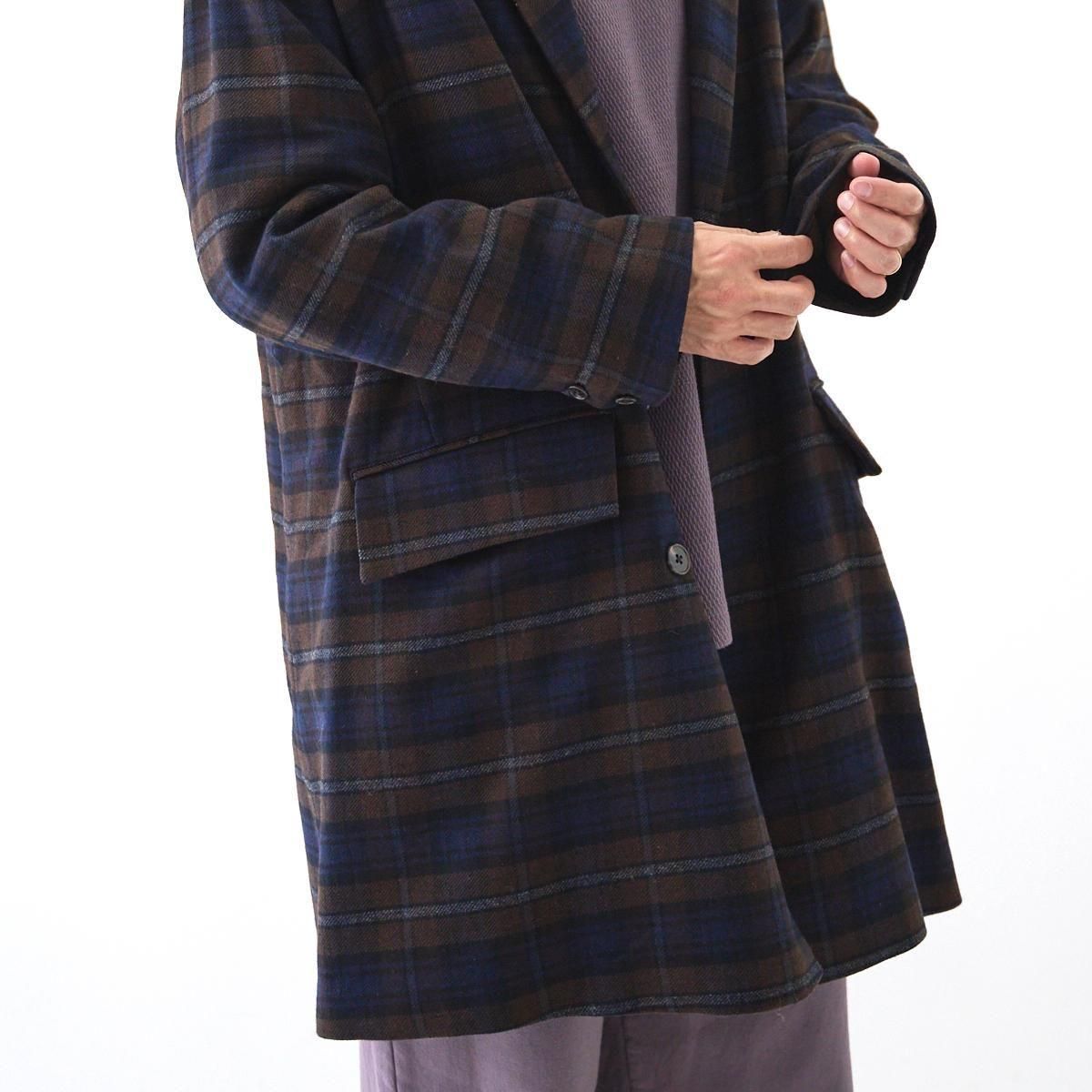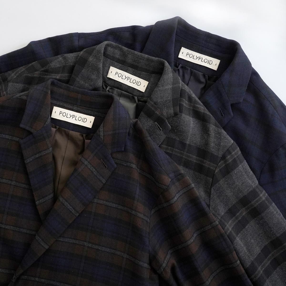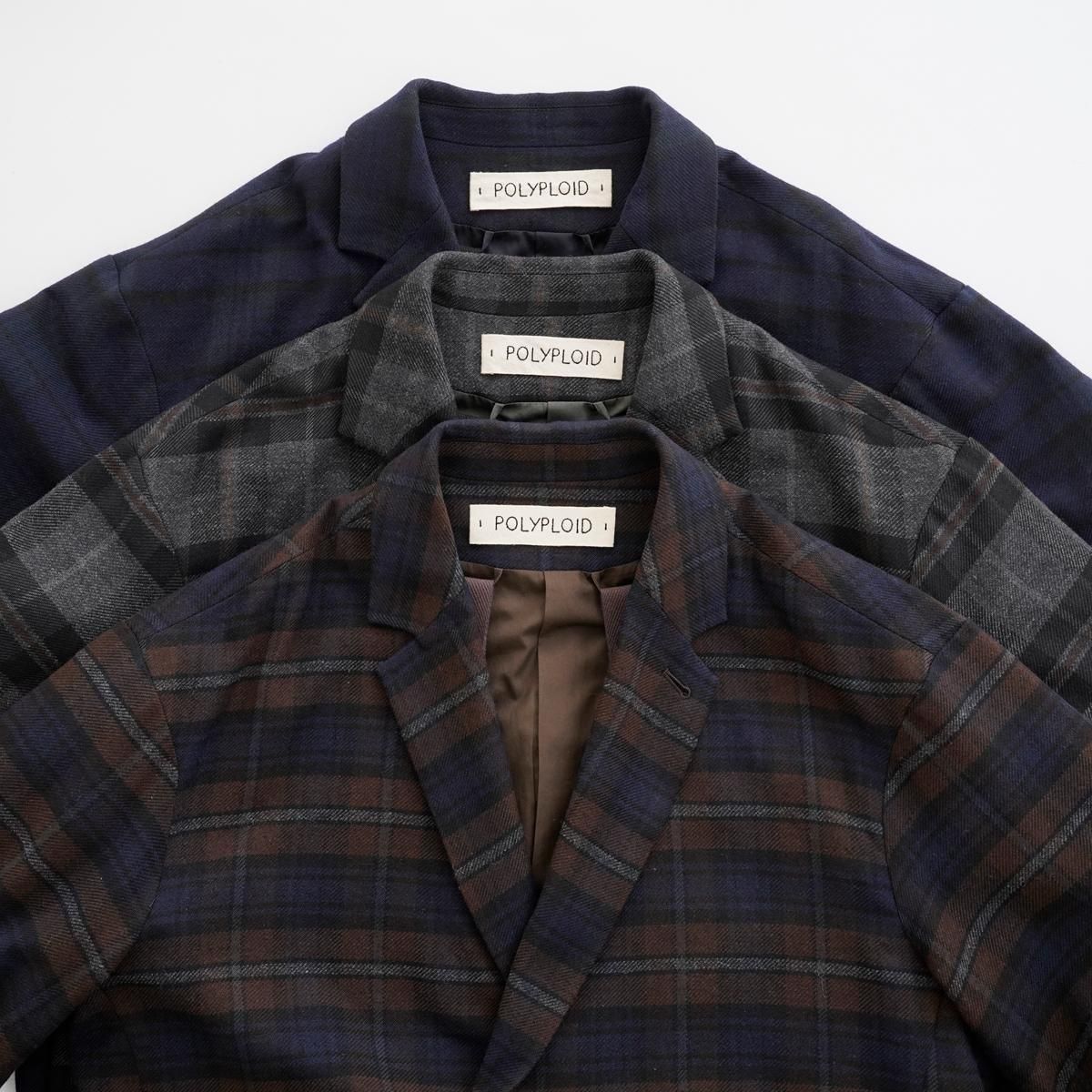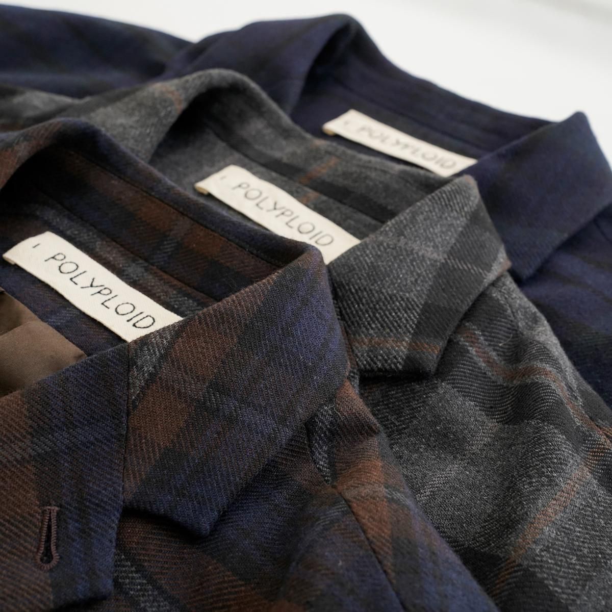 すっきりとしたストレートシルエットのロングコート。スリムなテーラードカラーがポイントです。カジュアルにもモードにもスタイリングできるベーシックな1着。 コットンxウールのチェック柄のツイル生地を使用しています。 size:3 総丈100cm,身幅68cm,肩幅60cm,袖60cm color :NAVY CHECK / BROWN CHECK / GRAY CHECK Material: COTTON 45%, WOOL 35%, POLYESTER 20%, (LINING)COTTON 100% model: 173cm 取り扱い店舗・・・dieci kyutaro店2F ------------------------------------------------------- ポリプロイド(POLYPLOID)は、2017年にドイツ・ベルリンにてイゾルデ・オーギュスト・リッチリー(Isolde Auguste Richly)により設立。2018-19年秋冬コレクションにてデビュー。ブランド名のポリプロイドは化学用語で、「多倍数体」を意味する。3種類の異なる素材と色で展開することで、プロダクトに奥行きや広がりをもたらす実験的アプローチを試みている。生産はドイツおよび日本で行っている。ヨーロッパのマテリアルはドイツで縫製され、日本のマテリアルは日本で作られる。