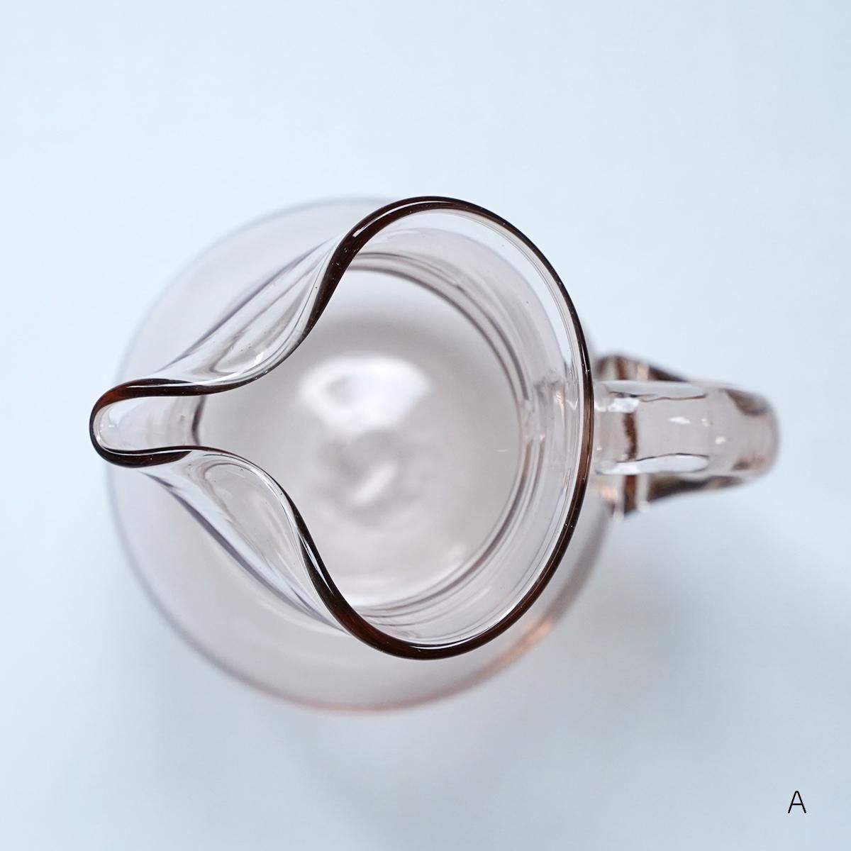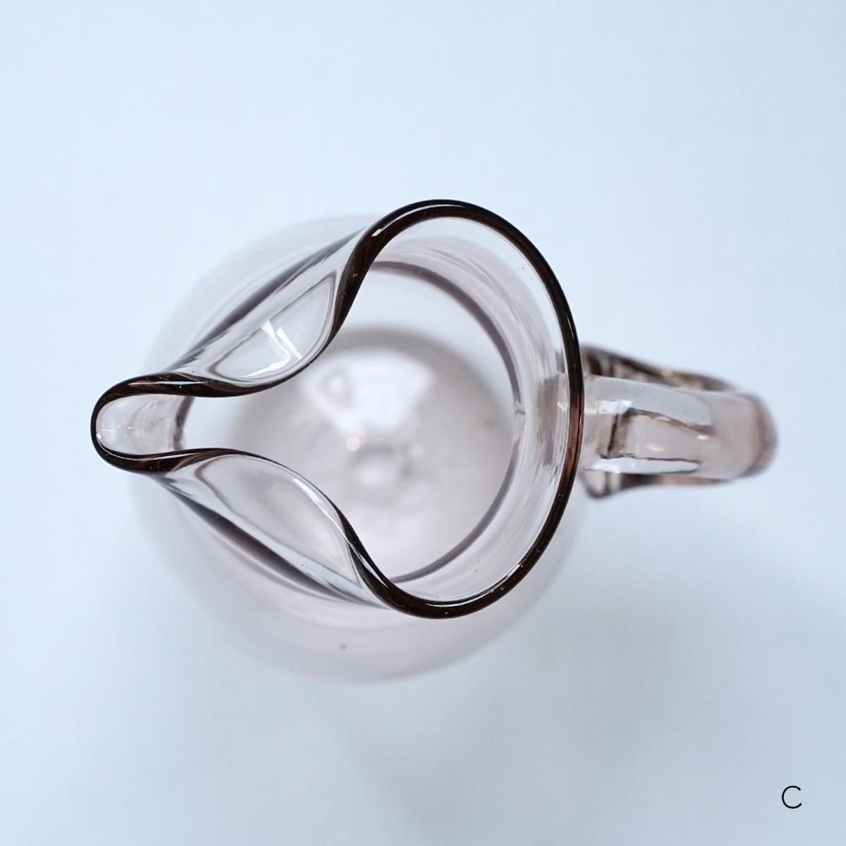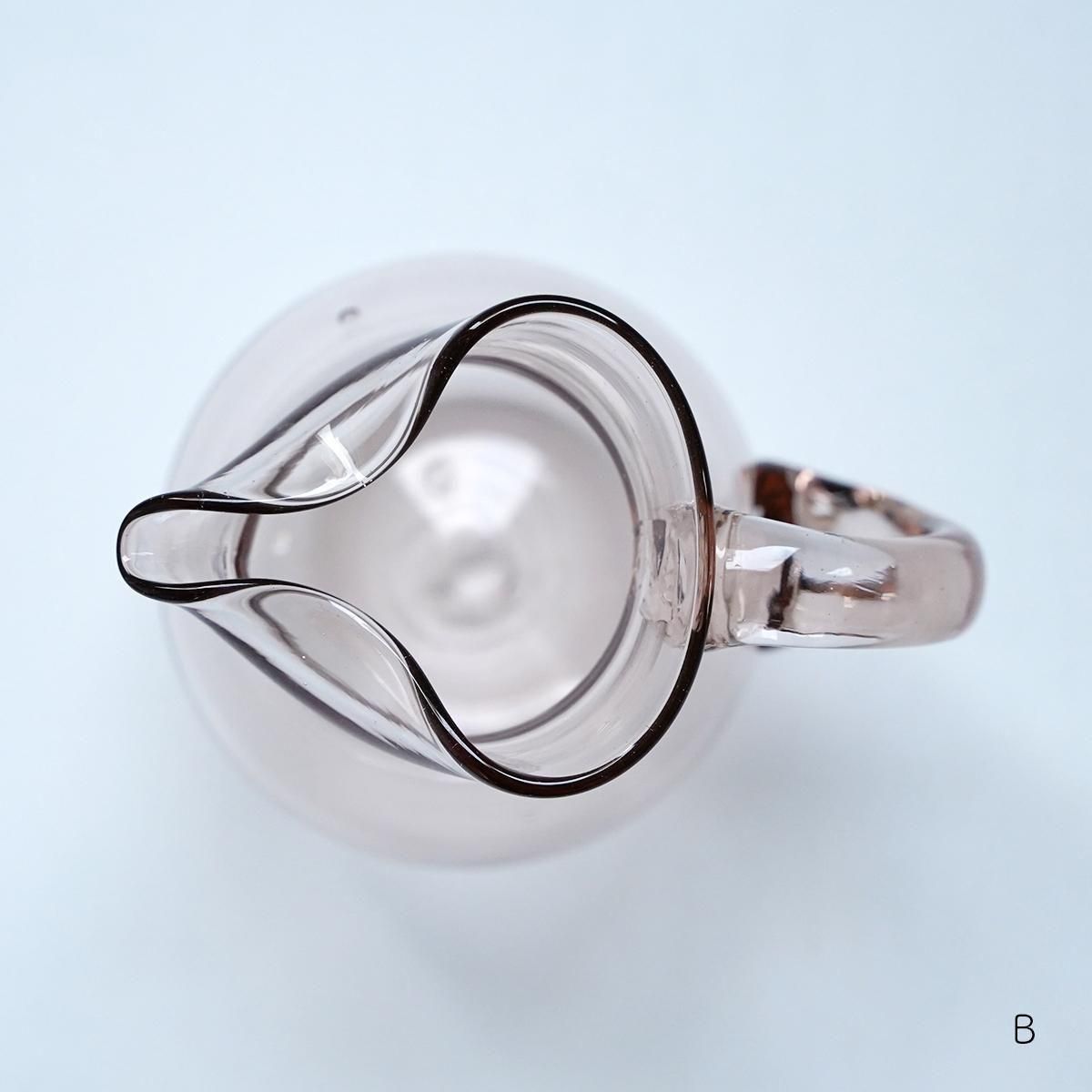 岡山・倉敷でガラス作りをされている石川硝子工藝舎、石川昌浩さんの作品です。 石川昌浩さんは倉敷にてガラス工芸を学ばれた後「石川硝子工藝舎」を立ち上げ、日々の生活にとけ込む日用の器を作り続けていらっしゃいます。 暮らしのそばで静かに光をたたえる石川昌浩さんの硝子。 硝子がもつ神聖さを感じて欲しいと願い生まれた今回の展示【石川硝子工藝舎展 二〇二五】では、祈りの対象物のように日々に寄り添う作品を制作していただきました。 こちらは会期の季節でもある「秋」に合わせて制作いただいた葡萄色の硝子シリーズのピッチャーです。 葡萄は、秋の季語であるととともに、豊穣や子孫繁栄をもたらす「富の象徴」として、実をつけ伸びていく様子から「縁を繋ぐ象徴」として、私たちの生活への祈りの意味も込められています。 お茶やジュースなどの飲み物はもちろん、草木のお水やりやお花を生ける花器としてなど、暮らしの様々なシーンに寄り添います。 ぽってりとした曲線を描いたフォルムと、美しい葡萄色が落ち着いたインテリアを演出します。 ※サイズ・カラーには個体差がございます。 ※裏面の突起は手吹きガラスの製造工程で出来る物で、傷ではございません。作品の風合としてお楽しみ頂けますと幸いです。 ※気泡などが混じる場合がございます。製造過程で出来るものですので、作品の風合としてお楽しみくださいませ。 size: (A)約 Φ10cm(取手含む), H12cm、 (B)約 Φ11cm(取手含む), H13cm、 (C)約 Φ10.5cm(取手含む), H13.5cm お取り扱い店舗・・・dieci kyutaro店 1F
