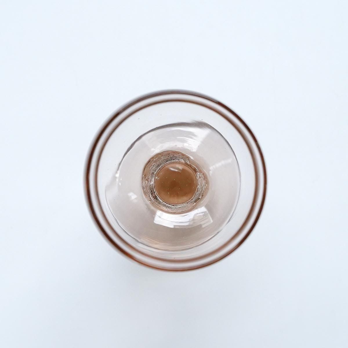 岡山・倉敷でガラス作りをされている石川硝子工藝舎、石川昌浩さんの作品です。 石川昌浩さんは倉敷にてガラス工芸を学ばれた後「石川硝子工藝舎」を立ち上げ、日々の生活にとけ込む日用の器を作り続けていらっしゃいます。 暮らしのそばで静かに光をたたえる石川昌浩さんの硝子。 硝子がもつ神聖さを感じて欲しいと願い生まれた今回の展示【石川硝子工藝舎展 二〇二五】では、祈りの対象物のように日々に寄り添う作品を制作していただきました。 こちらは会期の季節でもある「秋」に合わせて制作いただいた葡萄色の硝子シリーズのワイングラスです。 葡萄は、秋の季語であるととともに、豊穣や子孫繁栄をもたらす「富の象徴」として、実をつけ伸びていく様子から「縁を繋ぐ象徴」として、私たちの生活への祈りの意味も込められています。 ぽってりとしたボウルのフォルムに、丸い持ち手が特徴的なワイングラスです。 柔らかい空気感を纏いながらも、一般的なワイングラスより重厚感があるため、普段使いもしやすい一点です。 ワインに限らず、さまざまなドリンクのグラスとしてお使いいただけます。 ※サイズ・カラーには個体差がございます。 ※裏面の突起は手吹きガラスの製造工程で出来る物で、傷ではございません。作品の風合としてお楽しみ頂けますと幸いです。 ※気泡などが混じる場合がございます。製造過程で出来るものですので、作品の風合としてお楽しみくださいませ。 size:約 Φ6.5cm, H11cm、 お取り扱い店舗・・・dieci kyutaro店 1F
