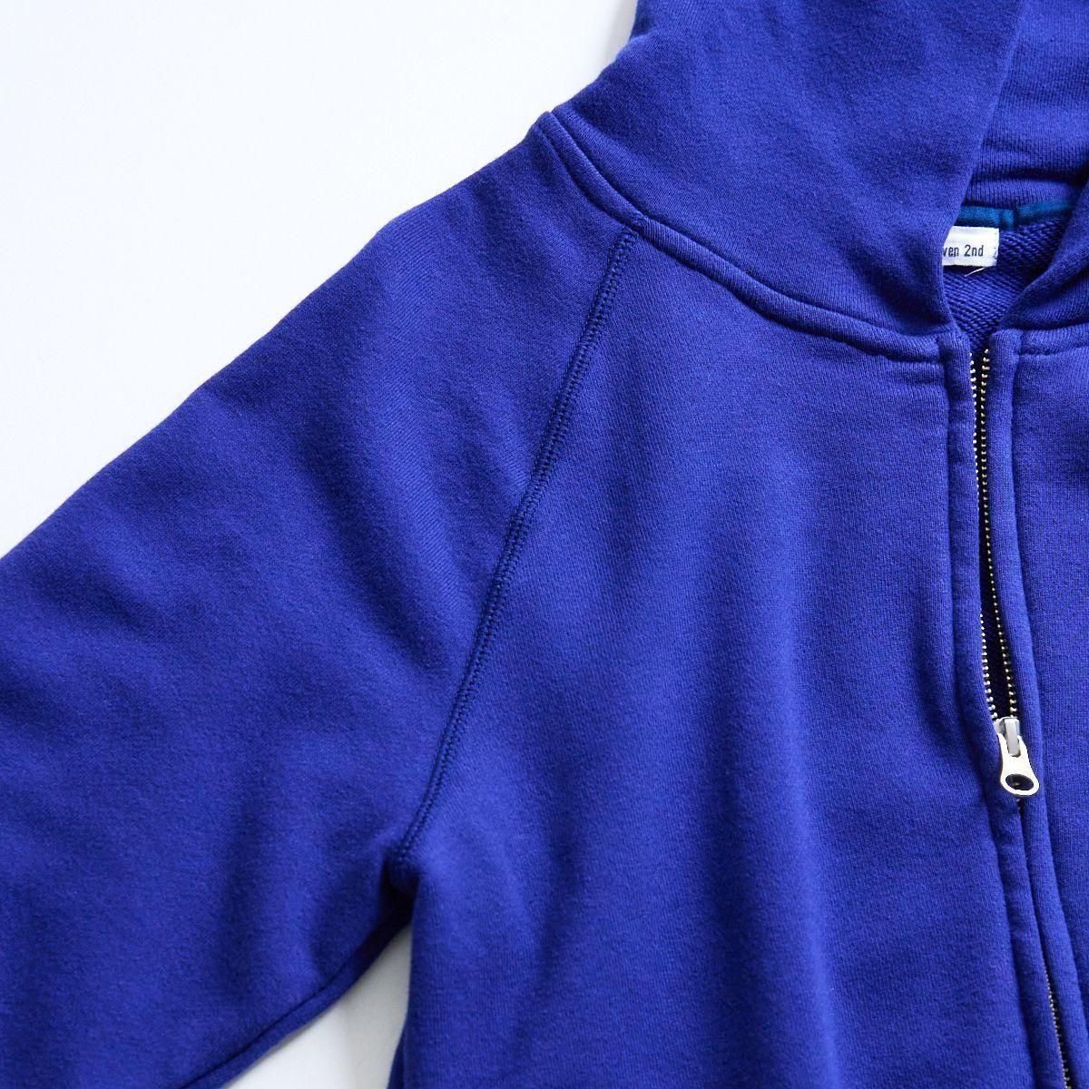 eleven 2ndは橋本靖代さんによる暮らしを意識したニットプロダクトです。20AWより上質なニットウエアやストールを展開しています。 こちらは膨らみのある綿を使用し作られたとても柔らかく快適な肌ざわりのジップパーカーです。シンプルでベーシックだからこそ、着丈や身幅、生地の厚み等をこだわって作られている1着です。 裏地は細いループの程よい厚みで着用期間も長く、ダブルジップなので着方の幅も広がります。 新色のDk.blueはアウターの中から覗いても映える色です。 size:M(one size) 身幅47cm 着丈58cm 裄丈77.5cm color: Dk.blue material: Cotton100% ※素材の特性上、洗濯によりねじれ(斜行)が見られる事があります。 濃い色物は衣料の重ね着の際、摩擦や雨で濡れた状態で移染する恐れがあります。ご注意ください。 取扱い店舗…dieci芝川ビル店