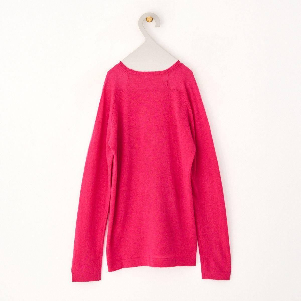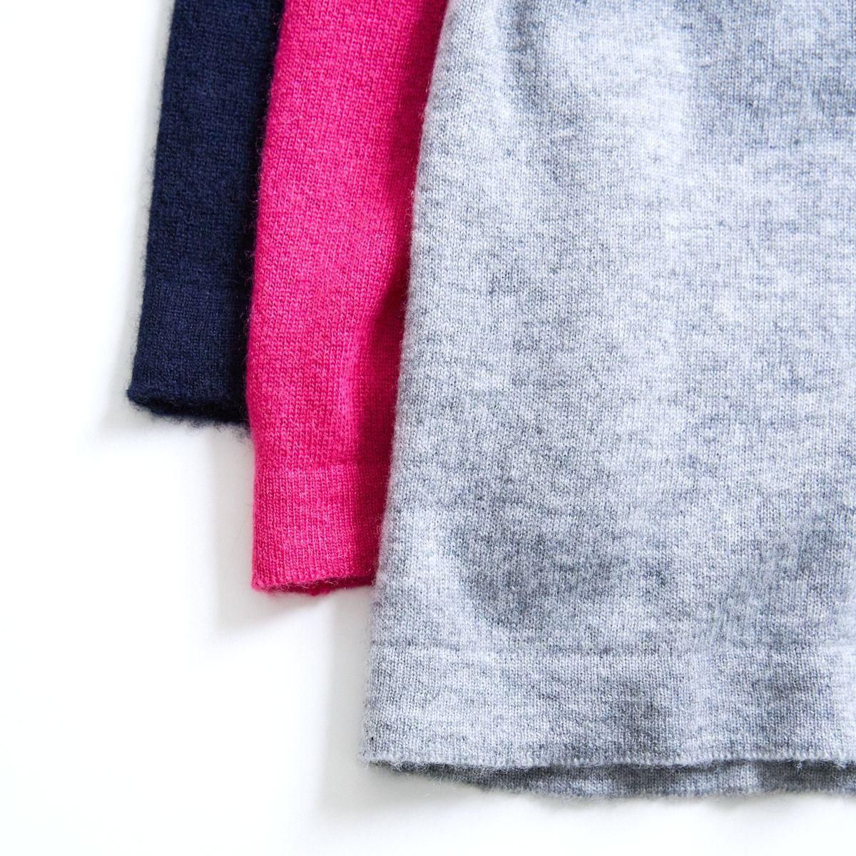 eleven 2ndは橋本靖代さんによる暮らしを意識したニットプロダクトです。20AWより上質なニットウエアやストールを展開しています。 こちらは細いファインカシミヤ細糸を使いふっくら編み上げられたラウンドネックのニットです。 とても軽く、ふんわりと空気を含んだようなソフトな肌触りは素肌に着てもとても気持ちが良いです。厚みのないシンプルな上質ニットは1枚あると活用が効きます。 25AW size:M(one size) 身幅42cm 肩幅33.5cm 着丈57.5cm 袖丈60cm 参考寸法(平置き) ニットの為多少の差異がございます。 color:Magenta, Sports Grey, Dk.Navy material: Cashmere100% 取扱い店舗…dieci芝川ビル店 size_chart