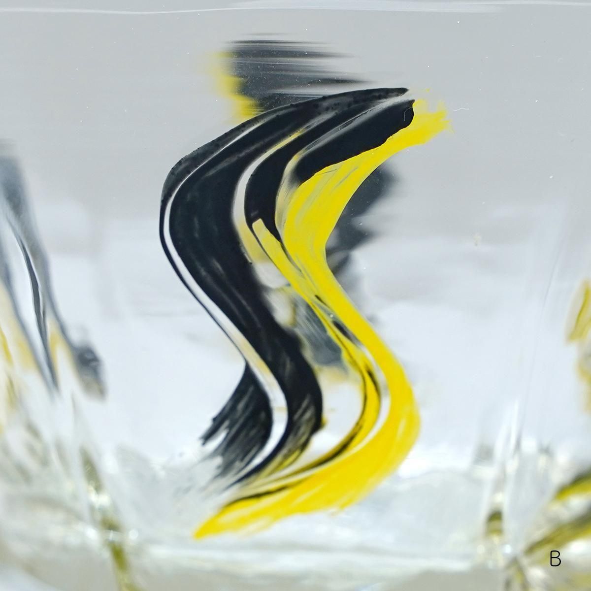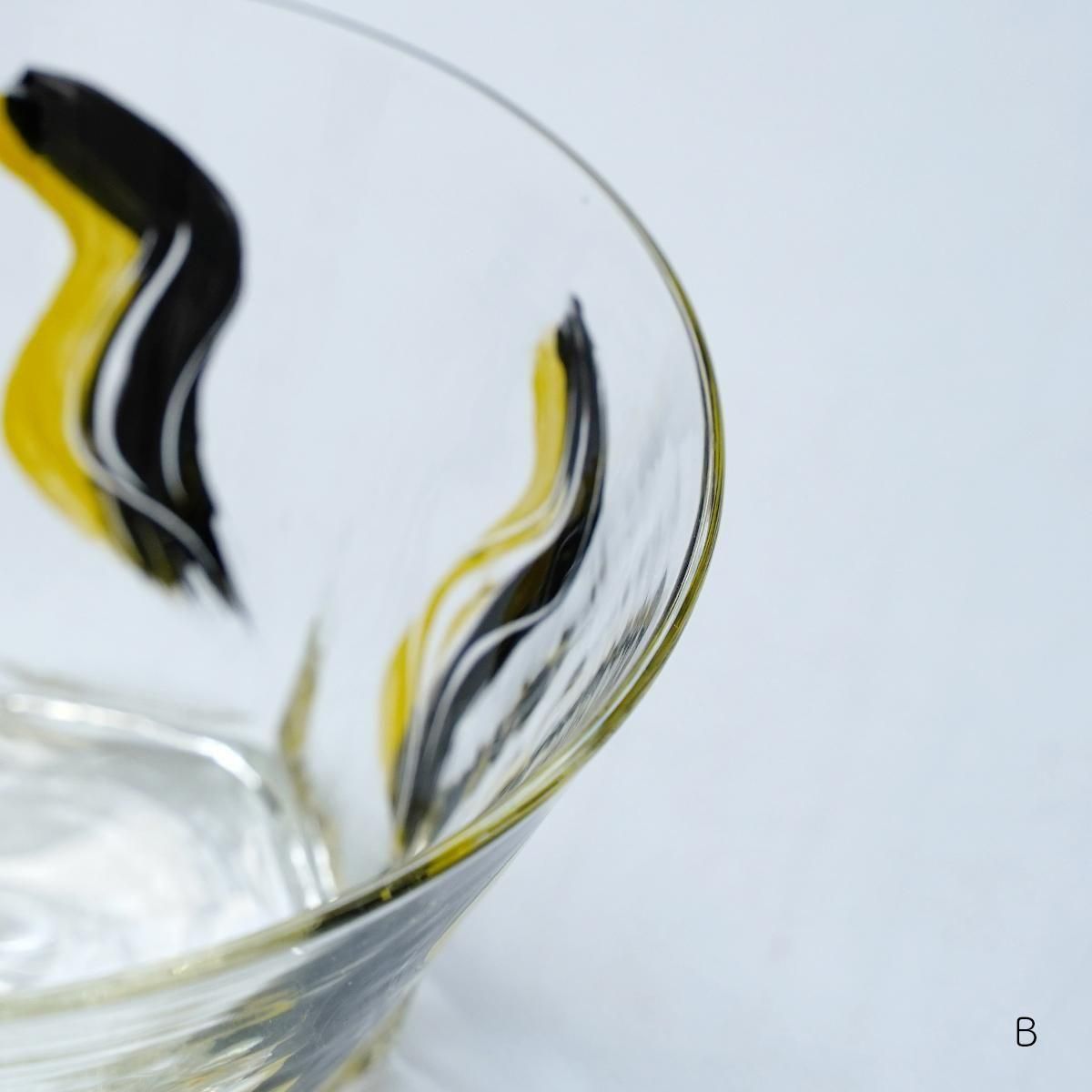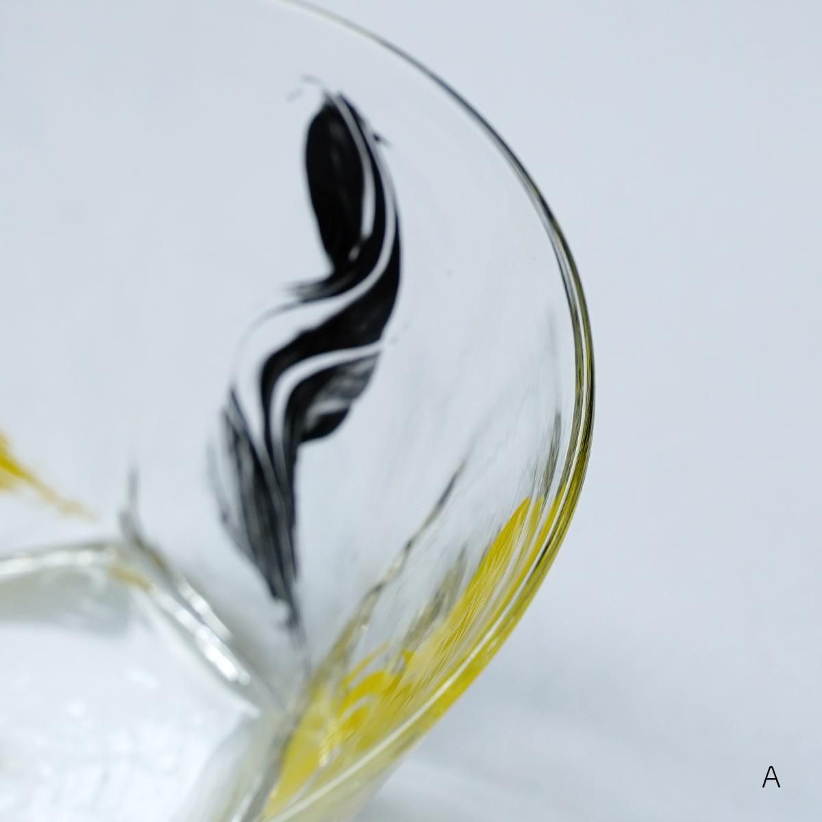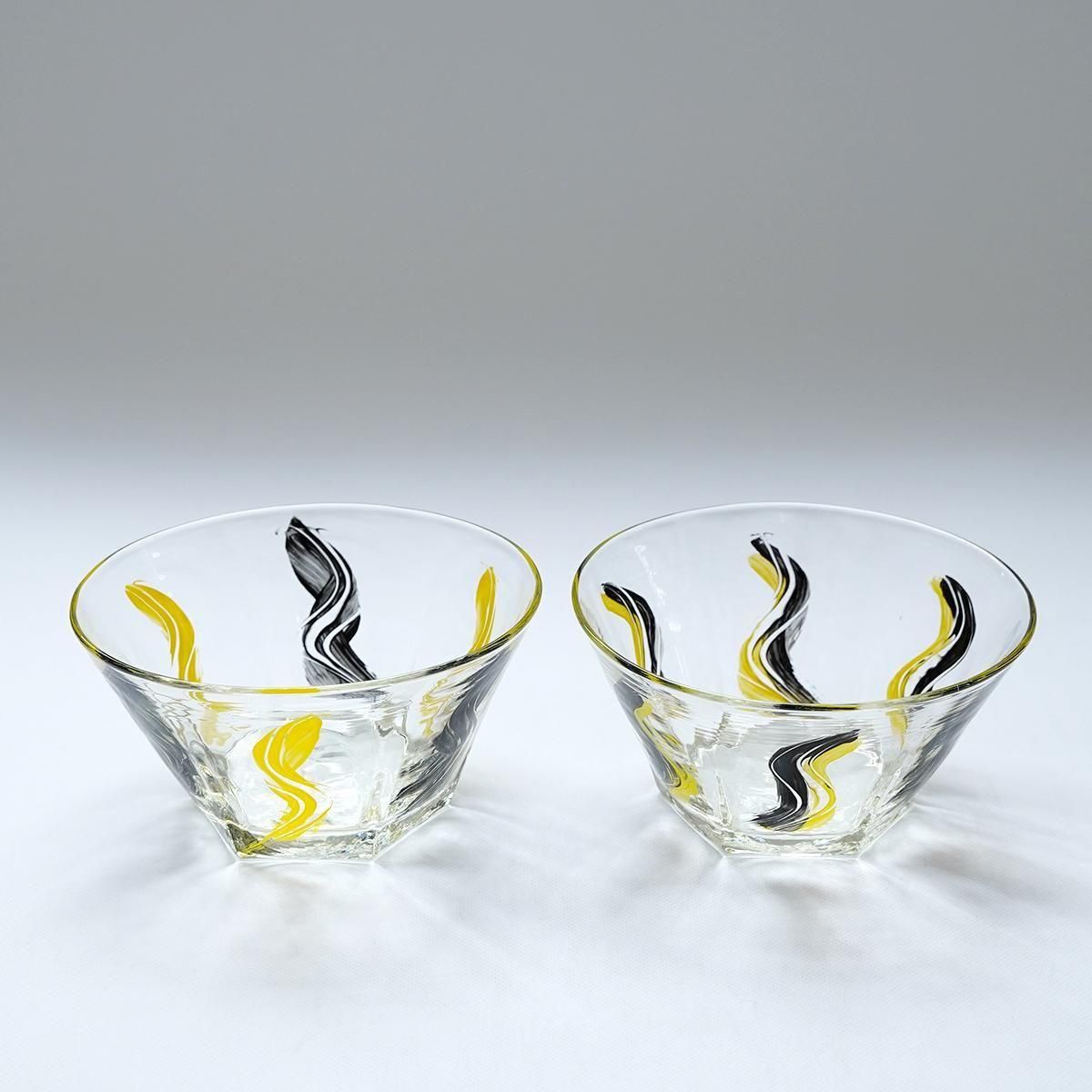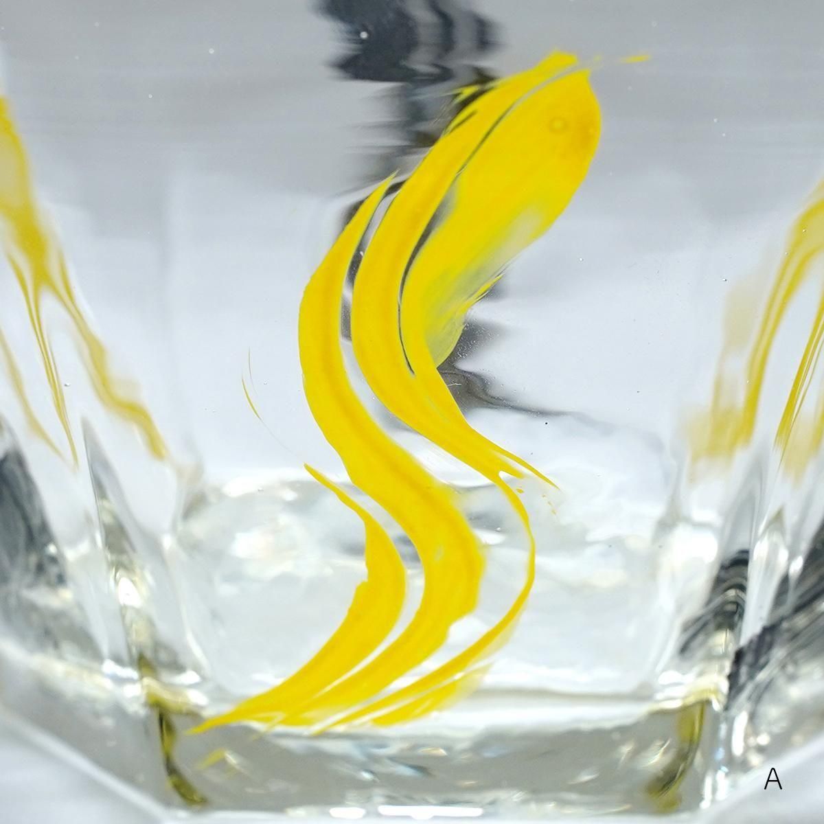 岡山・倉敷でガラス作りをされている石川硝子工藝舎、石川昌浩さんの作品です。 石川昌浩さんは倉敷にてガラス工芸を学ばれた後「石川硝子工藝舎」を立ち上げ、日々の生活にとけ込む日用の器を作り続けていらっしゃいます。 暮らしのそばで静かに光をたたえる石川昌浩さんの硝子。 硝子がもつ神聖さを感じて欲しいと願い生まれた今回の展示【石川硝子工藝舎展 二〇二五】では、祈りの対象物のように日々に寄り添う作品を制作していただきました。 こちらは石川さんの硝子に、熊本県・ふもと窯の井上尚之さんが絵付けをしたコラボシリーズの面取鉢(中)です。 普段はスリップウェアの器を製作されている井上尚之さん。 今回は硝子に黒、白、黄の線で井上さんらしい伸びやかな装飾を施していただきました。 底の六角形から縁に向かってゆるやかに丸くなったシンプルな鉢。 硝子特有のゆらぎが感じられ、シャープな形でありながら、柔らかな印象ももっています。 サラダなどの取り皿として、ヨーグルトやアイスなどを盛り付けるお皿としてもおすすめです。 ※サイズ・カラーには個体差がございます。 ※裏面の突起は手吹きガラスの製造工程で出来る物で、傷ではございません。作品の風合としてお楽しみ頂けますと幸いです。 ※気泡などが混じる場合がございます。製造過程で出来るものですので、作品の風合としてお楽しみくださいませ。 size:約 Φ12.5cm, H6.5cm お取り扱い店舗・・・dieci kyutaro店 1F