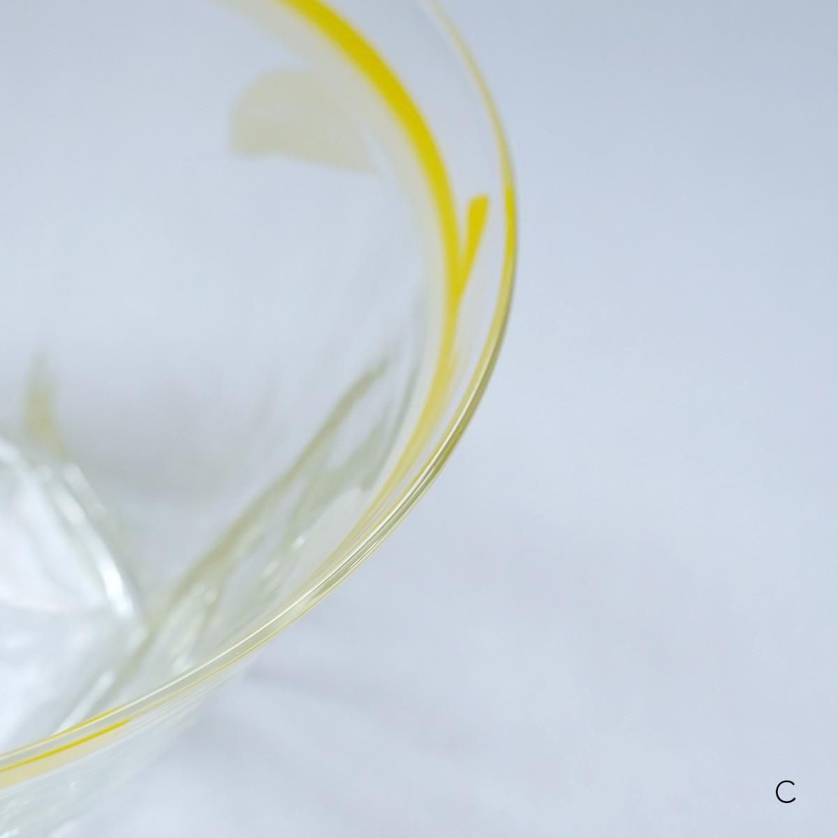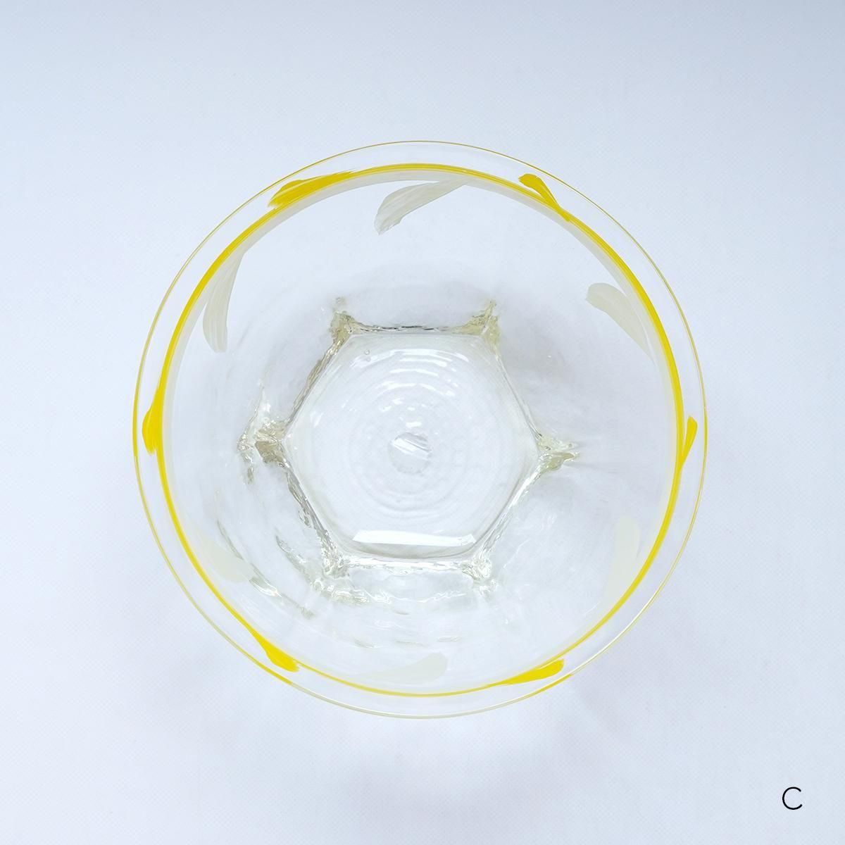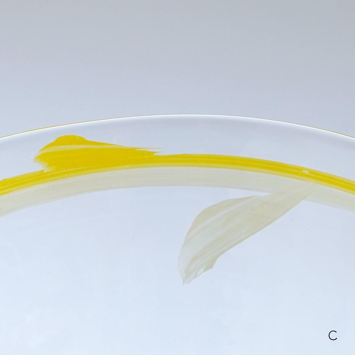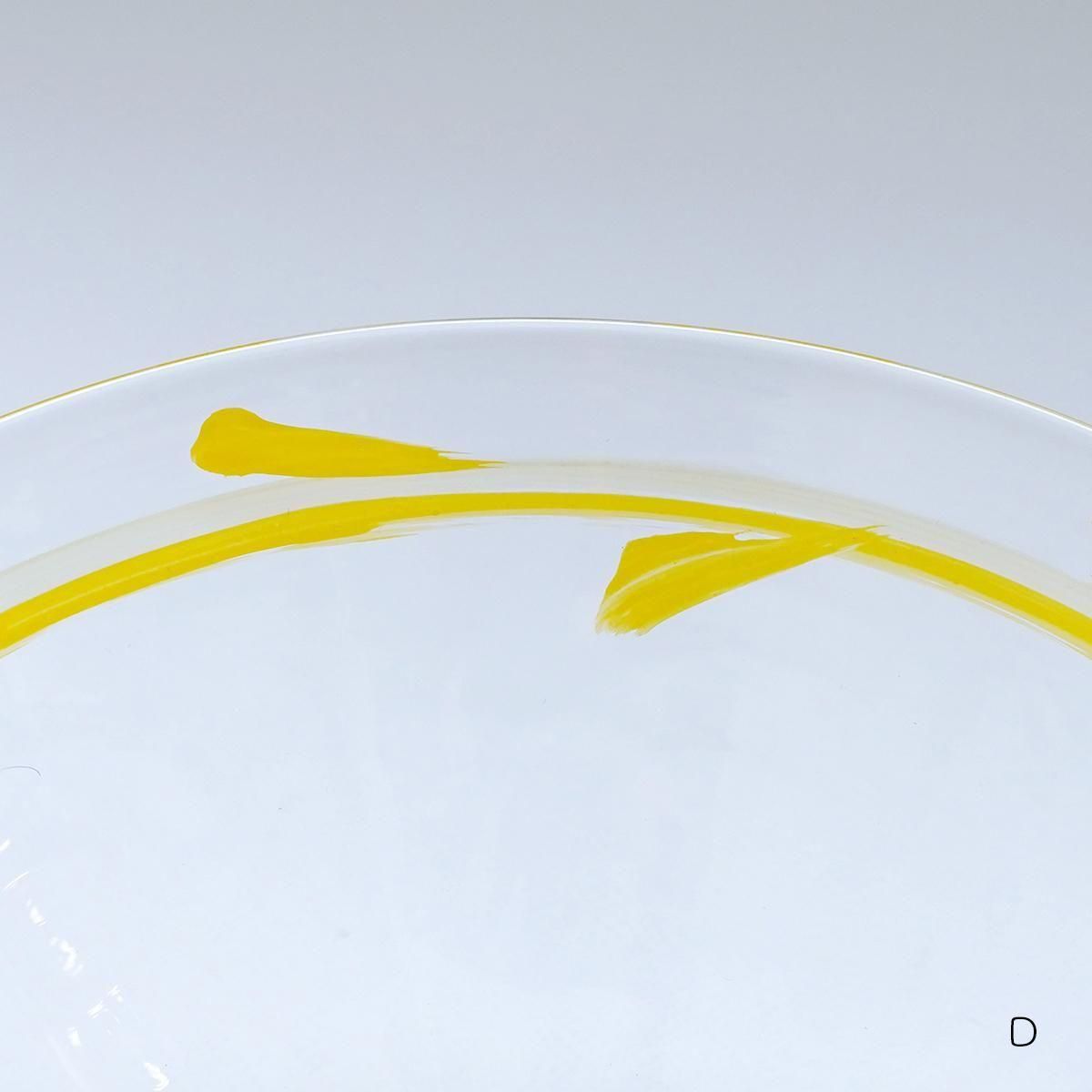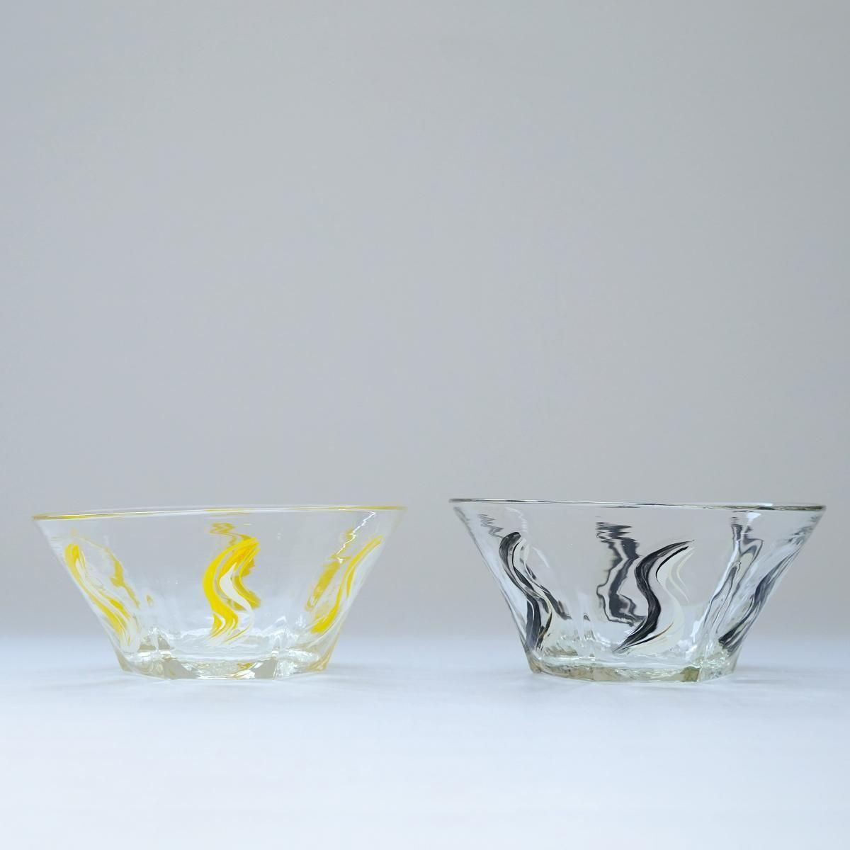 岡山・倉敷でガラス作りをされている石川硝子工藝舎、石川昌浩さんの作品です。 石川昌浩さんは倉敷にてガラス工芸を学ばれた後「石川硝子工藝舎」を立ち上げ、日々の生活にとけ込む日用の器を作り続けていらっしゃいます。 暮らしのそばで静かに光をたたえる石川昌浩さんの硝子。 硝子がもつ神聖さを感じて欲しいと願い生まれた今回の展示【石川硝子工藝舎展 二〇二五】では、祈りの対象物のように日々に寄り添う作品を制作していただきました。 こちらは石川さんの硝子に、熊本県・ふもと窯の井上尚之さんが絵付けをしたコラボシリーズの面取鉢(大)です。 普段はスリップウェアの器を製作されている井上尚之さん。 今回は硝子に黒、白、黄の線で井上さんらしい伸びやかな装飾を施していただきました。 底の六角形から縁に向かってゆるやかに丸くなったシンプルな鉢。 硝子特有のゆらぎが感じられ、シャープな形でありながら、柔らかな印象を持っています。 1人前のパスタや素麺などを盛り付けるのにちょうどいいサイズ感です。 ※サイズ・カラーには個体差がございます。 ※裏面の突起は手吹きガラスの製造工程で出来る物で、傷ではございません。作品の風合としてお楽しみ頂けますと幸いです。 ※気泡などが混じる場合がございます。製造過程で出来るものですので、作品の風合としてお楽しみくださいませ。 size:約 Φ18cm, H7.5cm お取り扱い店舗・・・dieci kyutaro店 1F