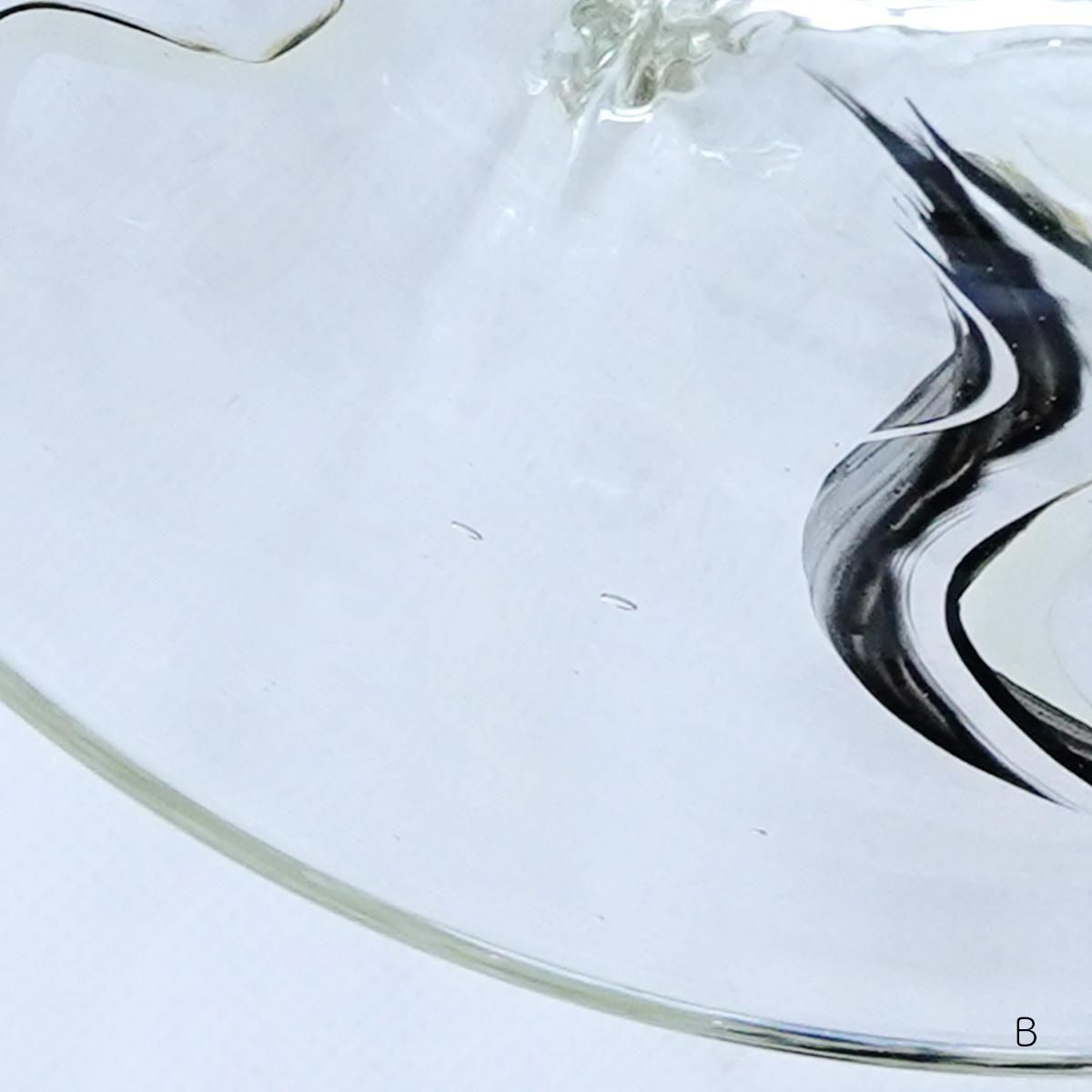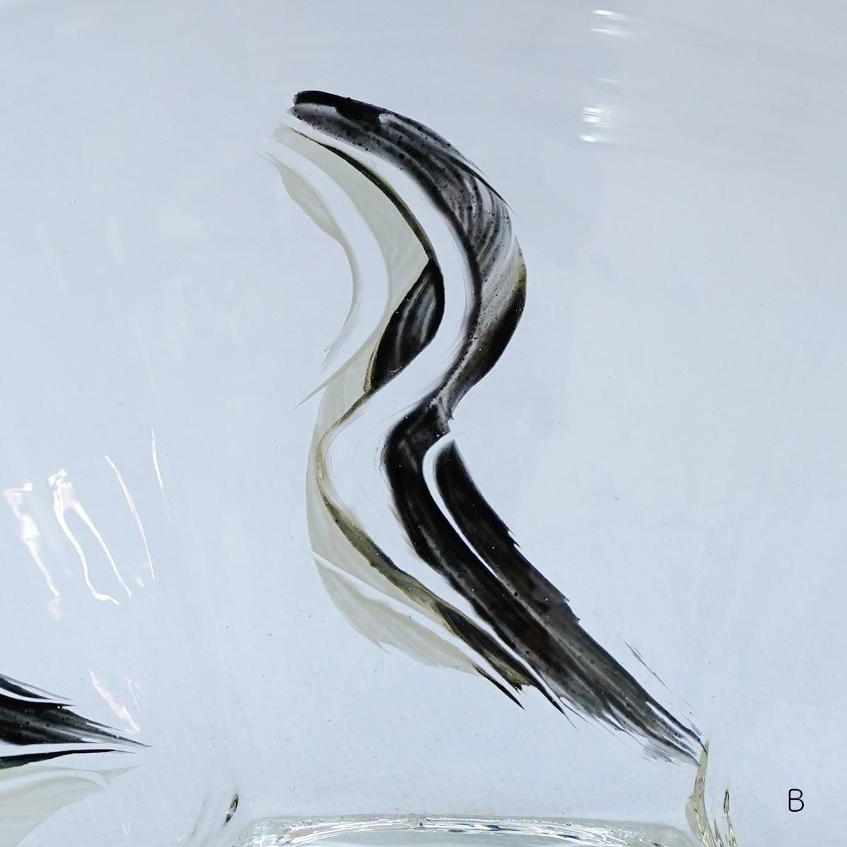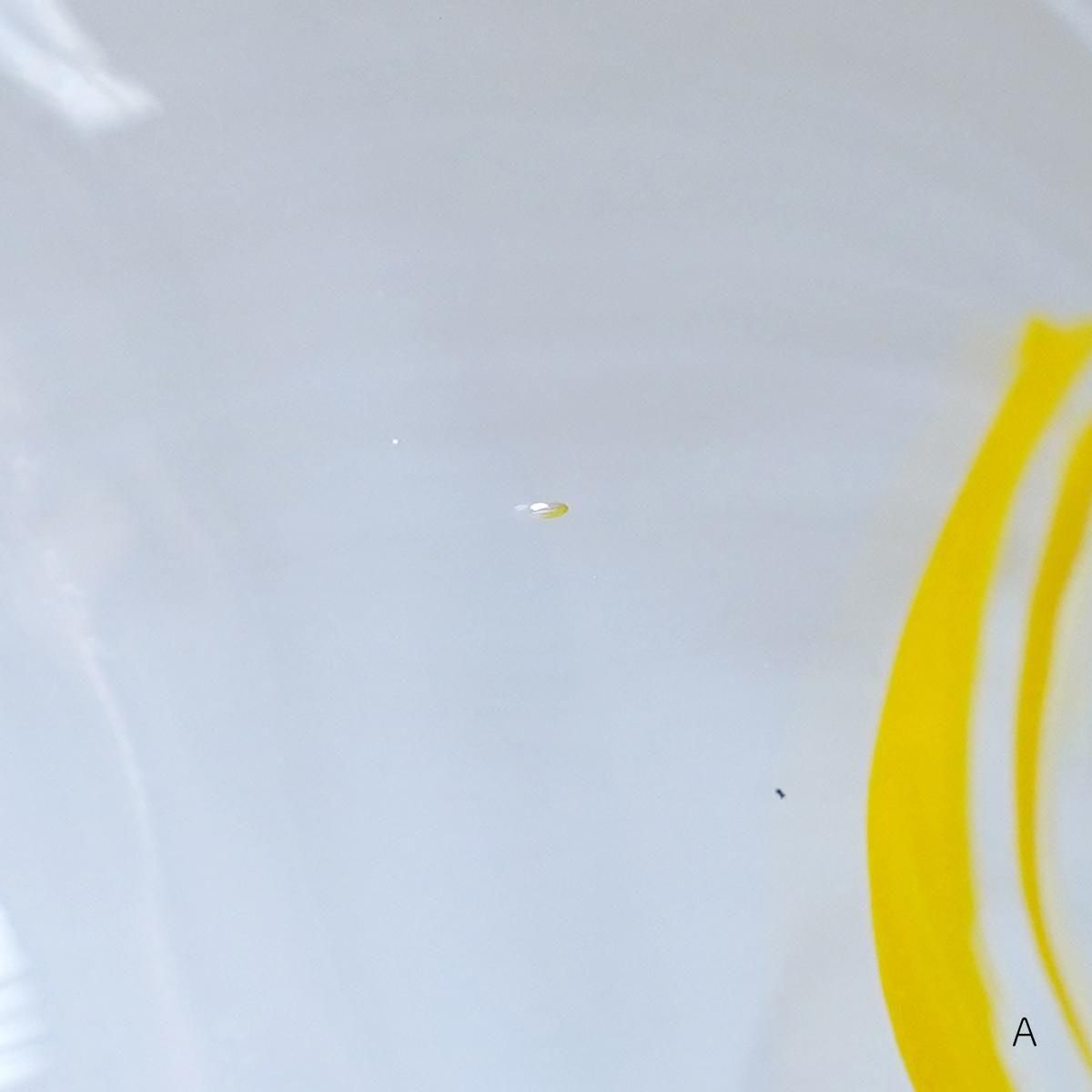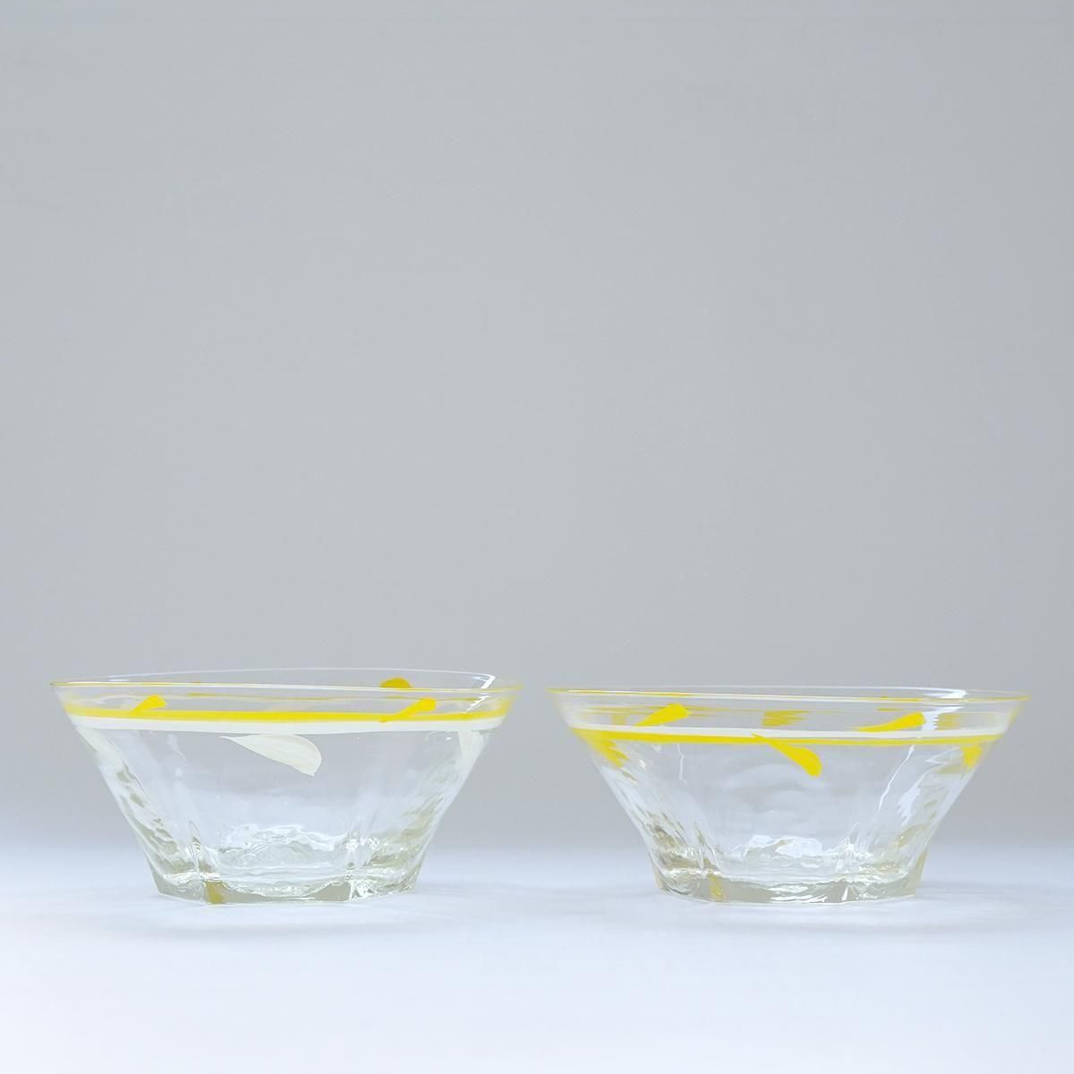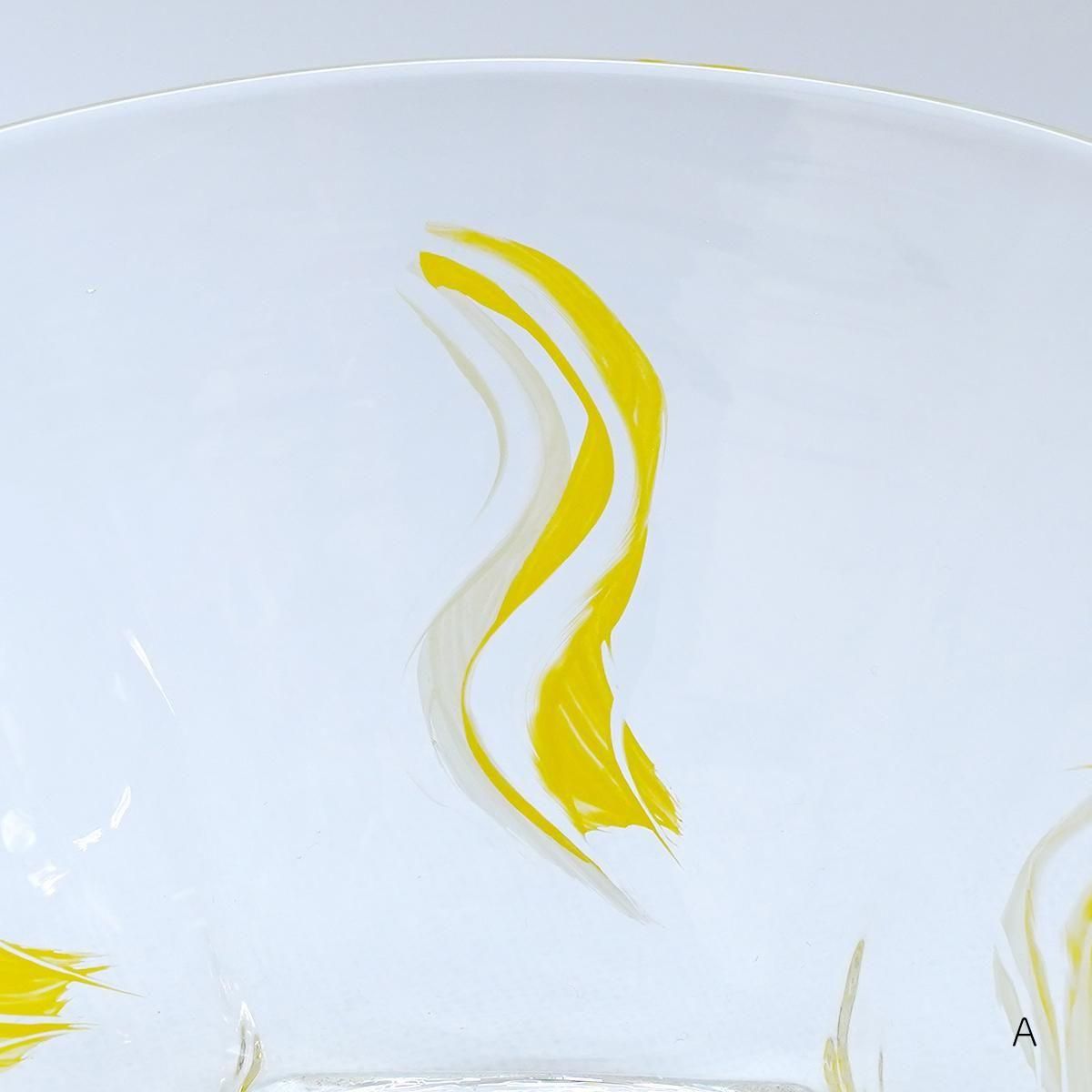 岡山・倉敷でガラス作りをされている石川硝子工藝舎、石川昌浩さんの作品です。 石川昌浩さんは倉敷にてガラス工芸を学ばれた後「石川硝子工藝舎」を立ち上げ、日々の生活にとけ込む日用の器を作り続けていらっしゃいます。 暮らしのそばで静かに光をたたえる石川昌浩さんの硝子。 硝子がもつ神聖さを感じて欲しいと願い生まれた今回の展示【石川硝子工藝舎展 二〇二五】では、祈りの対象物のように日々に寄り添う作品を制作していただきました。 こちらは石川さんの硝子に、熊本県・ふもと窯の井上尚之さんが絵付けをしたコラボシリーズの面取鉢(大)です。 普段はスリップウェアの器を製作されている井上尚之さん。 今回は硝子に黒、白、黄の線で井上さんらしい伸びやかな装飾を施していただきました。 底の六角形から縁に向かってゆるやかに丸くなったシンプルな鉢。 硝子特有のゆらぎが感じられ、シャープな形でありながら、柔らかな印象を持っています。 1人前のパスタや素麺などを盛り付けるのにちょうどいいサイズ感です。 ※サイズ・カラーには個体差がございます。 ※裏面の突起は手吹きガラスの製造工程で出来る物で、傷ではございません。作品の風合としてお楽しみ頂けますと幸いです。 ※気泡などが混じる場合がございます。製造過程で出来るものですので、作品の風合としてお楽しみくださいませ。 size:約 Φ18cm, H7.5cm お取り扱い店舗・・・dieci kyutaro店 1F