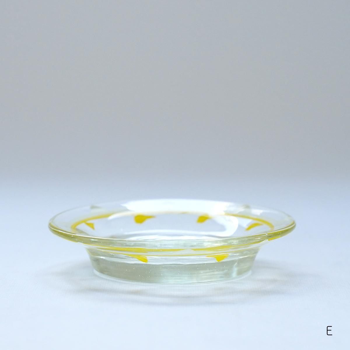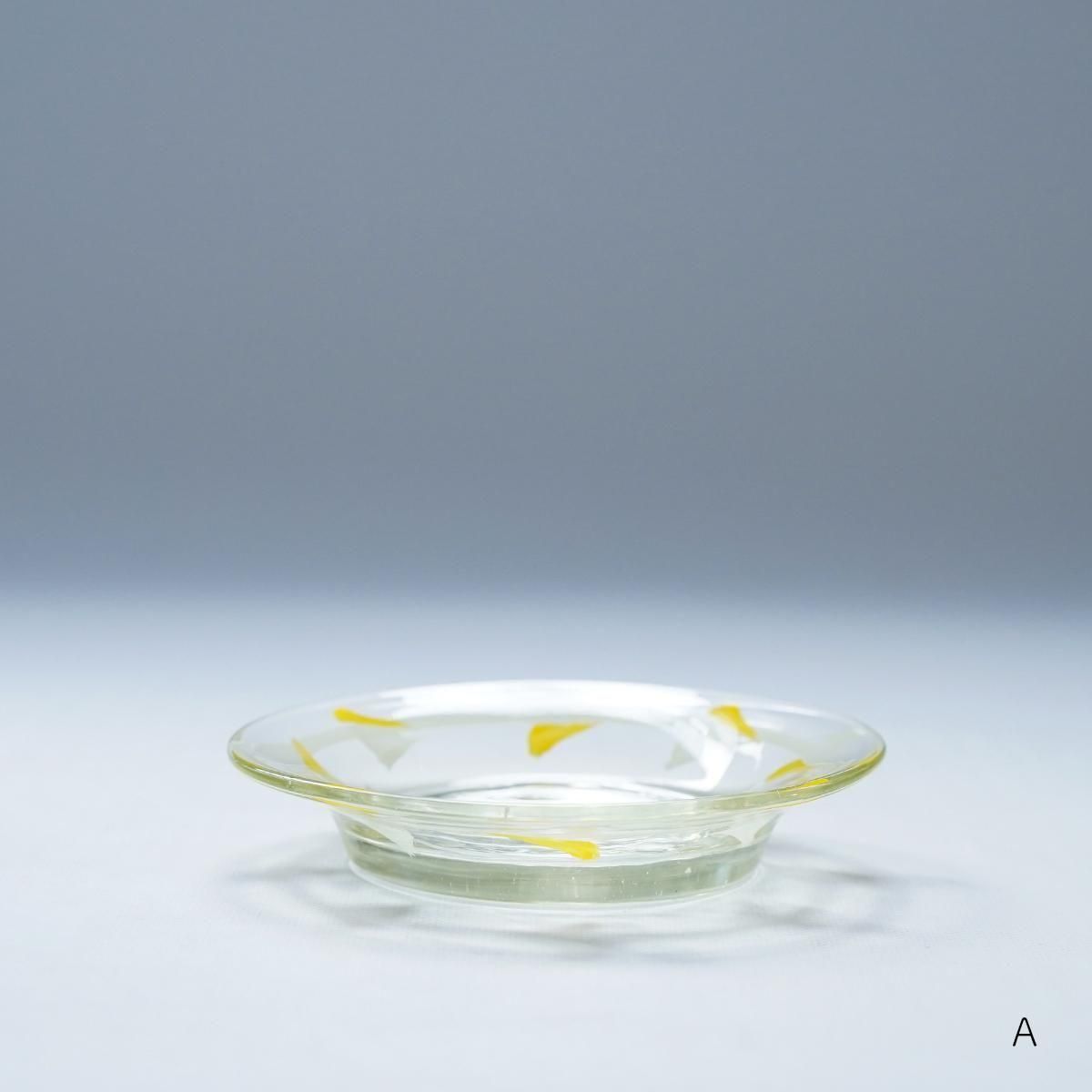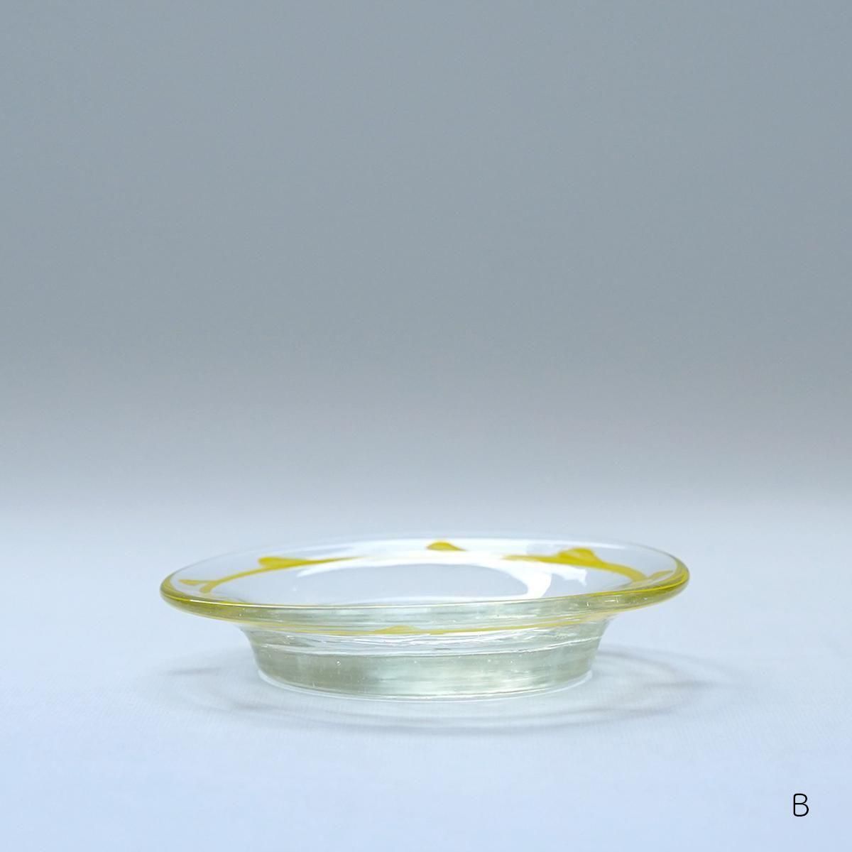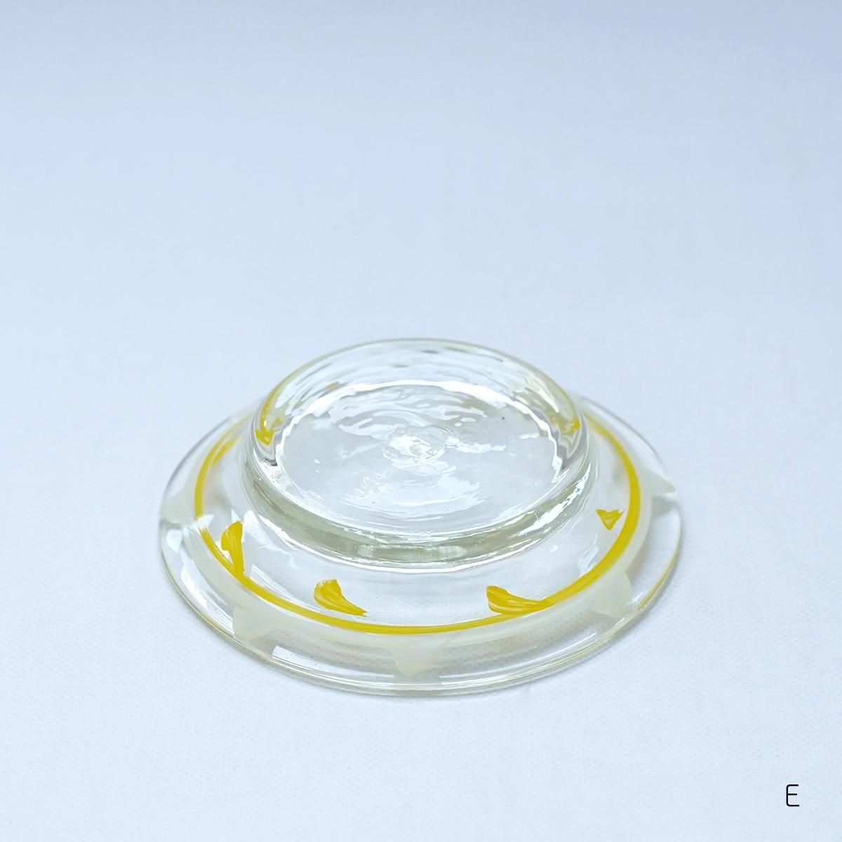 岡山・倉敷でガラス作りをされている石川硝子工藝舎、石川昌浩さんの作品です。 石川昌浩さんは倉敷にてガラス工芸を学ばれた後「石川硝子工藝舎」を立ち上げ、日々の生活にとけ込む日用の器を作り続けていらっしゃいます。 暮らしのそばで静かに光をたたえる石川昌浩さんの硝子。 硝子がもつ神聖さを感じて欲しいと願い生まれた今回の展示【石川硝子工藝舎展 二〇二五】では、祈りの対象物のように日々に寄り添う作品を制作していただきました。 こちらは石川さんの硝子に、熊本県・ふもと窯の井上尚之さんが絵付けをしたコラボシリーズの小皿です。 普段はスリップウェアの器を製作されている井上尚之さん。 今回は硝子に黒、白、黄の線で井上さんらしい伸びやかな装飾を施していただきました。 お皿の縁が一段上がっているシンプルな小皿。 薬味や豆菓子など、ちょっとした副菜やおやつを盛りつけるのにちょうどいい大きさです。 食器としてだけではなく、アクセサリーを置くプレートとしてもおすすめです。 ※サイズ・カラーには個体差がございます。 ※裏面の突起は手吹きガラスの製造工程で出来る物で、傷ではございません。作品の風合としてお楽しみ頂けますと幸いです。 ※気泡などが混じる場合がございます。製造過程で出来るものですので、作品の風合としてお楽しみくださいませ。 size:約 Φ10cm, H2cm お取り扱い店舗・・・dieci kyutaro店 1F