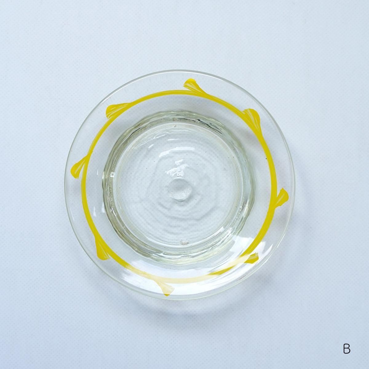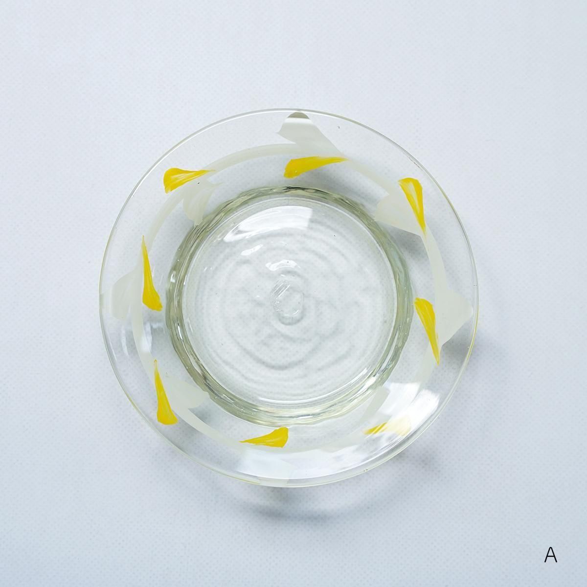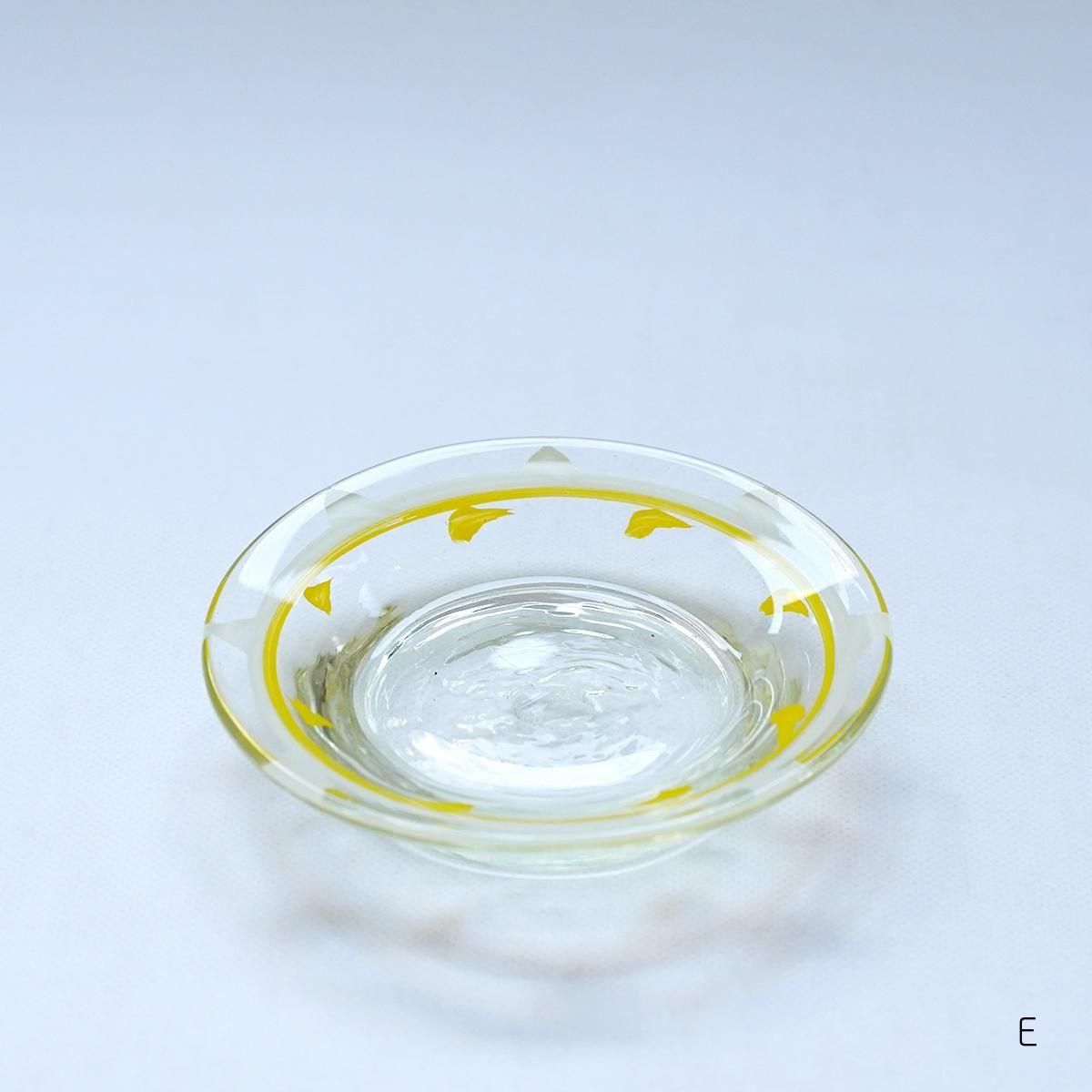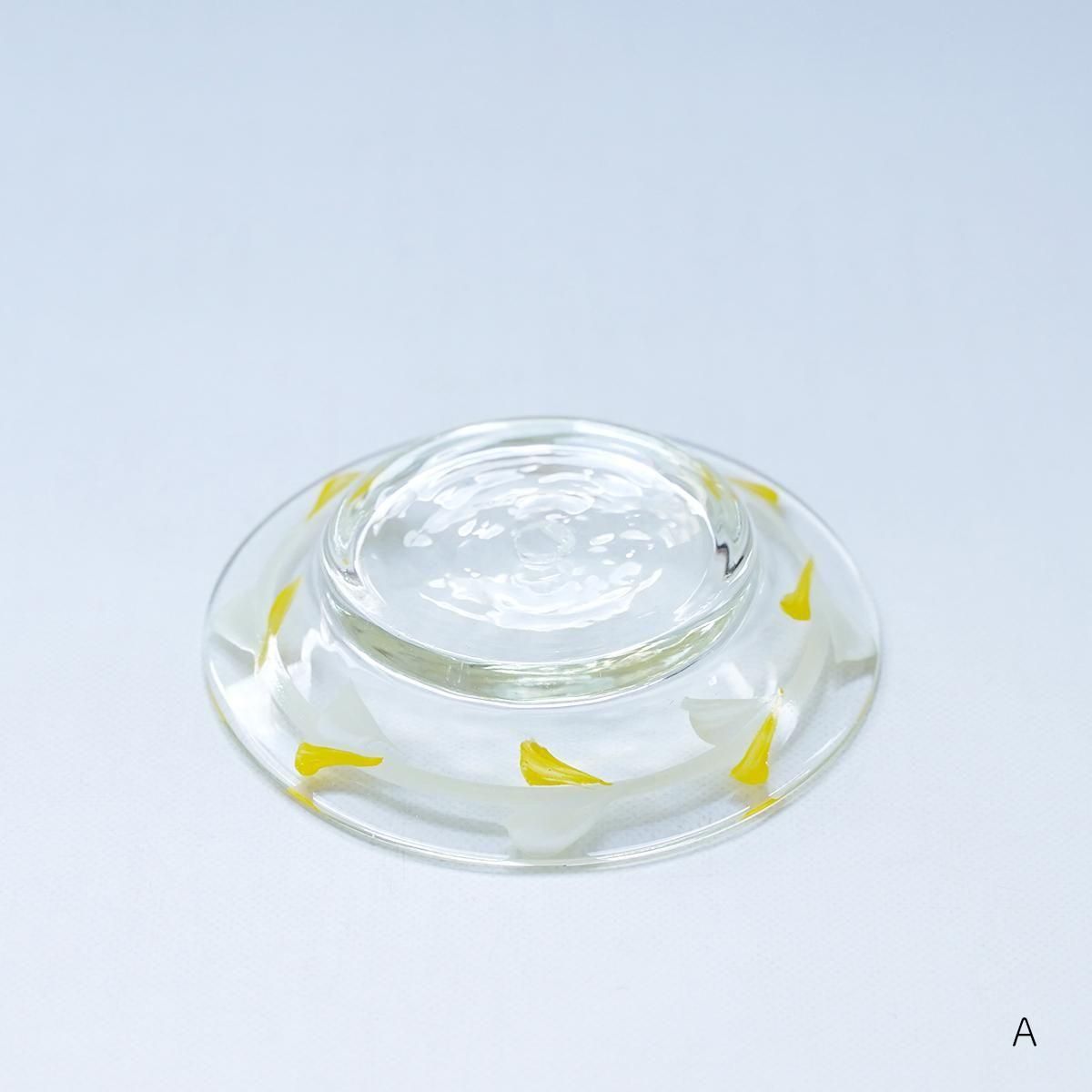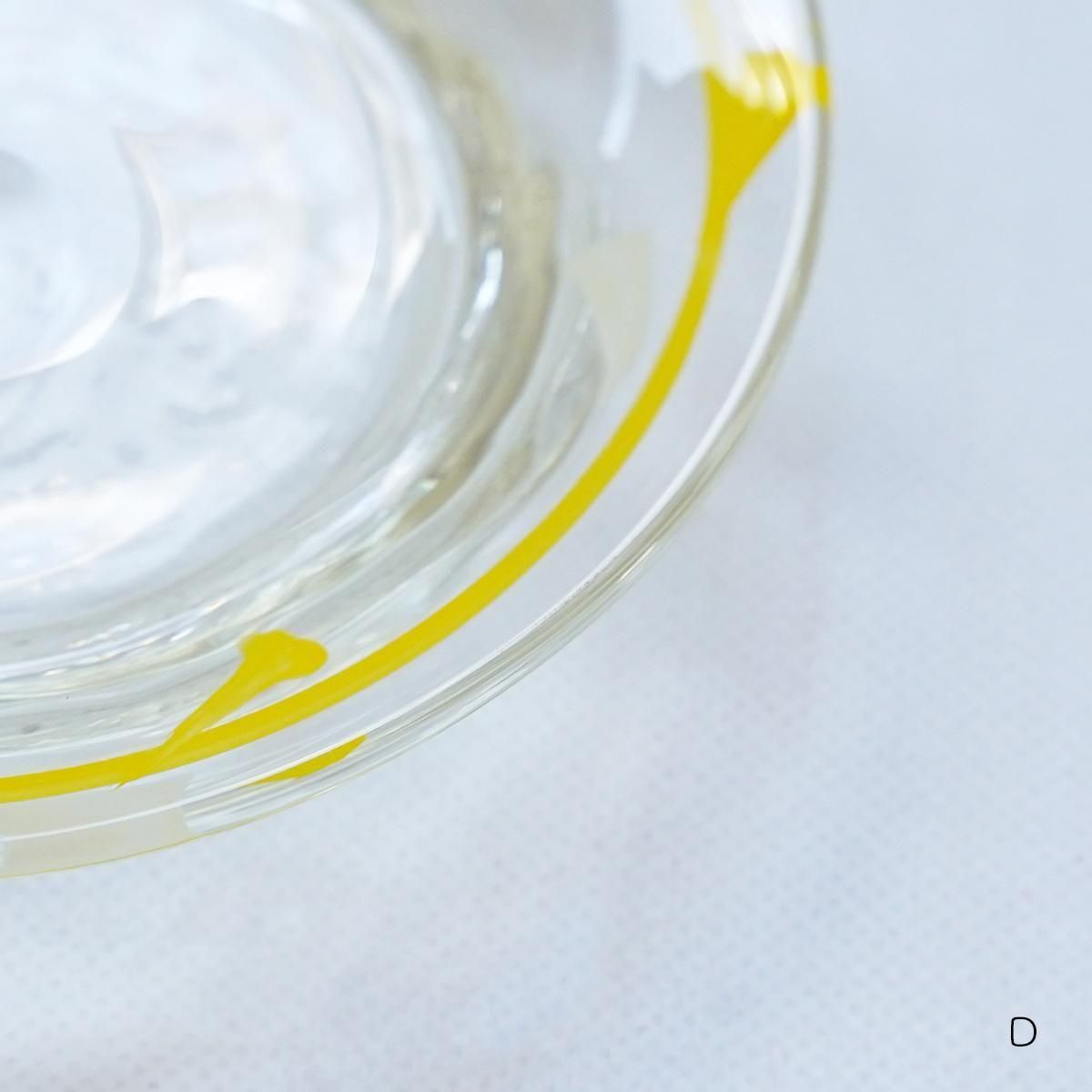岡山・倉敷でガラス作りをされている石川硝子工藝舎、石川昌浩さんの作品です。 石川昌浩さんは倉敷にてガラス工芸を学ばれた後「石川硝子工藝舎」を立ち上げ、日々の生活にとけ込む日用の器を作り続けていらっしゃいます。 暮らしのそばで静かに光をたたえる石川昌浩さんの硝子。 硝子がもつ神聖さを感じて欲しいと願い生まれた今回の展示【石川硝子工藝舎展 二〇二五】では、祈りの対象物のように日々に寄り添う作品を制作していただきました。 こちらは石川さんの硝子に、熊本県・ふもと窯の井上尚之さんが絵付けをしたコラボシリーズの小皿です。 普段はスリップウェアの器を製作されている井上尚之さん。 今回は硝子に黒、白、黄の線で井上さんらしい伸びやかな装飾を施していただきました。 お皿の縁が一段上がっているシンプルな小皿。 薬味や豆菓子など、ちょっとした副菜やおやつを盛りつけるのにちょうどいい大きさです。 食器としてだけではなく、アクセサリーを置くプレートとしてもおすすめです。 ※サイズ・カラーには個体差がございます。 ※裏面の突起は手吹きガラスの製造工程で出来る物で、傷ではございません。作品の風合としてお楽しみ頂けますと幸いです。 ※気泡などが混じる場合がございます。製造過程で出来るものですので、作品の風合としてお楽しみくださいませ。 size:約 Φ10cm, H2cm お取り扱い店舗・・・dieci kyutaro店 1F