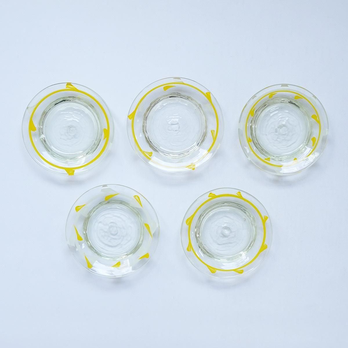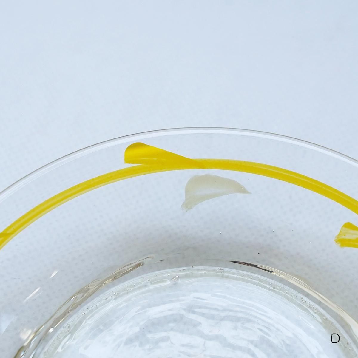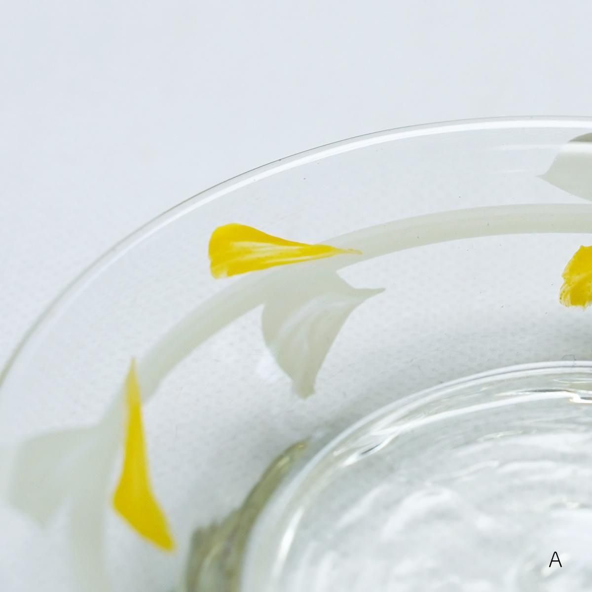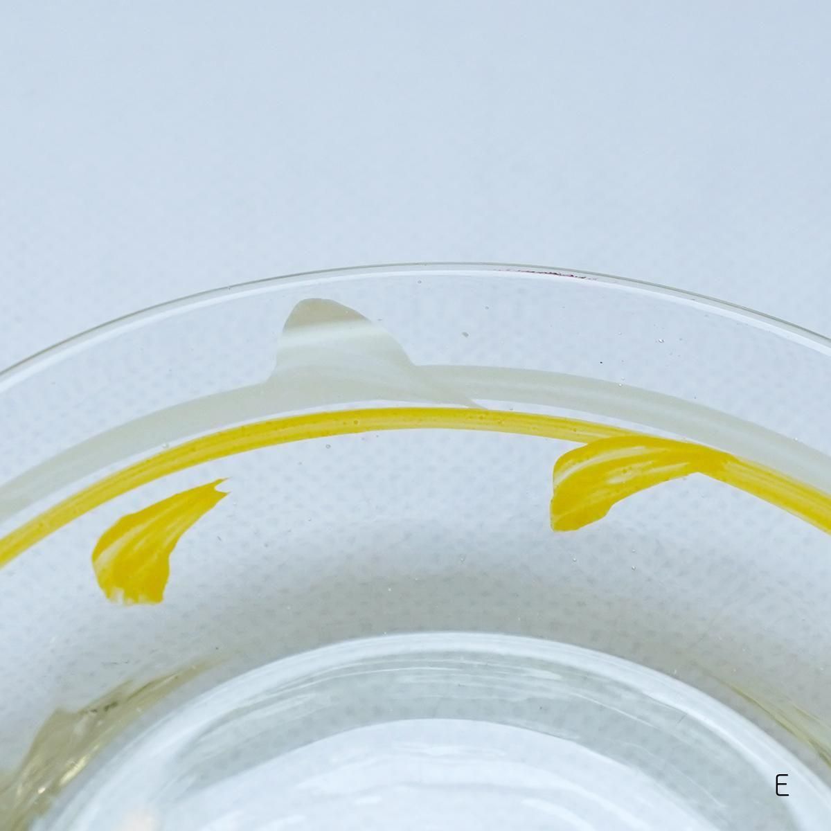 岡山・倉敷でガラス作りをされている石川硝子工藝舎、石川昌浩さんの作品です。 石川昌浩さんは倉敷にてガラス工芸を学ばれた後「石川硝子工藝舎」を立ち上げ、日々の生活にとけ込む日用の器を作り続けていらっしゃいます。 暮らしのそばで静かに光をたたえる石川昌浩さんの硝子。 硝子がもつ神聖さを感じて欲しいと願い生まれた今回の展示【石川硝子工藝舎展 二〇二五】では、祈りの対象物のように日々に寄り添う作品を制作していただきました。 こちらは石川さんの硝子に、熊本県・ふもと窯の井上尚之さんが絵付けをしたコラボシリーズの小皿です。 普段はスリップウェアの器を製作されている井上尚之さん。 今回は硝子に黒、白、黄の線で井上さんらしい伸びやかな装飾を施していただきました。 お皿の縁が一段上がっているシンプルな小皿。 薬味や豆菓子など、ちょっとした副菜やおやつを盛りつけるのにちょうどいい大きさです。 食器としてだけではなく、アクセサリーを置くプレートとしてもおすすめです。 ※サイズ・カラーには個体差がございます。 ※裏面の突起は手吹きガラスの製造工程で出来る物で、傷ではございません。作品の風合としてお楽しみ頂けますと幸いです。 ※気泡などが混じる場合がございます。製造過程で出来るものですので、作品の風合としてお楽しみくださいませ。 size:約 Φ10cm, H2cm お取り扱い店舗・・・dieci kyutaro店 1F