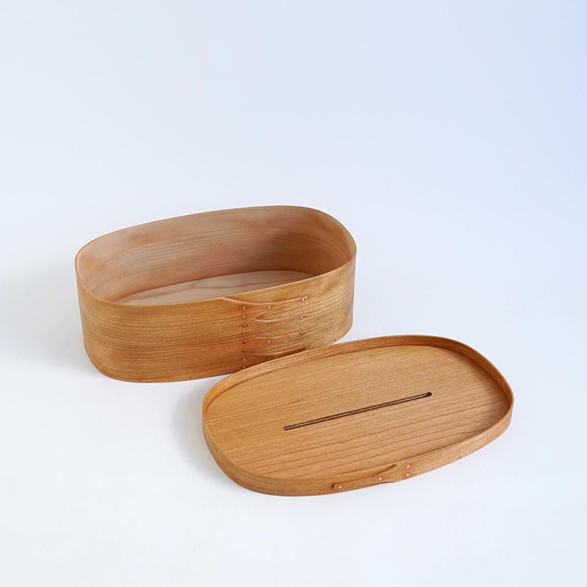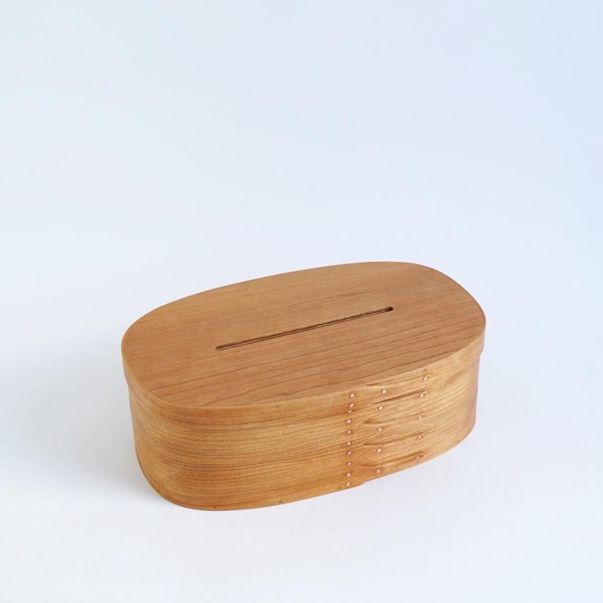 井藤昌志さんが主催されるIFUJIの桜材のティッシュボックスです。 普及型の箱ティッシュであればほとんどのサイズが収まるBOXです。四角形に近い楕円形で、身近に置いて普段使いするものだからこそ、本当に良いものを使いたい。そのようなご要望にお応えし、製品化されました。 佇まいが美しく木の良い香りがします。永く大切に使いたい逸品です。 maker: IFUJI material:チェリー(米国産) ※製材は日本で行っています。 ※天然素材のため、個体差があります。 ※裏面の焼き印はお写真10枚目の焼き印デザインとなります。 ※塗装:植物性オイル、蜜蝋ワックス / 本体内側は無塗装 size: W29cm D18cm H 9.5cm D (内寸)9cm ※全て個体差がございます。 収まるテッシュ製品のサイズ目安 W23cm D11cm H 7cm 取り扱い店舗…dieci天神橋店 こちらはブランドの意向によりonline shopでのカート販売を控えさせていただいております。ご希望の方はメールまたは下記お問い合わせフォームより、ご連絡くださいませ。その際、ご希望のサイズと点数の他、フルネーム / お電話番号 / ご住所 / ご希望の決済方法(クレジットカード決済・ゆうパックコレクト代引き・銀行振込み)を必ず併せてご記載ください。記載漏れがある場合、商品の確保が出来かねますのでご注意ください。