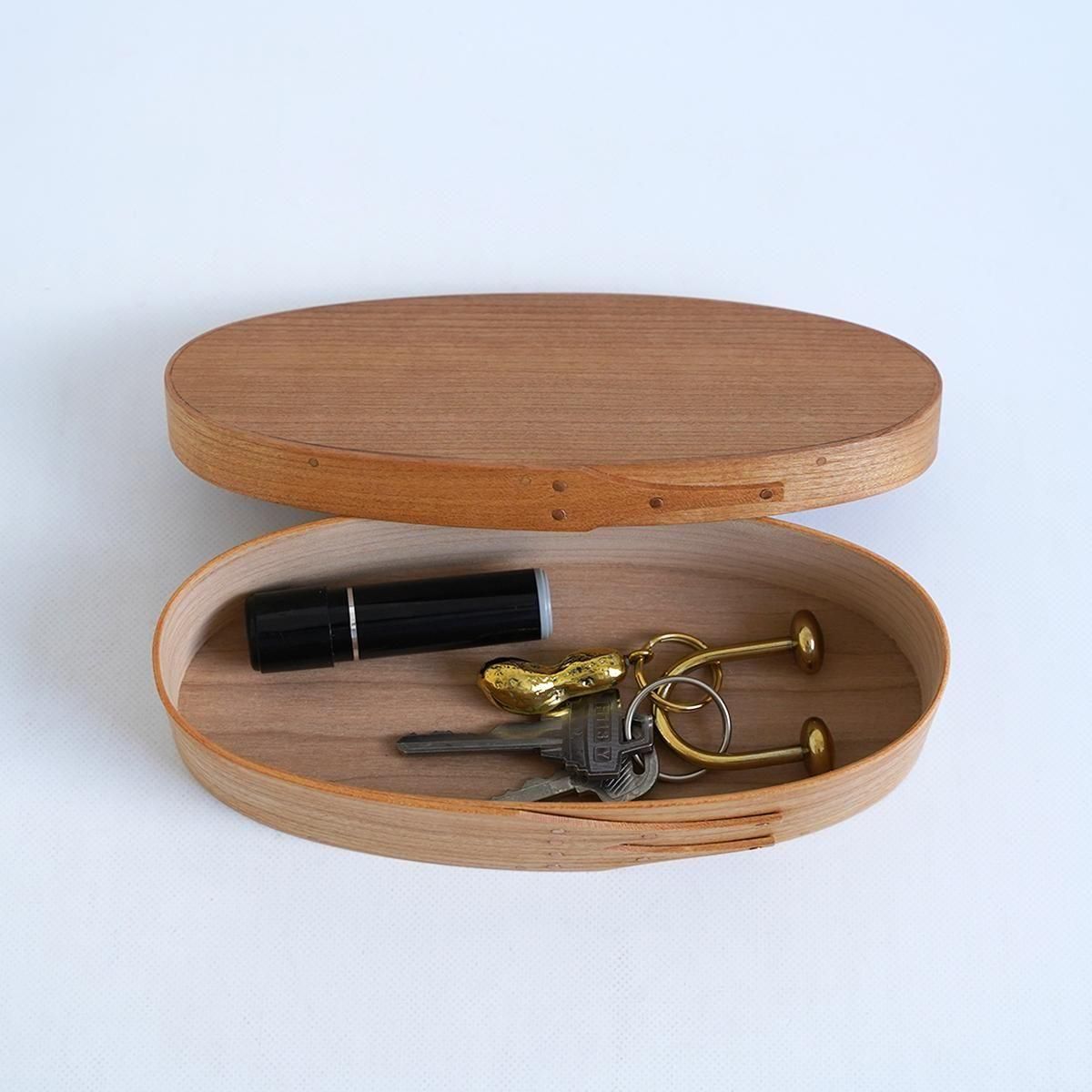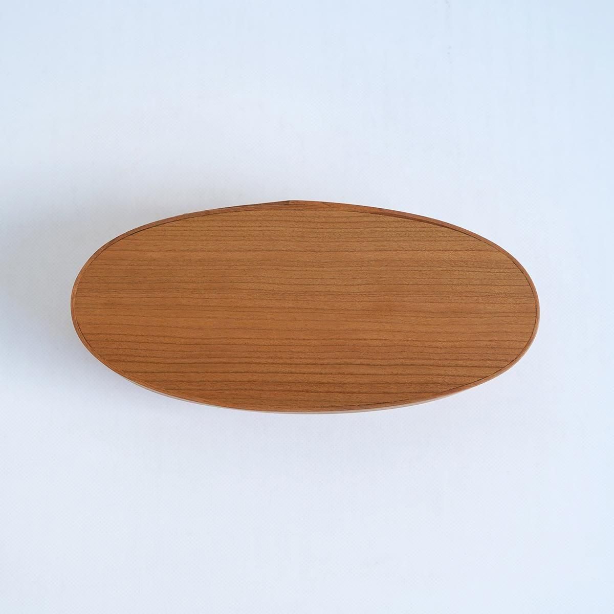 井藤昌志さんが主催されるIFUJI。 メガネを入れるボックスが欲しい、というお客様の声にお応えして作られた、新しいオーバルの形の「NARROW BOX」です。 端が丸みをおびているので、メガネを安心して入れることができます。 もちろん、メガネ以外に鍵やステーショナリーを入れても。 佇まいが美しく木の良い香りがします。永く大切に使いたい逸品です。 maker: IFUJI material:チェリー(米国産) ※製材は日本で行っています。 ※天然素材のため、個体差があります。 ※裏面の焼き印はお写真7枚目の焼き印デザインとなります。 ※塗装:植物性オイル、蜜蝋ワックス / 本体内側は無塗装 ■二段重ねの製品画像は、上段はNARROW BOX、下段がOval Box NO.3となります。 size: W17.8cm D3.5cm H4.8cm ※全て外寸で個体差がございます。 取り扱い店舗…dieci天神橋店 こちらはブランドの意向によりonline shopでのカート販売を控えさせていただいております。ご希望の方はメールまたは下記お問い合わせフォームより、ご連絡くださいませ。その際、ご希望のサイズと点数の他、フルネーム / お電話番号 / ご住所 / ご希望の決済方法(クレジットカード決済・ゆうパックコレクト代引き・銀行振込み)を必ず併せてご記載ください。記載漏れがある場合、商品の確保が出来かねますのでご注意ください。
