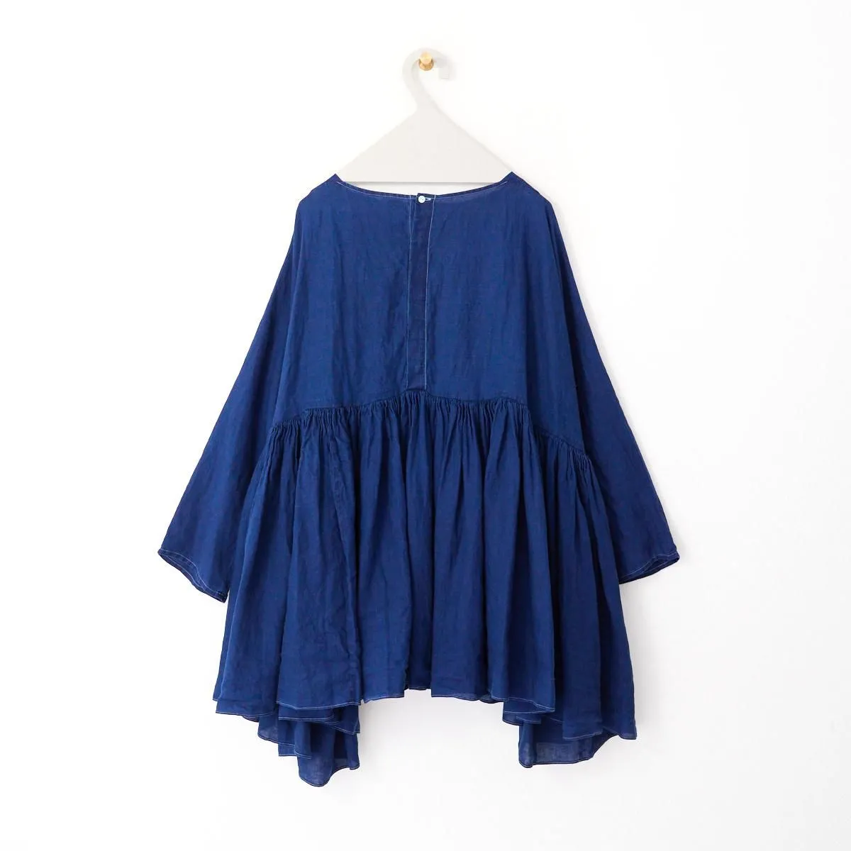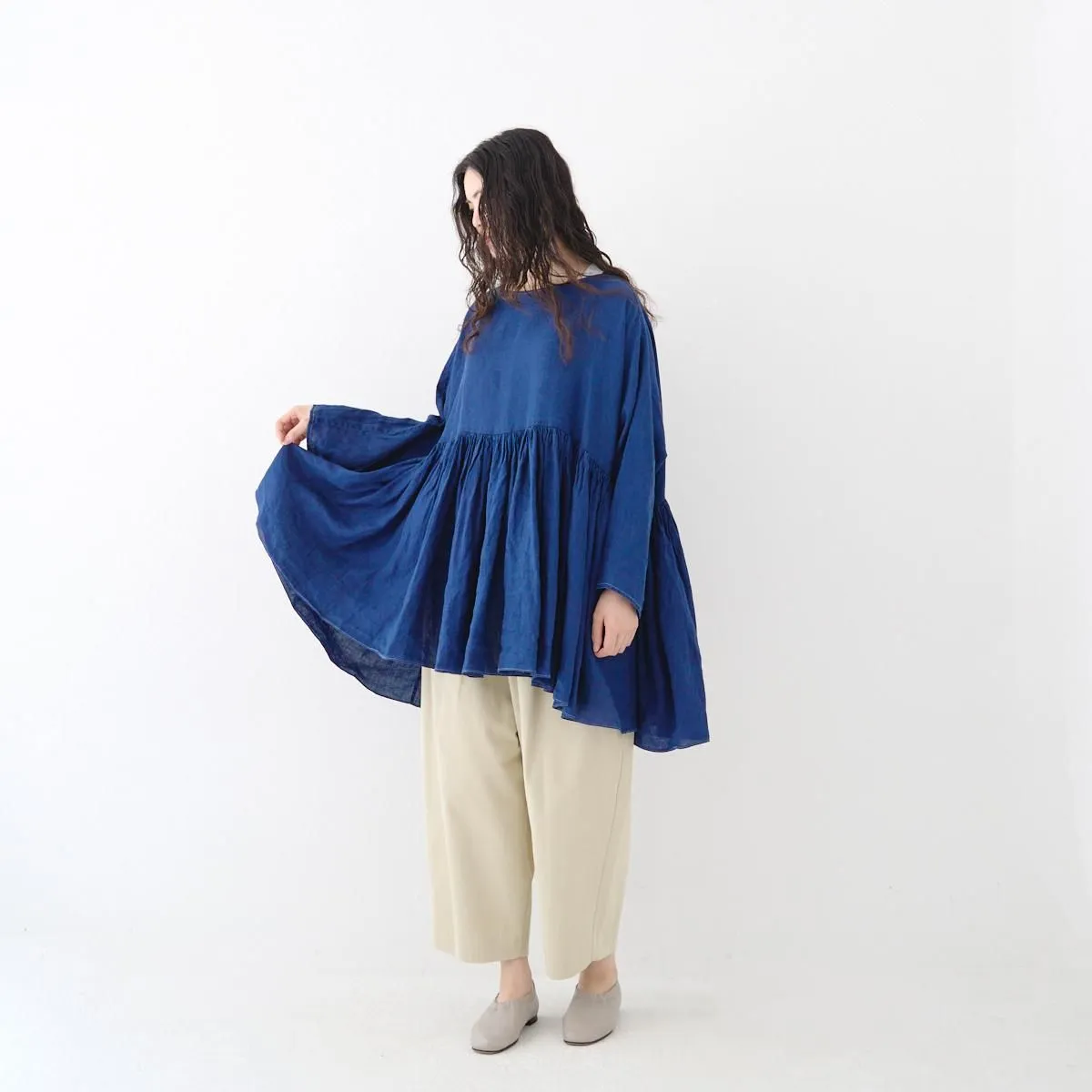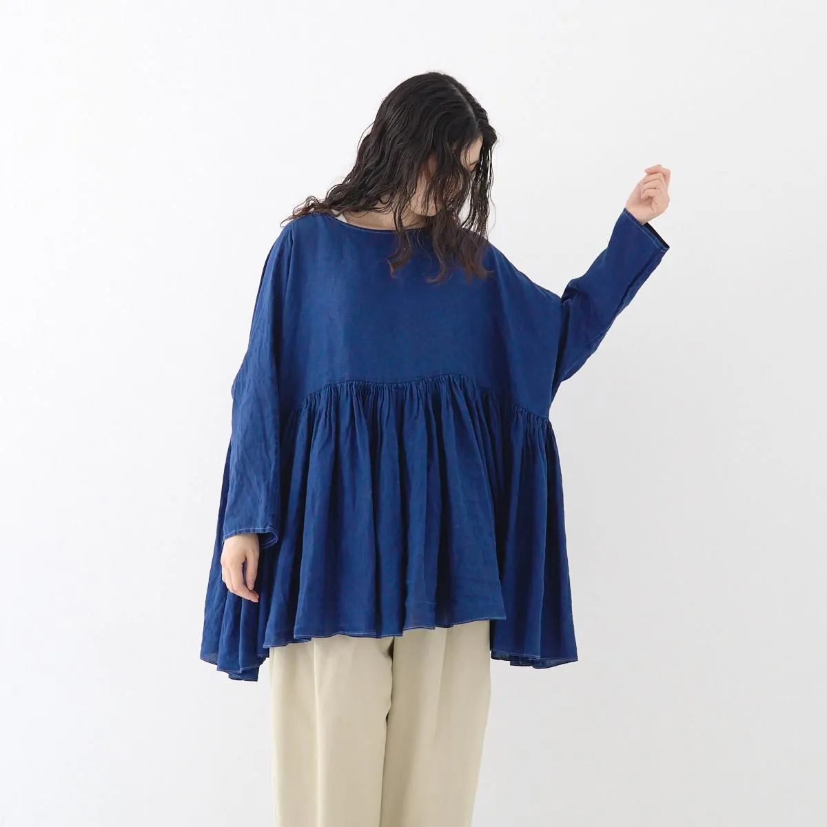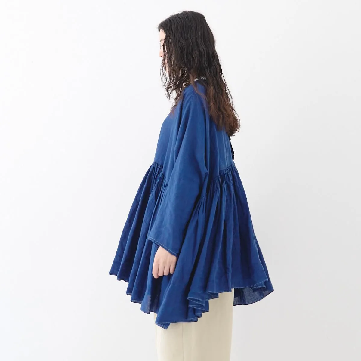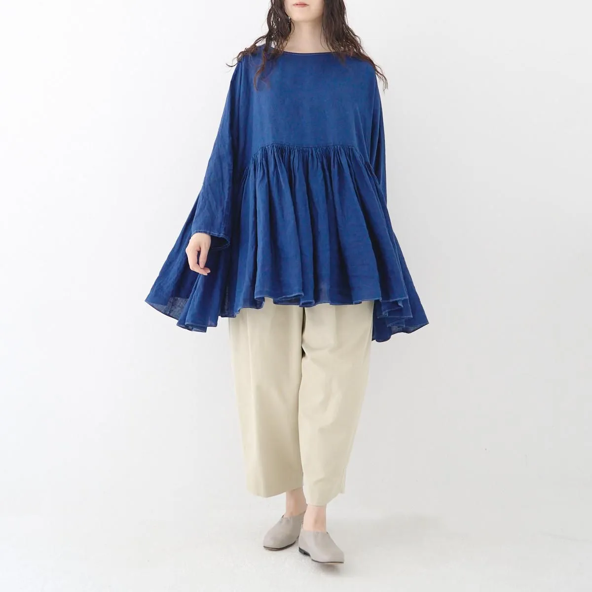 TOP > SP(エシュペー) > SP (エシュペー)exhibition / INDIGO LINEN WIDE GATHER BLOUSE
