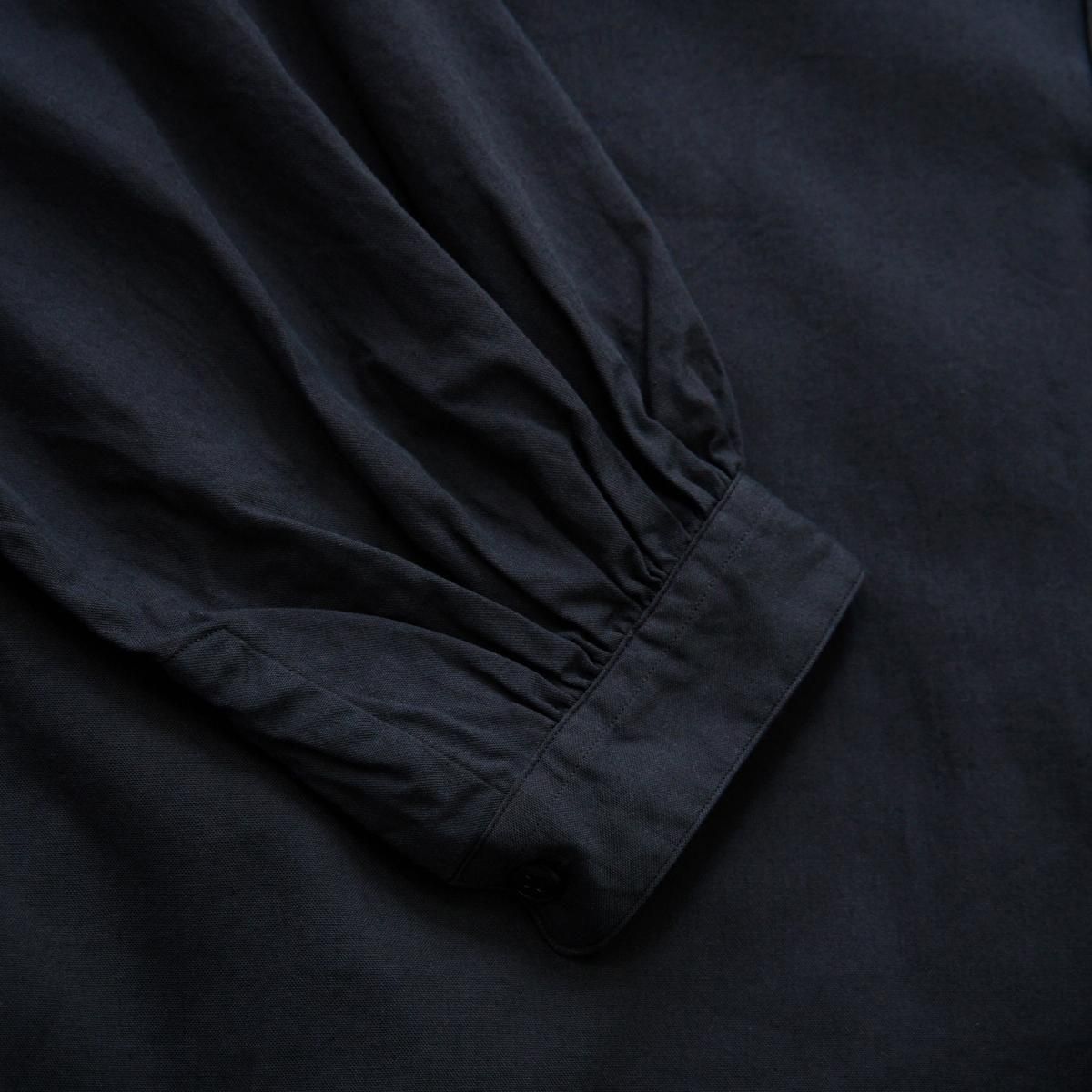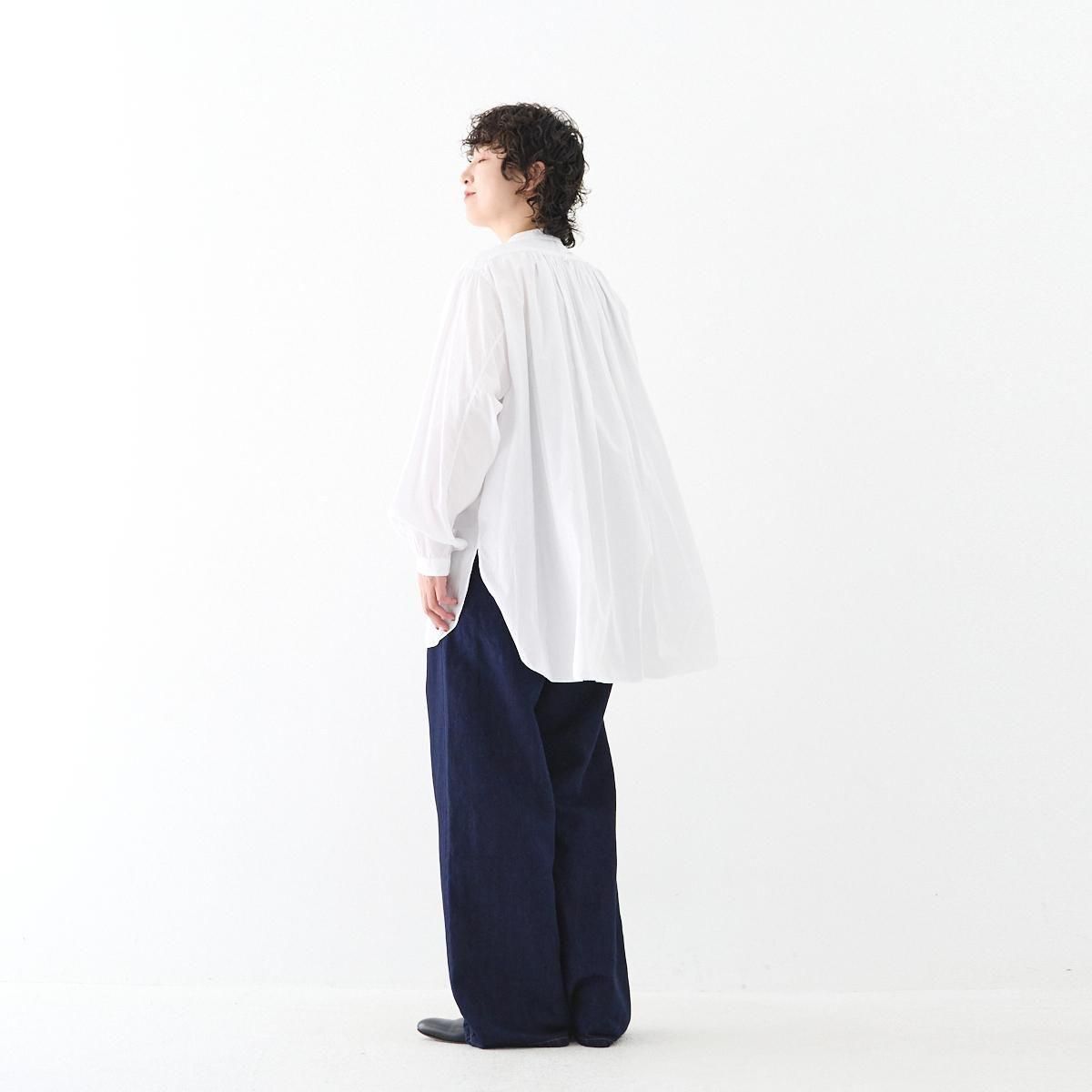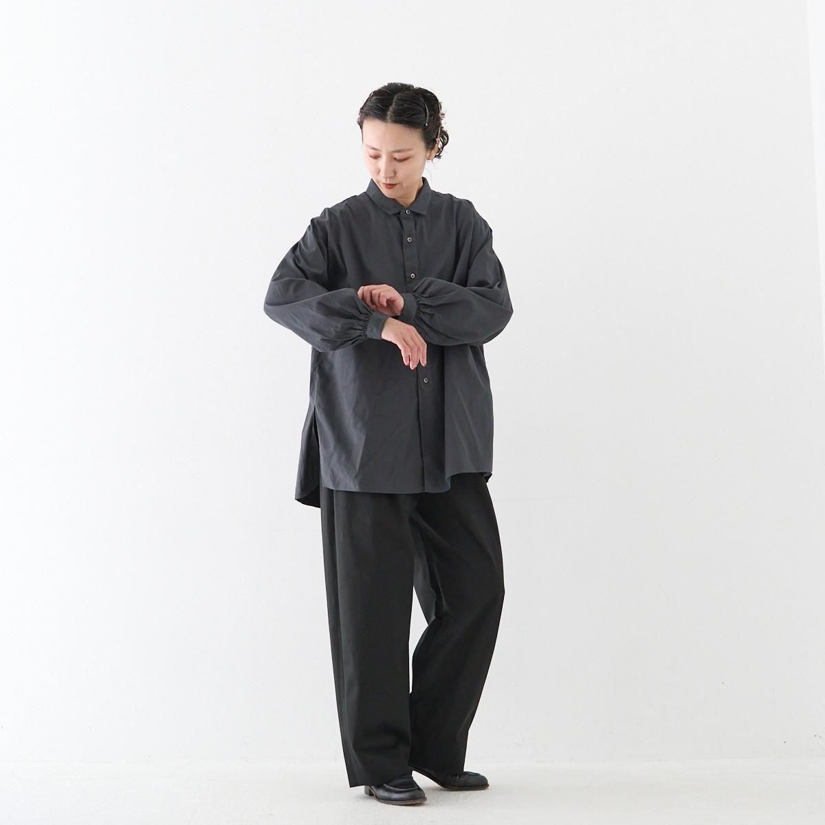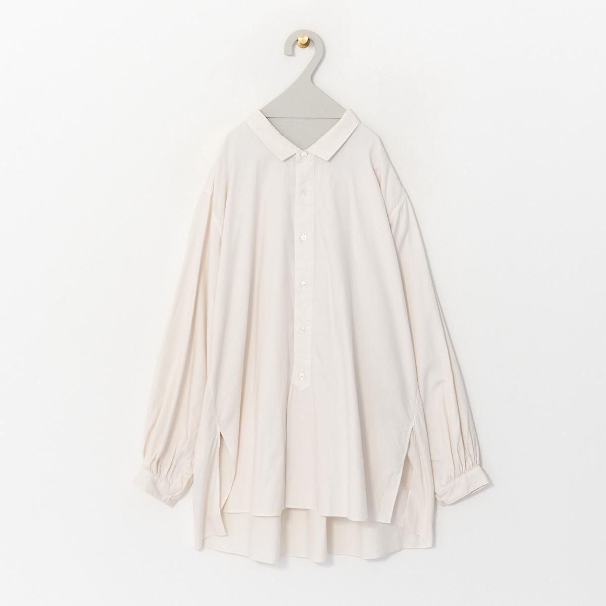 ◇organic cotton shritシリーズ 40番単糸のオーソドックスなオックスフォード生地ですが、オーガニックコットンを甘撚りにし、旧式のシャトル織機で織ることで、丈夫ながら、柔らかい素材になっています。 縫製は、とても細かなステッチが特徴で、脇の縫い代も細く、手の込んだ繊細な印象になっています。 型紙は、20世紀初頭のシャツを参考にしていて、今の服にはない、ゆるい雰囲気があります。 インナーのレイヤードやベストなど合わせたりとシーズンレスでお召しいただける1枚です。 size : F 着丈66cm(+6) / 身幅60cm / 肩幅49cm / 袖丈55cm color:SAXEBLUE,VINTAGEWHITE,CHARCOAL,BLACK material:ORGANIC COTTON100% □お洗濯は手洗いをおすすめします。 □素材の特性上 織りムラや織り段、ネップなどが見られますが 天然素材による風合いとしてお楽しみください。 □ご覧頂く環境により実物の色は画像と微妙に異なる場合がございます。 □製品の仕上げ加工等により実物のサイズは表示と若干異なる場合がございます。 model:163cm(SAXEBLUE,VINTAGEWHITE,CHARCOAL着用) お取り扱い店舗・・・ dieci芝川ビル店 -------------------------------------------------------- ŠP/エシュペー 2022年にスタートしたブランド。ブランド名のŠP は「幸福の製品」を意味する 言葉の頭文字です。 19 世紀頃のヴィンテージの衣服や民族衣装などのディテールを取り入れつつ、 着心地やスタイルは今を生きる人のことを考え、 私たちの生活になじむ形となっています。 企画から製造までの多くを日本国内でおこなっており、繊細なディテールと丁寧な素材作りのため、作り手の方との親密で正確なやりとりを大切にしています。
